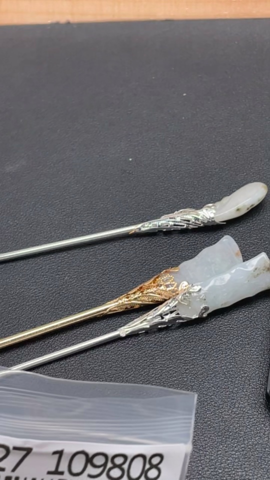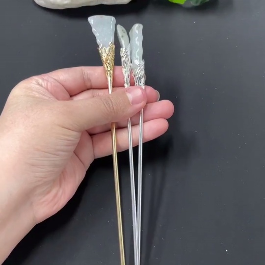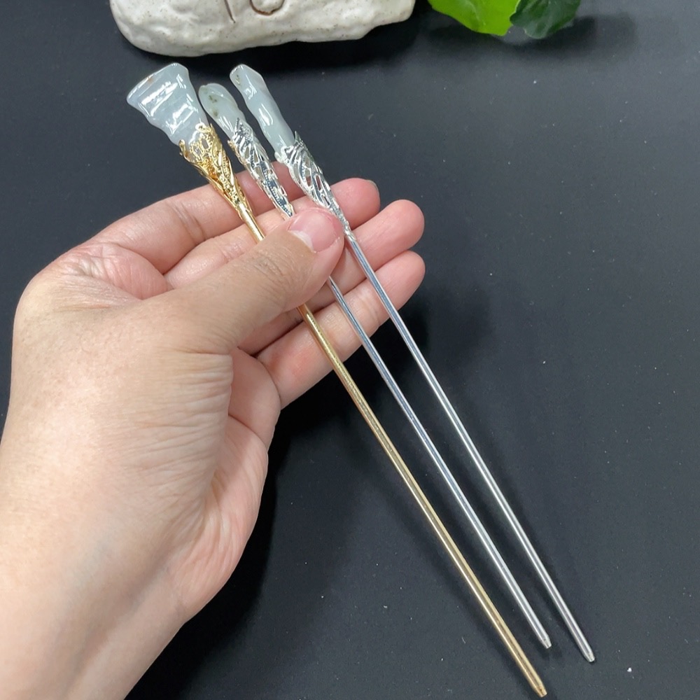 Trezaar - Jadeite Inlaid Hairpin Non-Gold Inlaid