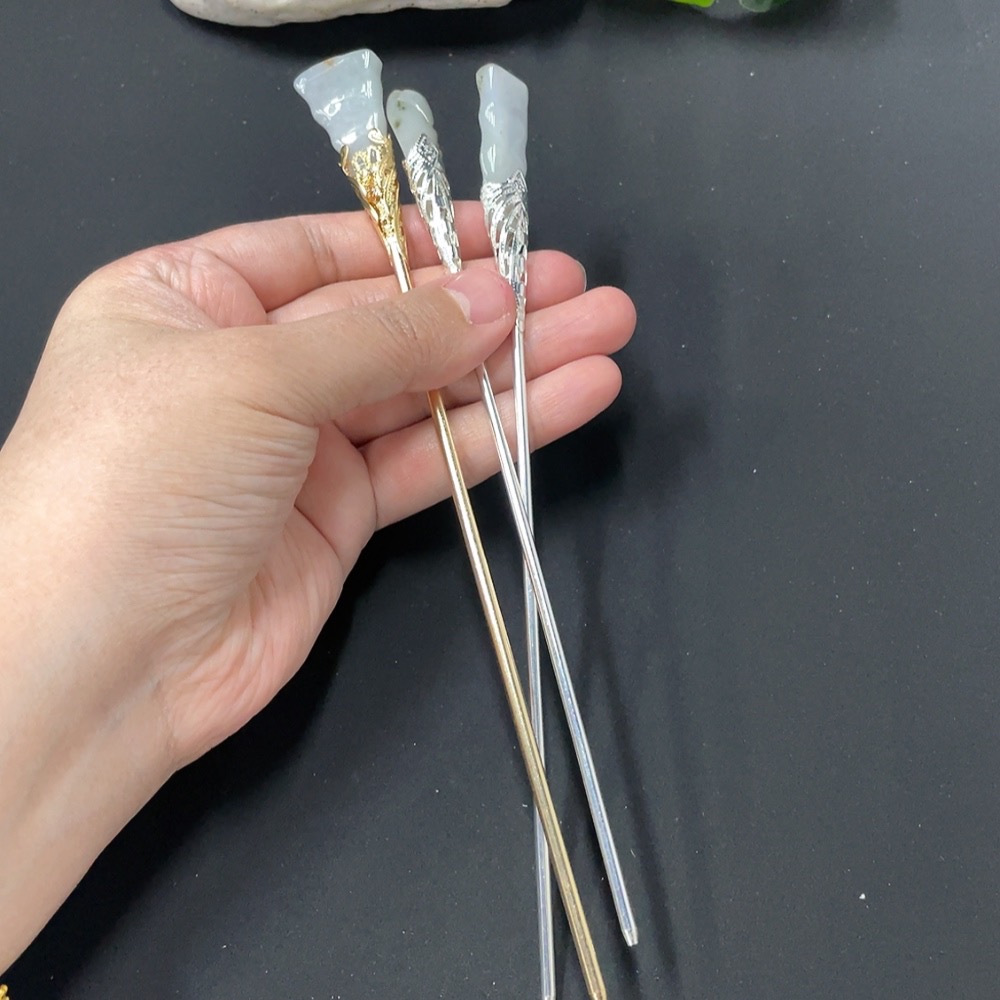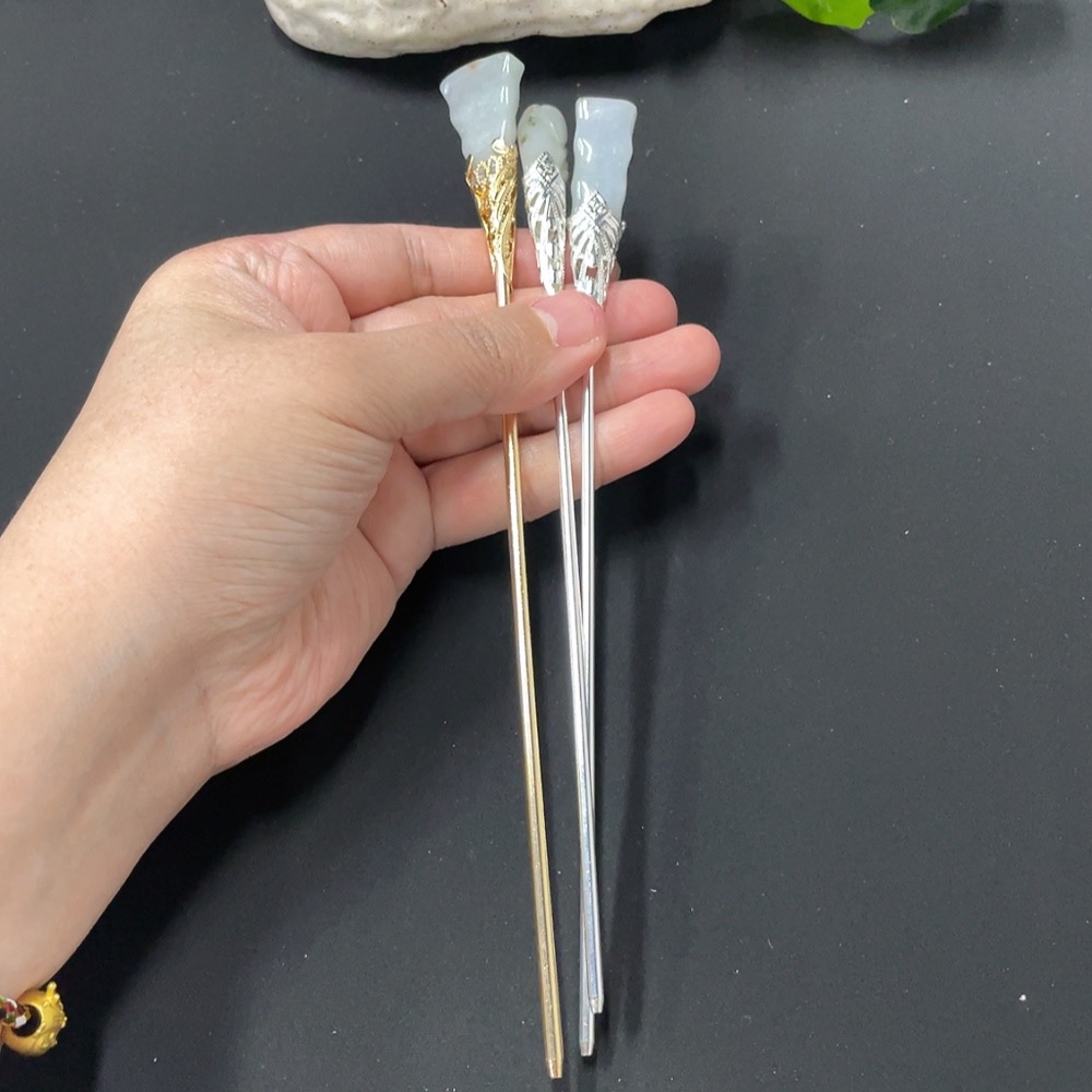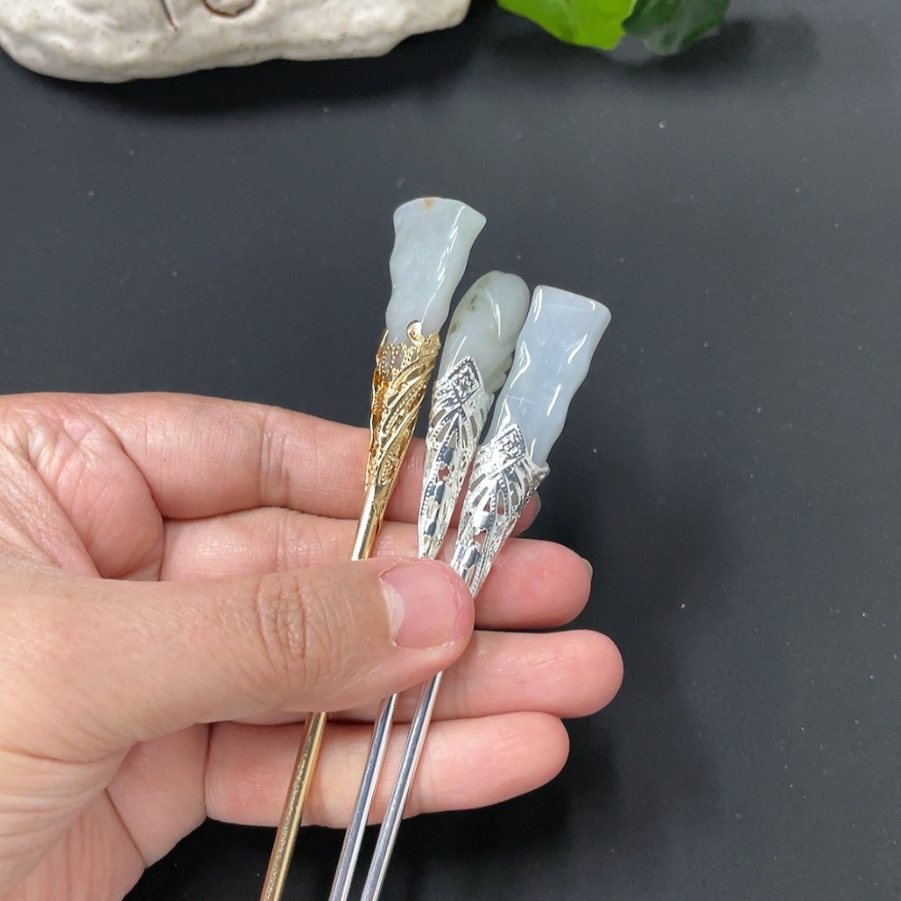 Jadeite Inlaid Hairpin Non-Gold Inlaid
