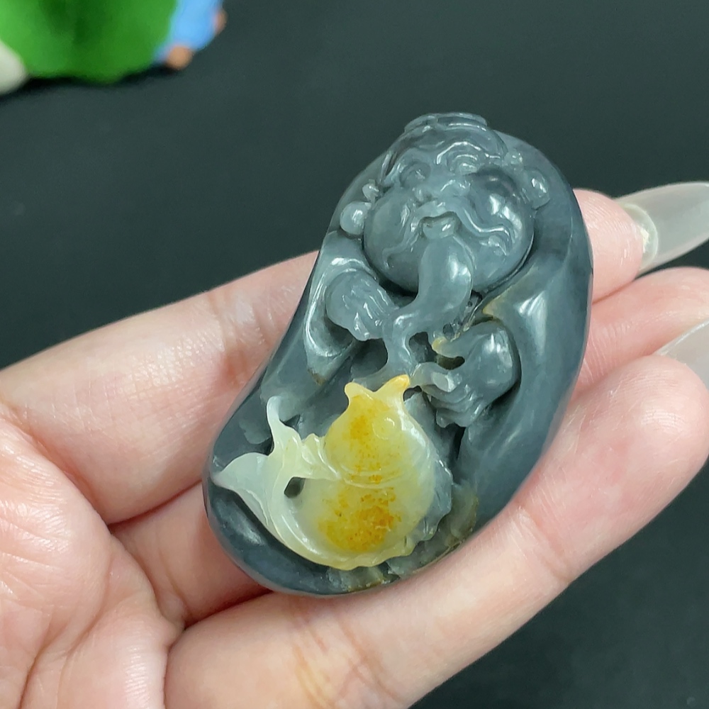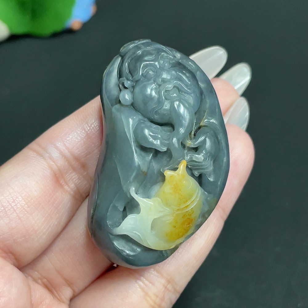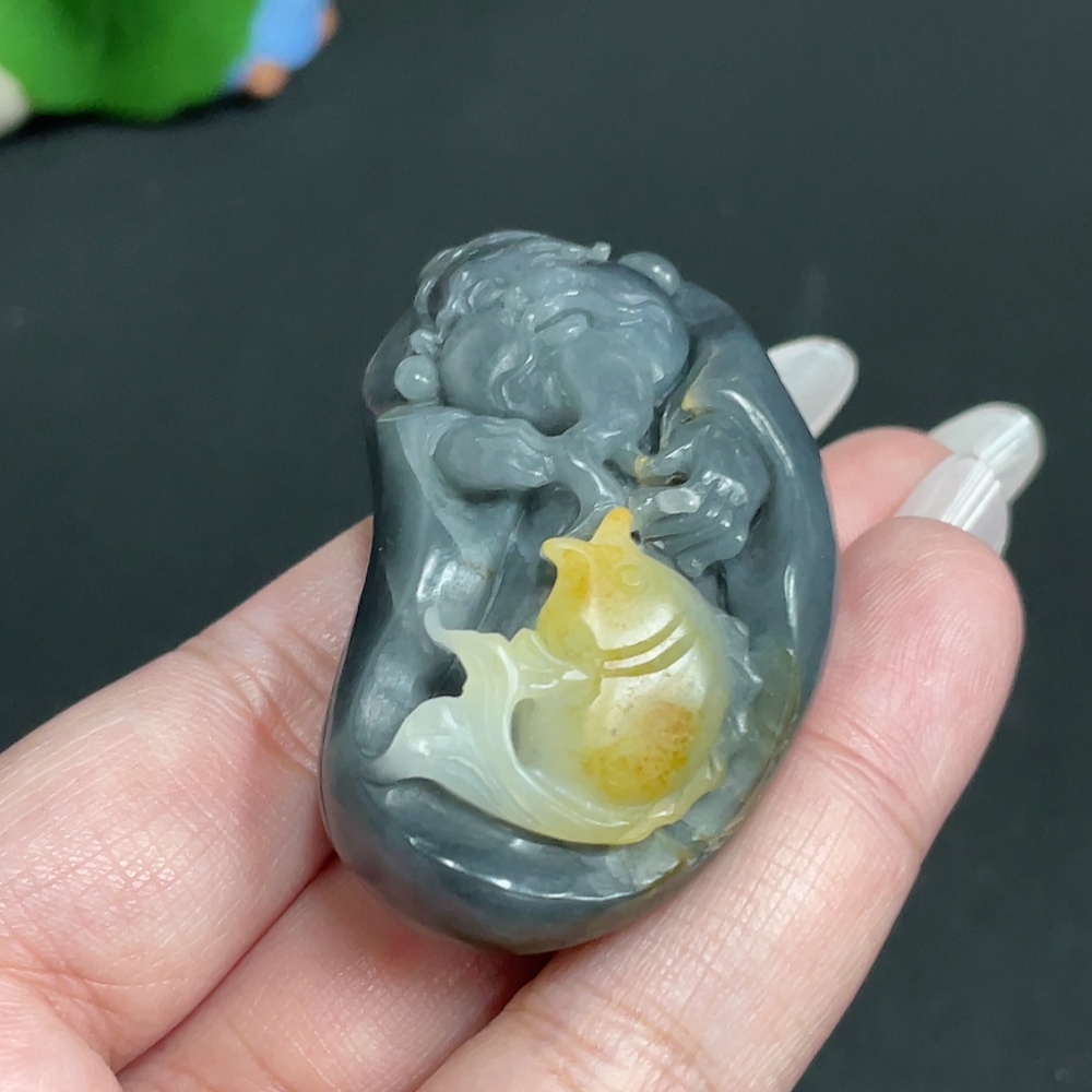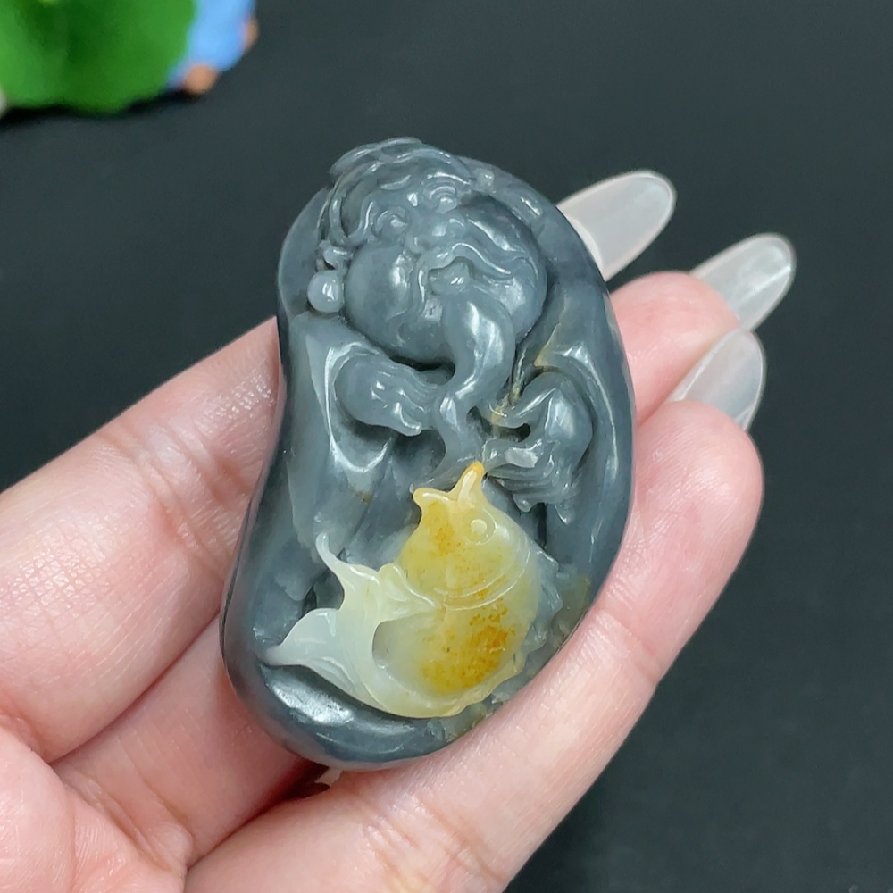 Hetian Jade Pendant - Lotus and Fish Design - Total Weight Approx. 51.7g - Undetermined Skin Color Origin