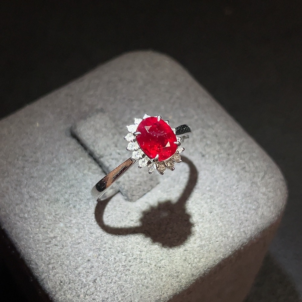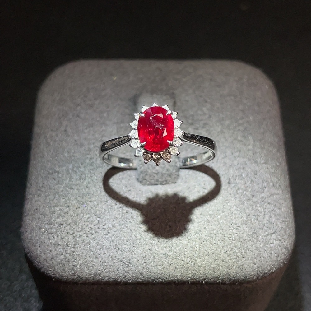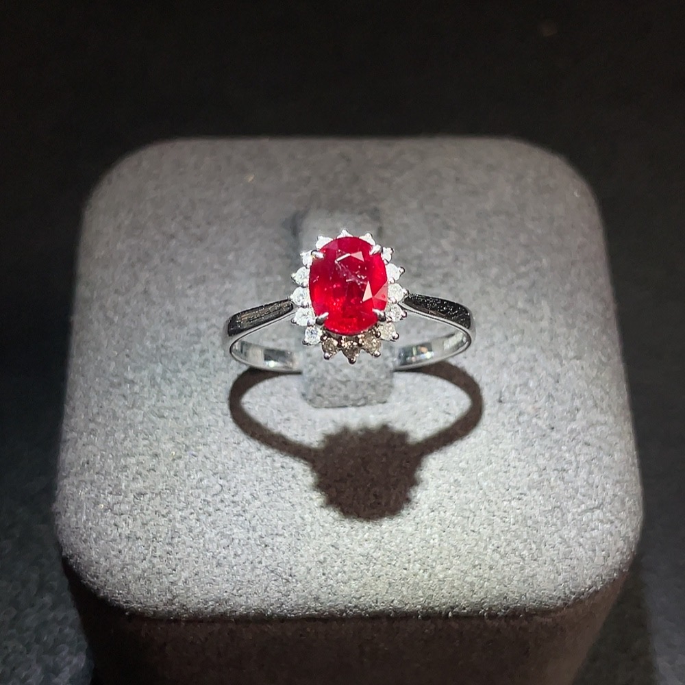 Ruby Inlaid Ring 18k Gold Size 16 Total Weight Approx. 2.20g With AIGS Certificate Unheated Pigeon Blood Red