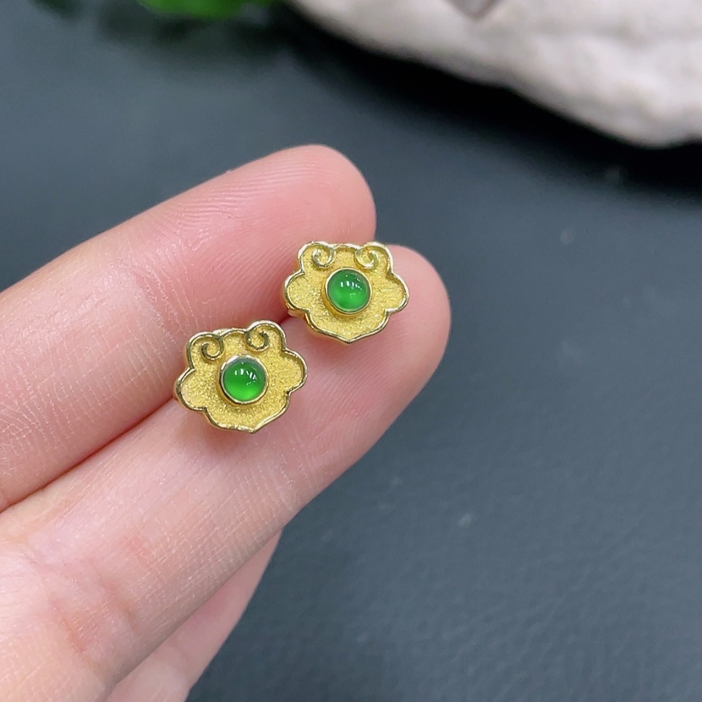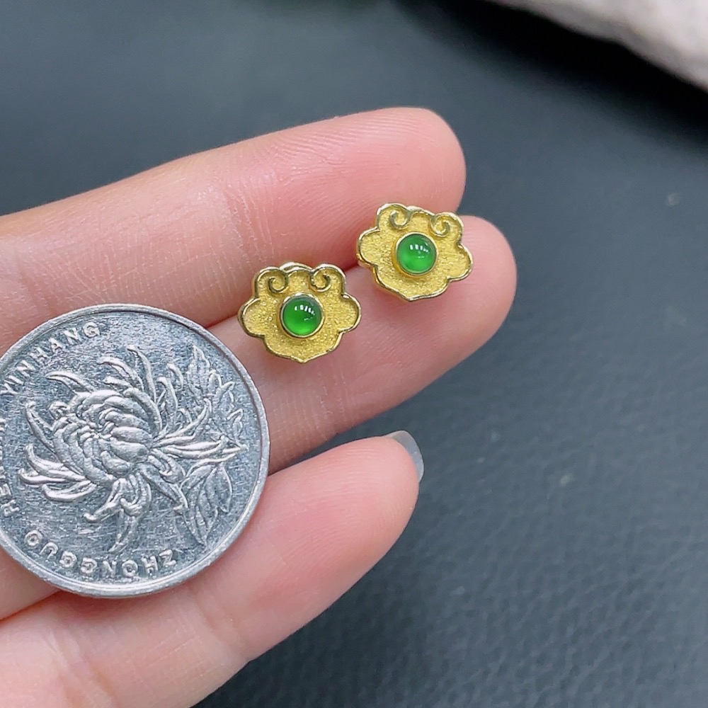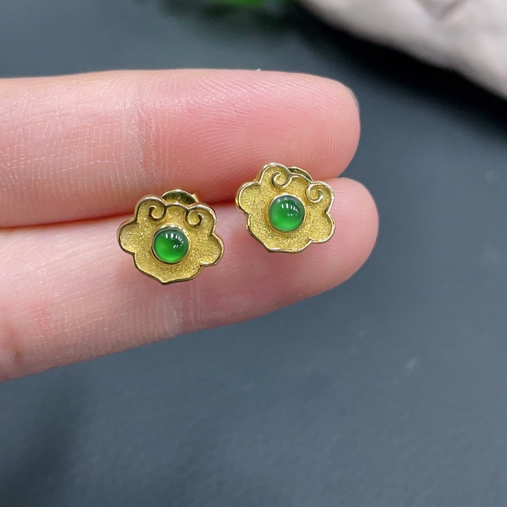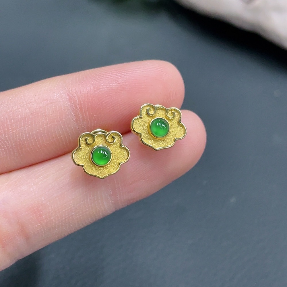 Jadeite Inlaid Earrings 18k Gold Inlaid Total Approx. 2.65g
