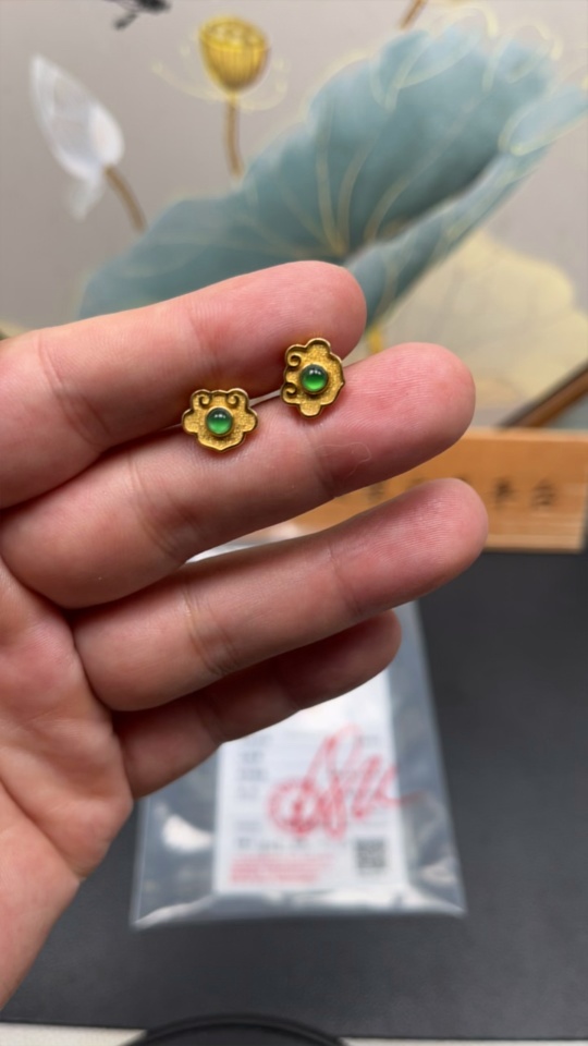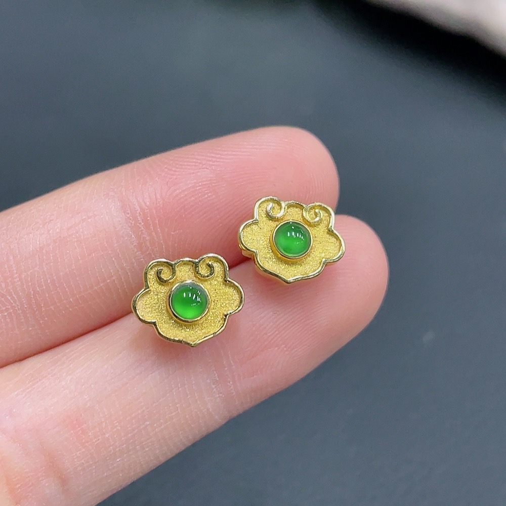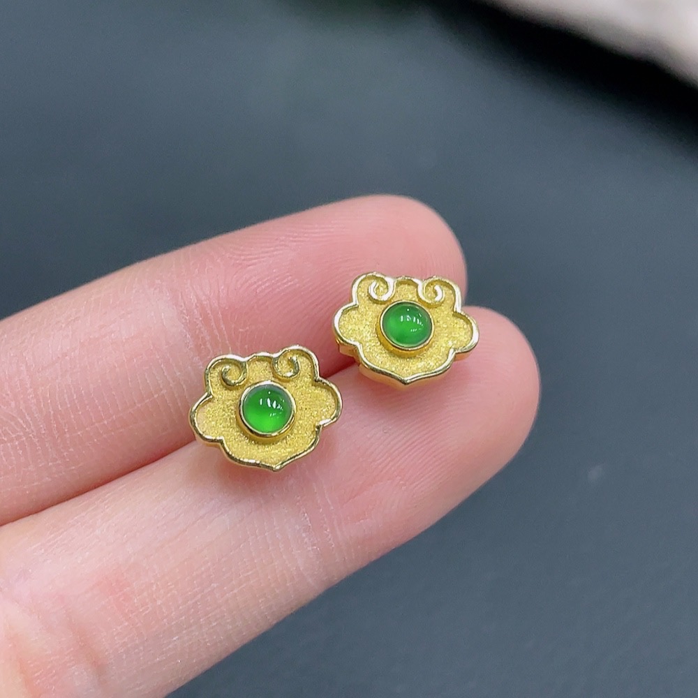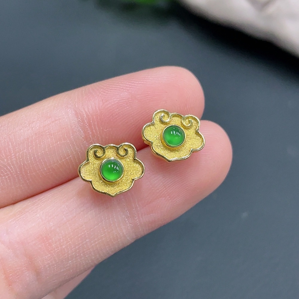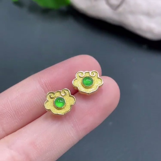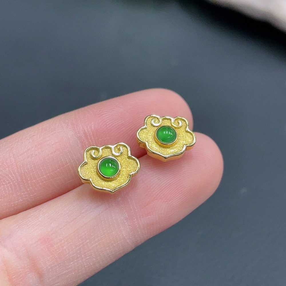 Jadeite Inlaid Earrings 18k Gold Inlaid Total Approx. 2.65g