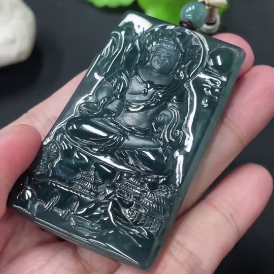 Jadeite Fudo Myoo Pendant Total Weight Approx. 39.2g
