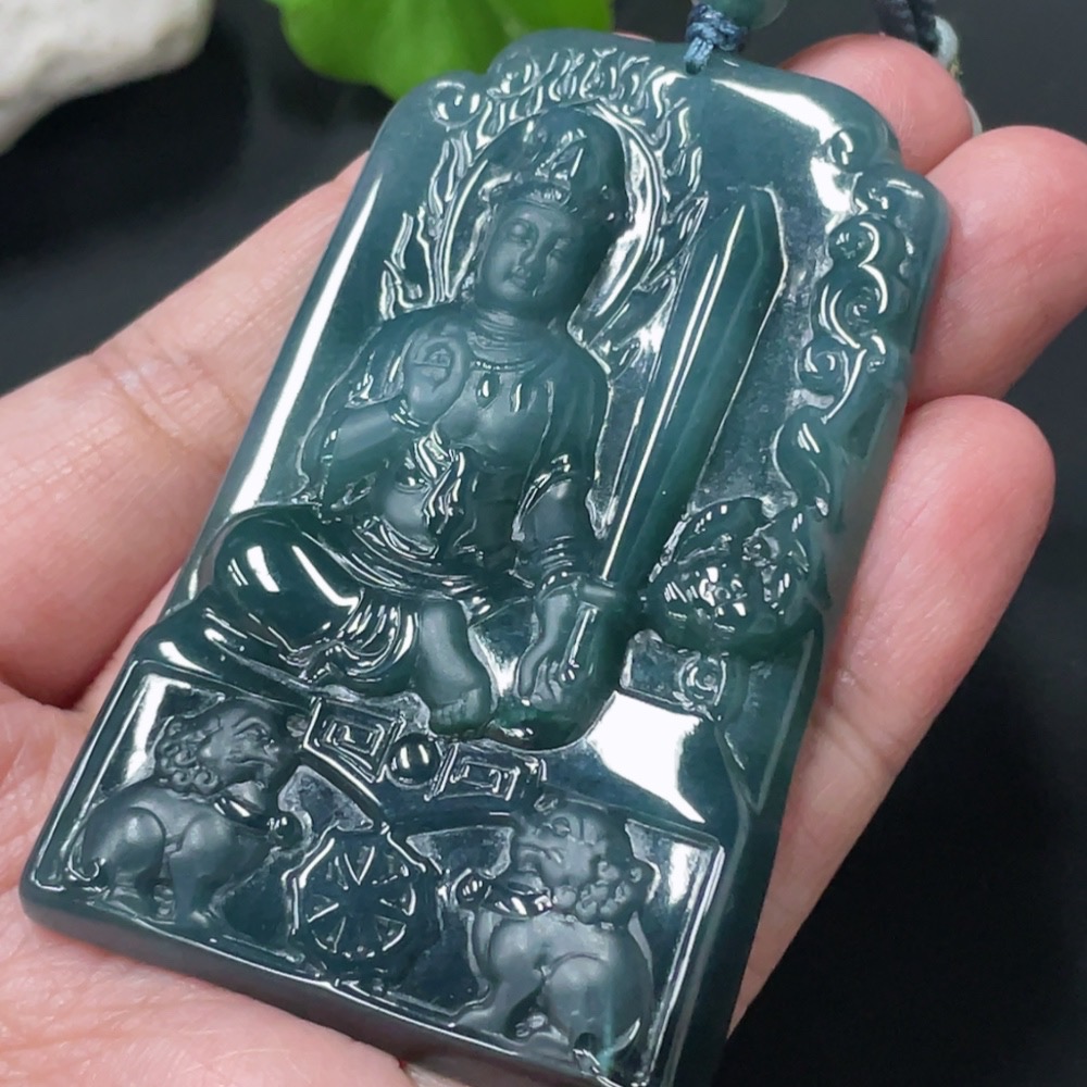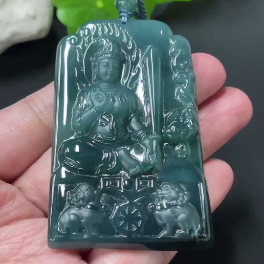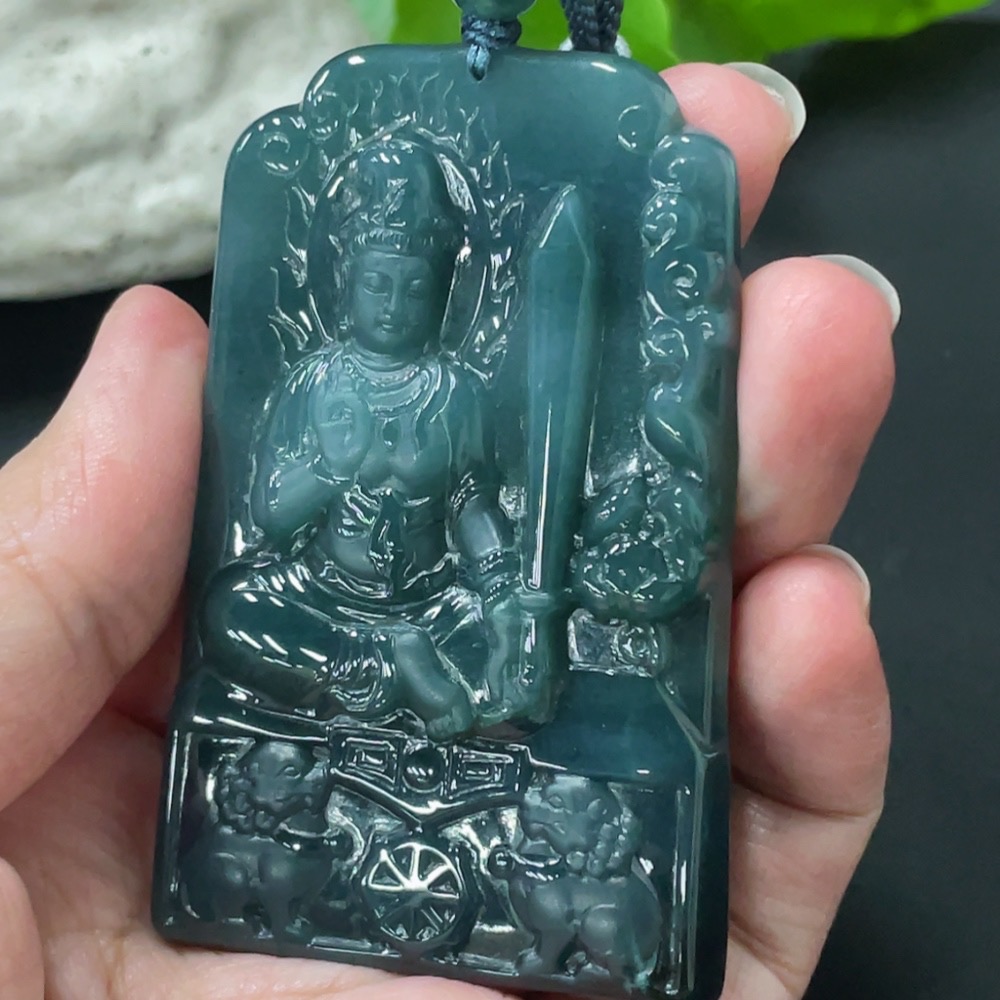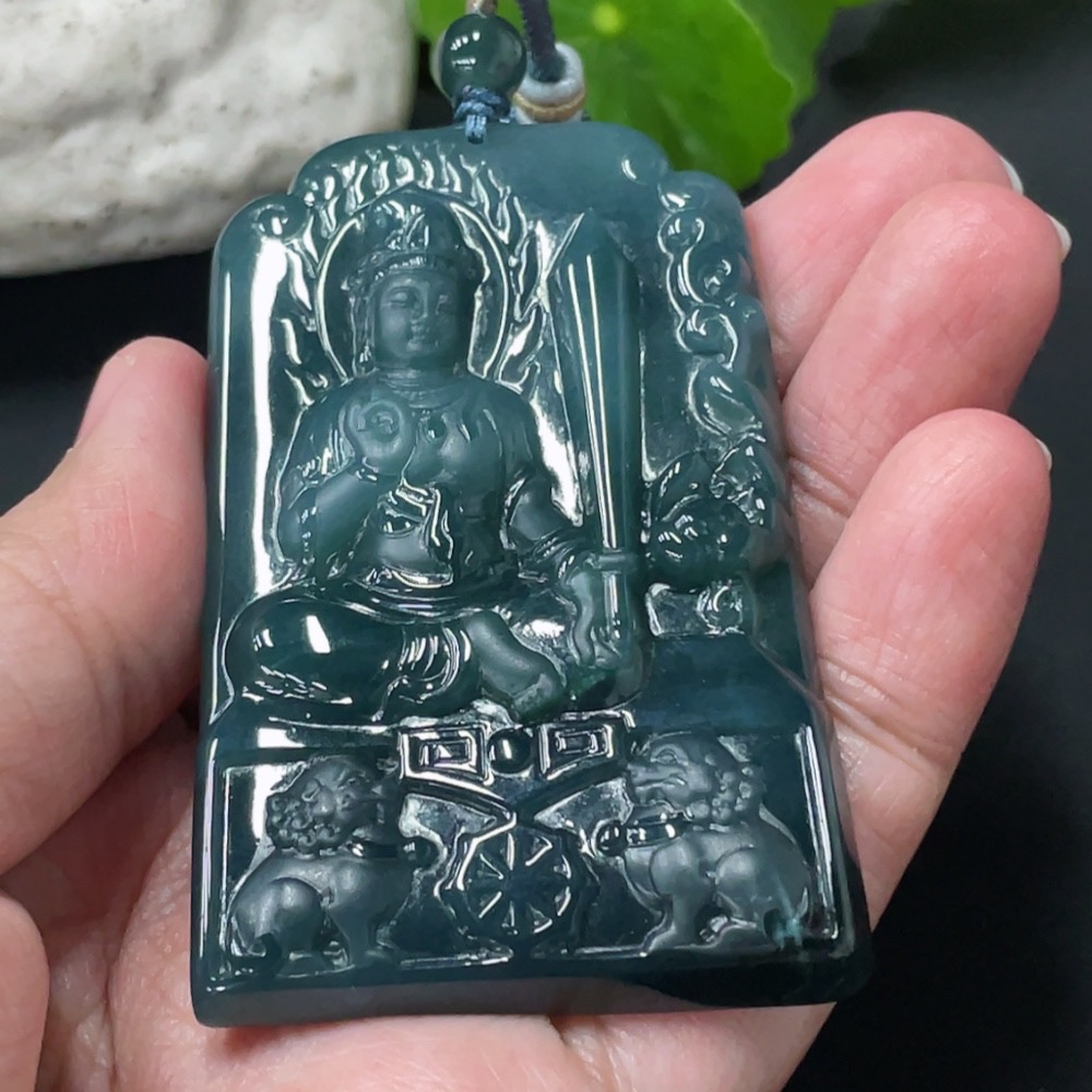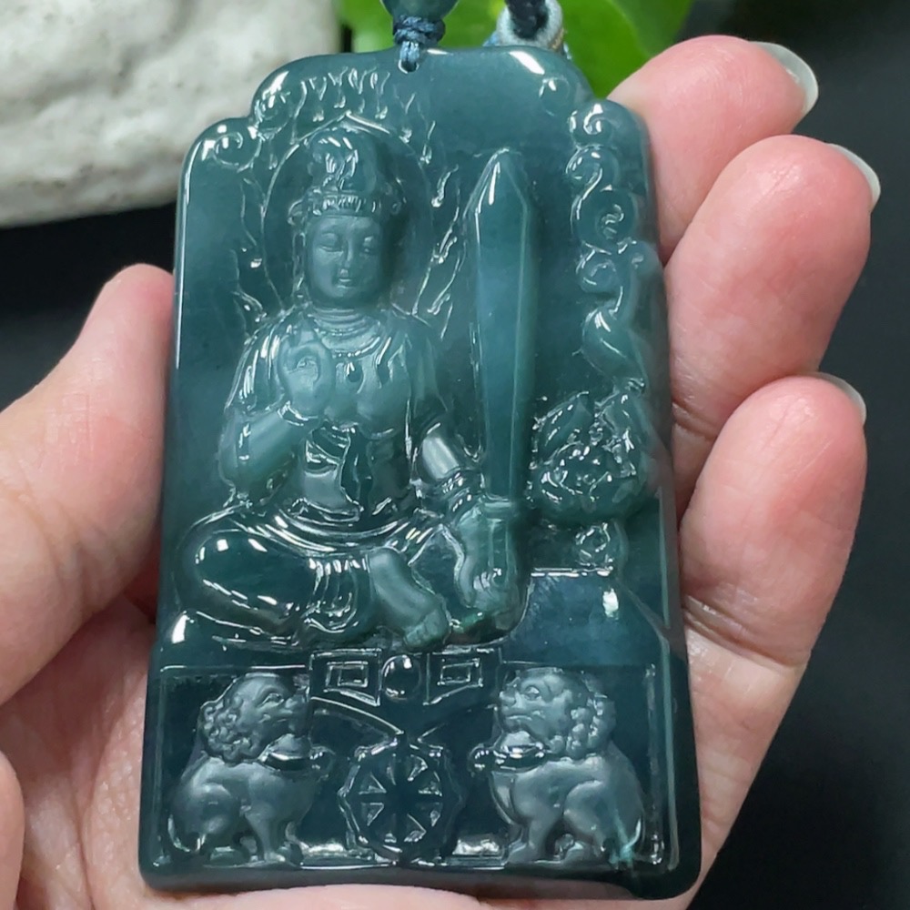 Jadeite Manjushri Bodhisattva Pendant Total Weight Approx. 44.36g