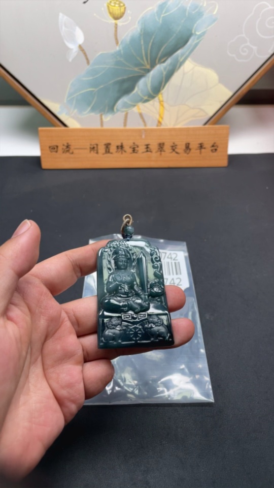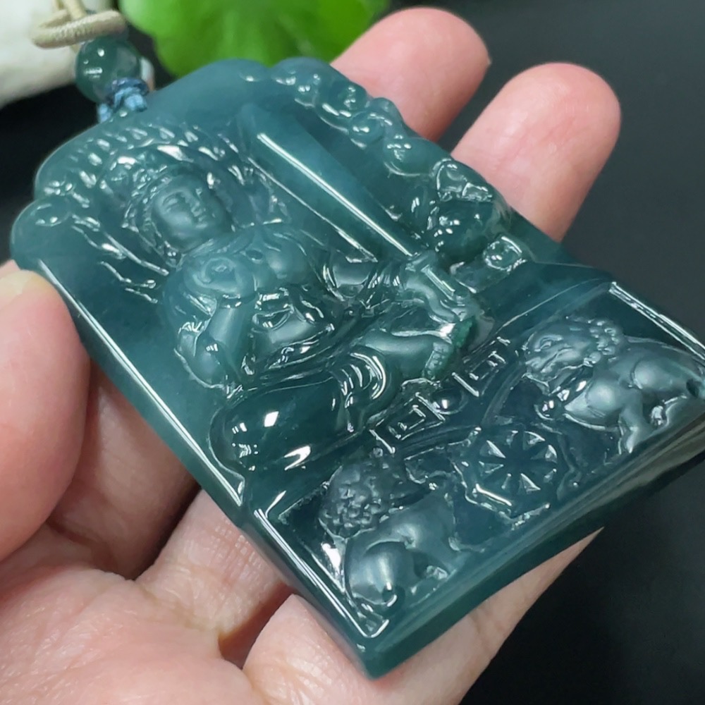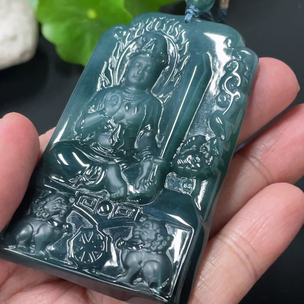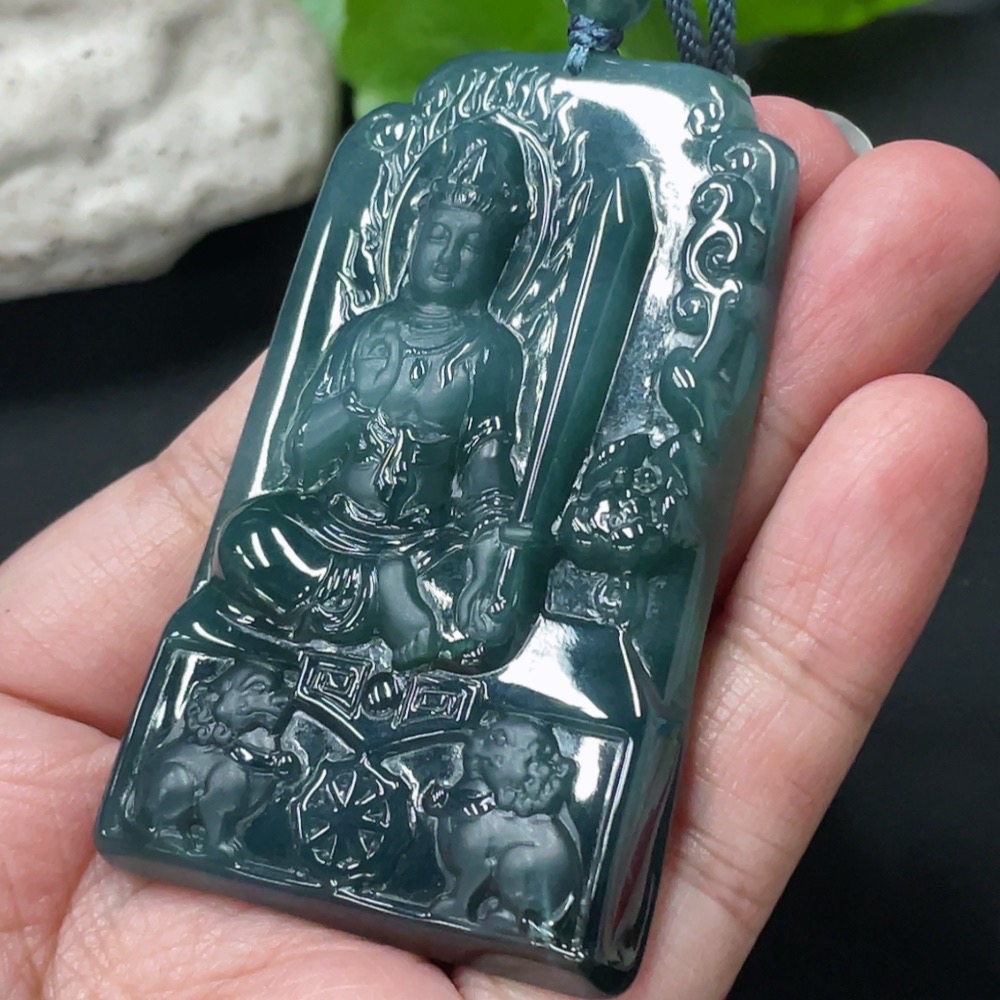 Jadeite Manjushri Bodhisattva Pendant Total Weight Approx. 44.36g