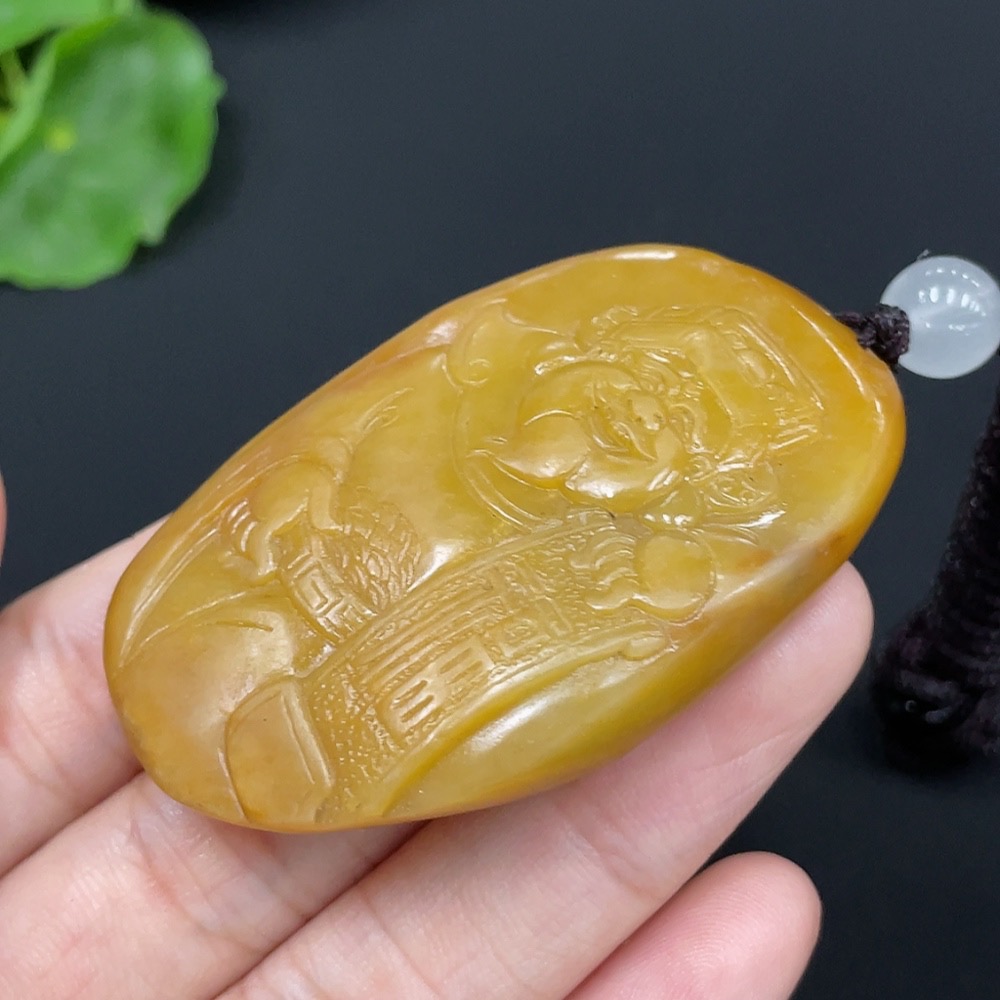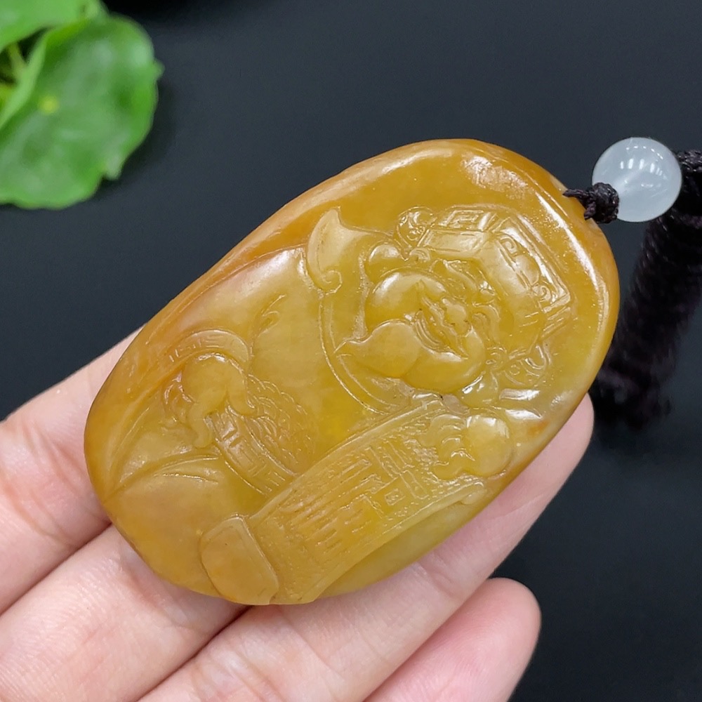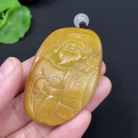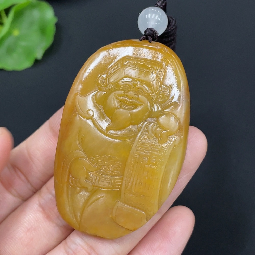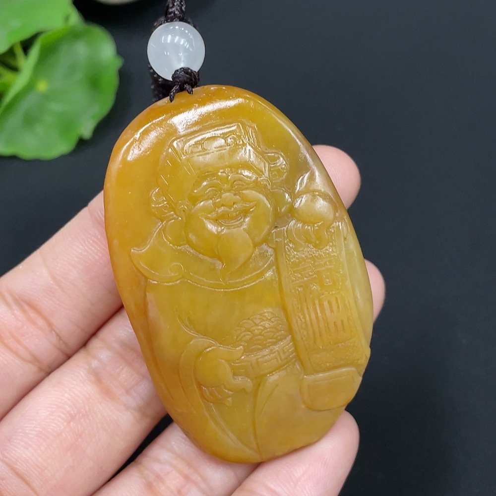 Hetian Jade Pendant God of Wealth Undetermined Skin Color Formation Total Weight (including rope) approx. 34.9g