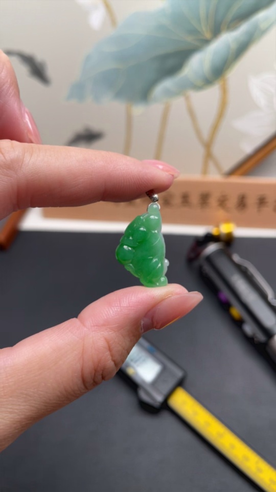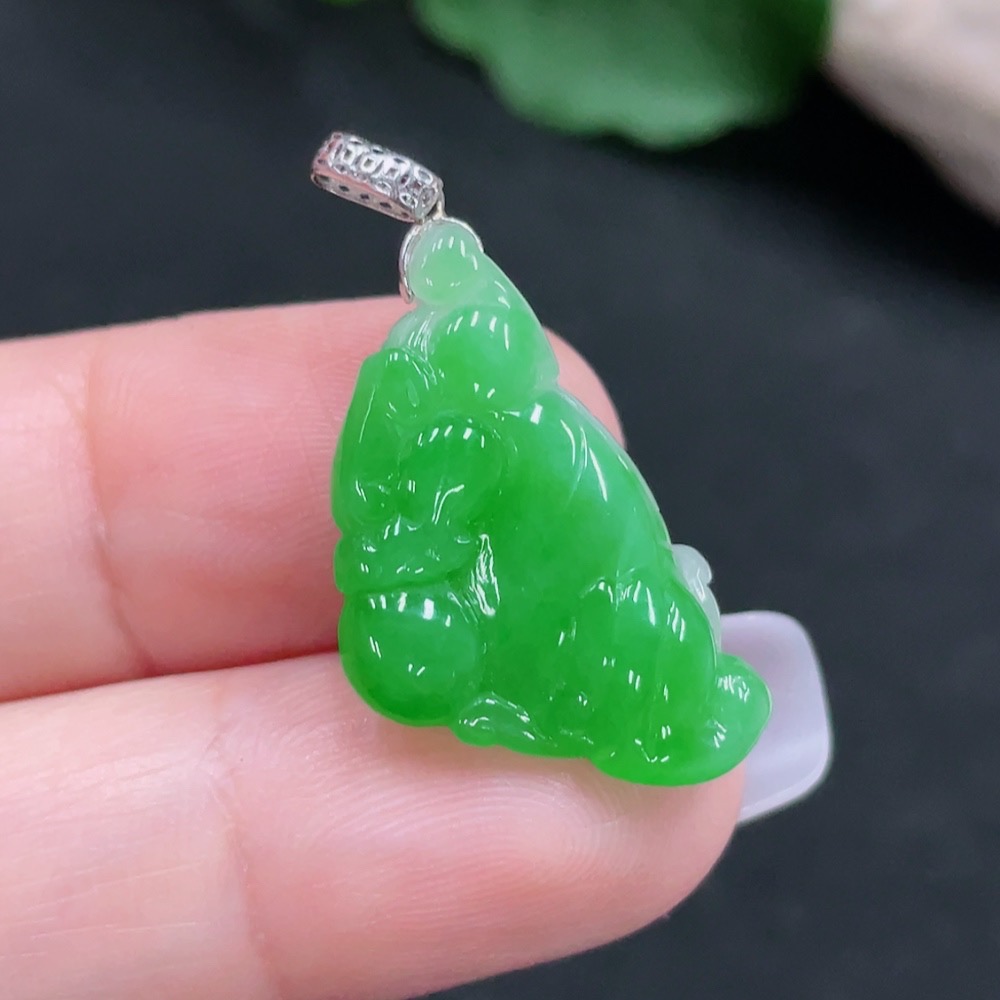JadeitePendant with 18K Gold Clasp, Total Weight Approximately 2.8g
