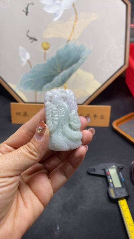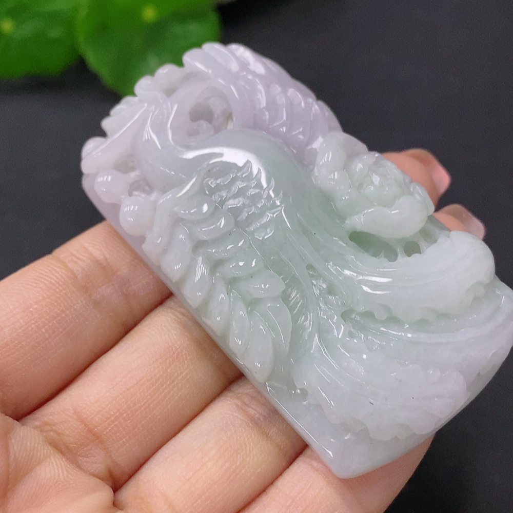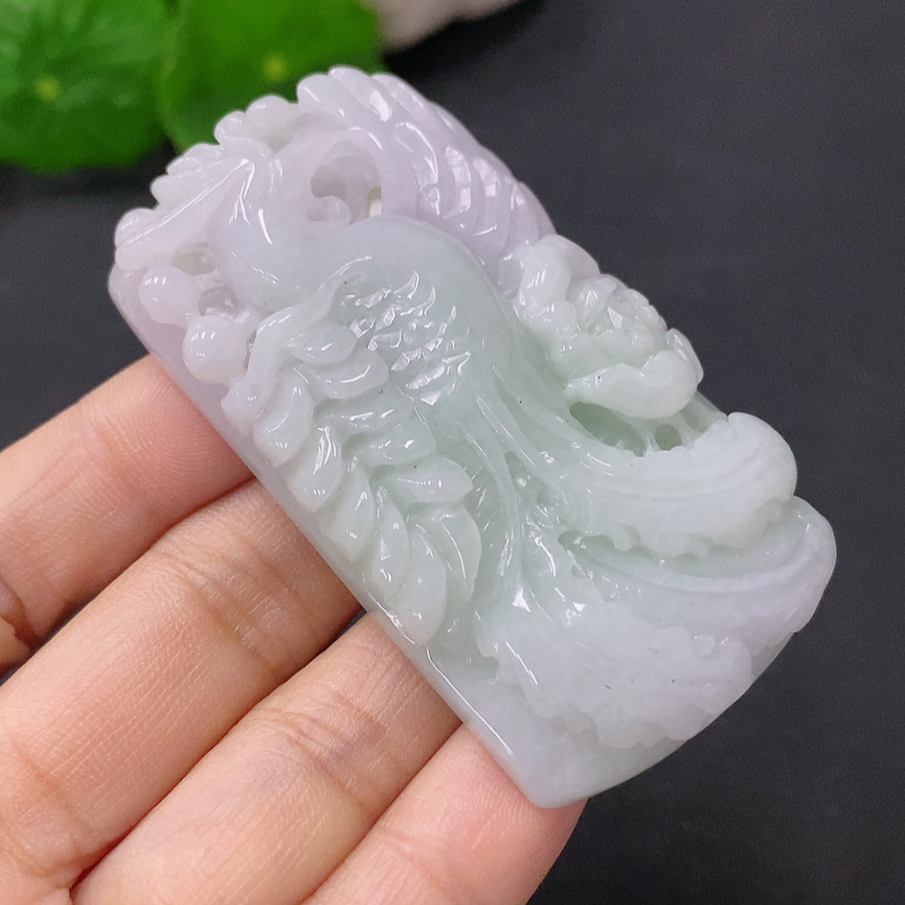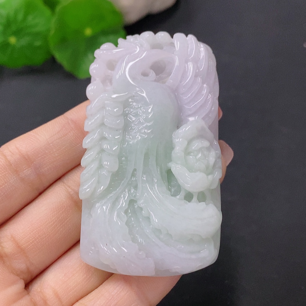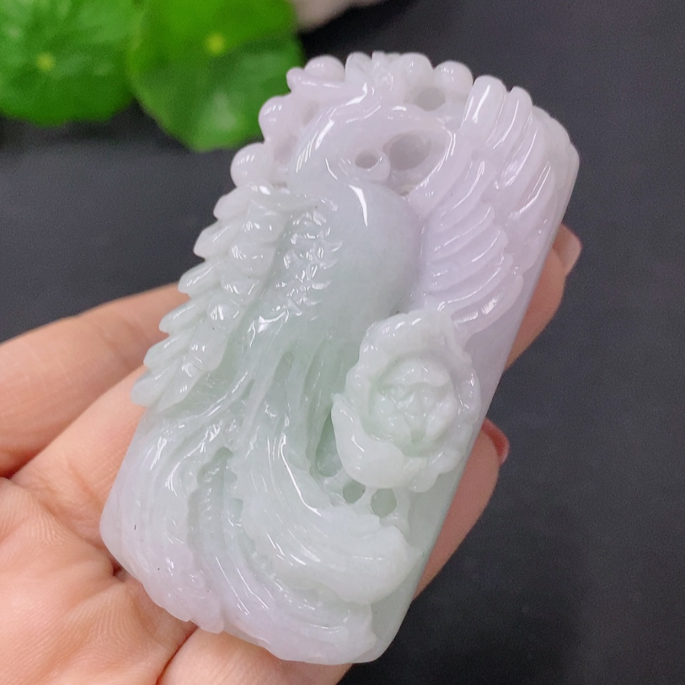 Jadeite Pendant Phoenix Playing with Peony Total Weight Approx. 59.96g