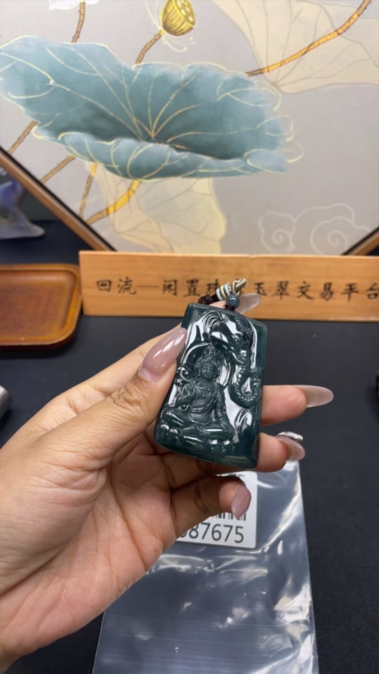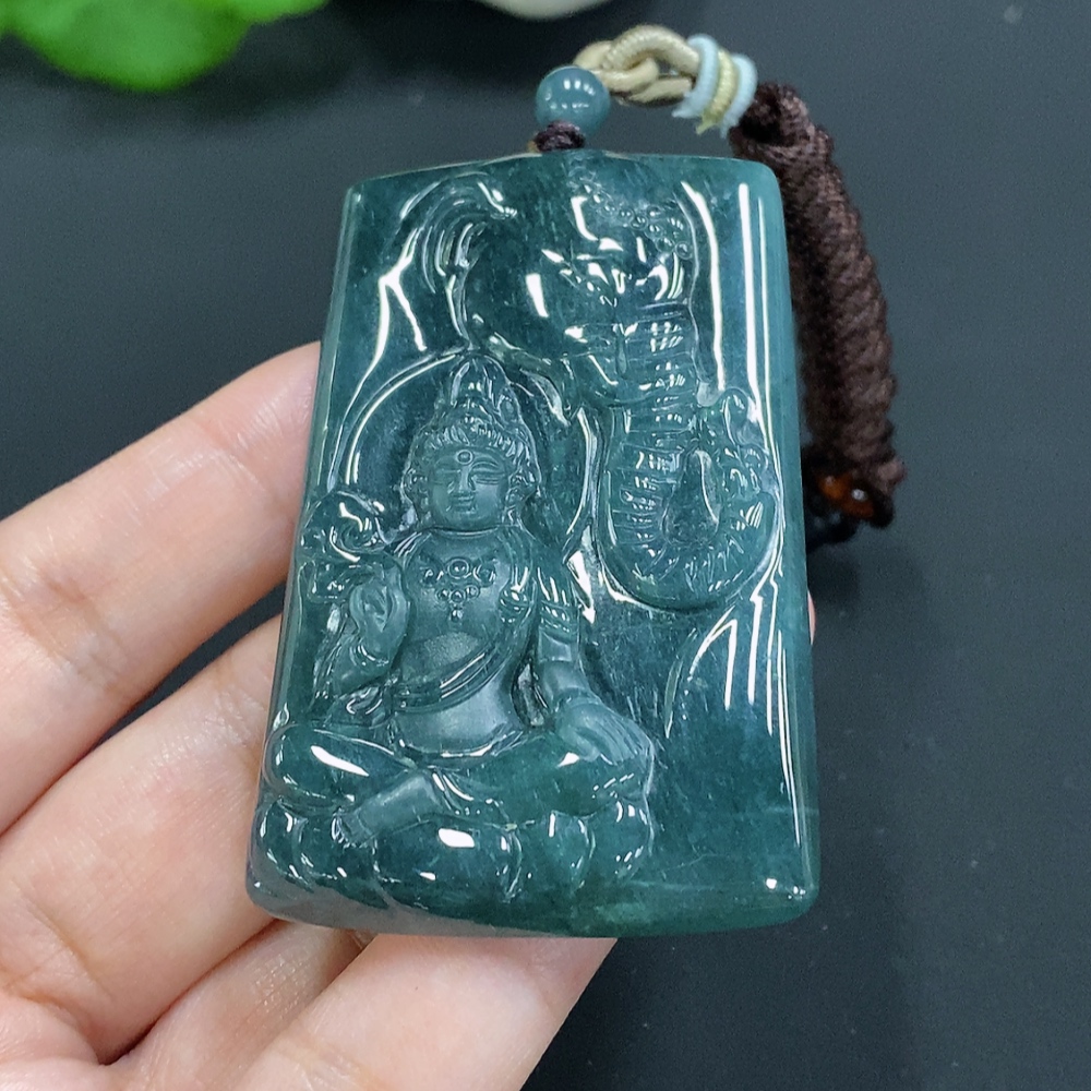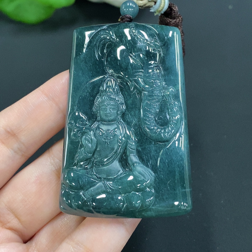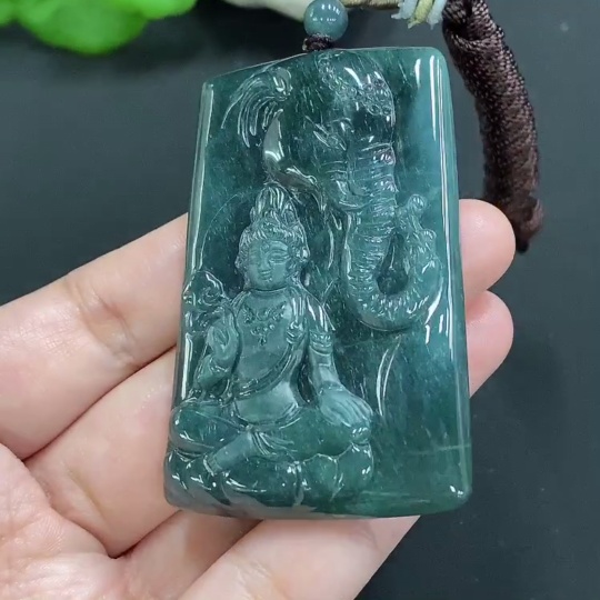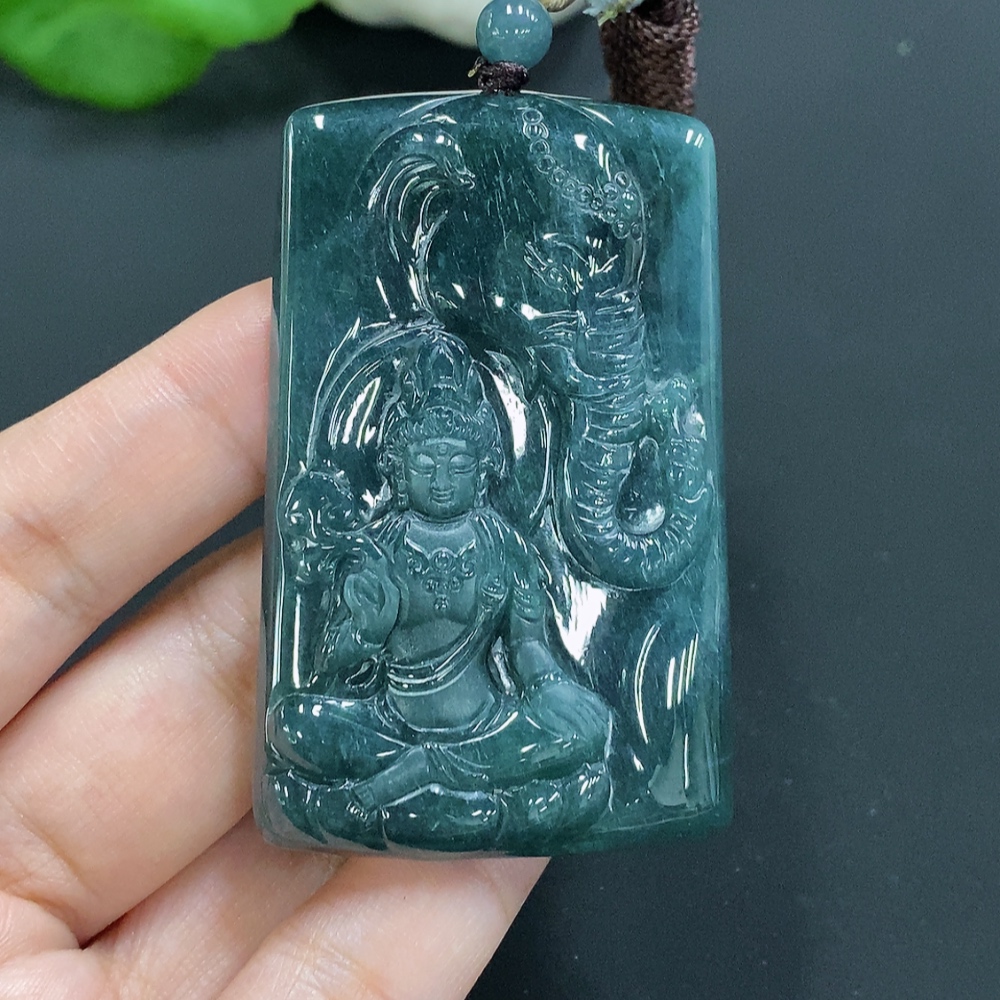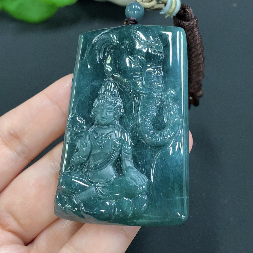 Jadeite Samantabhadra Pendant with total weight of approximately 44.5 grams including rope