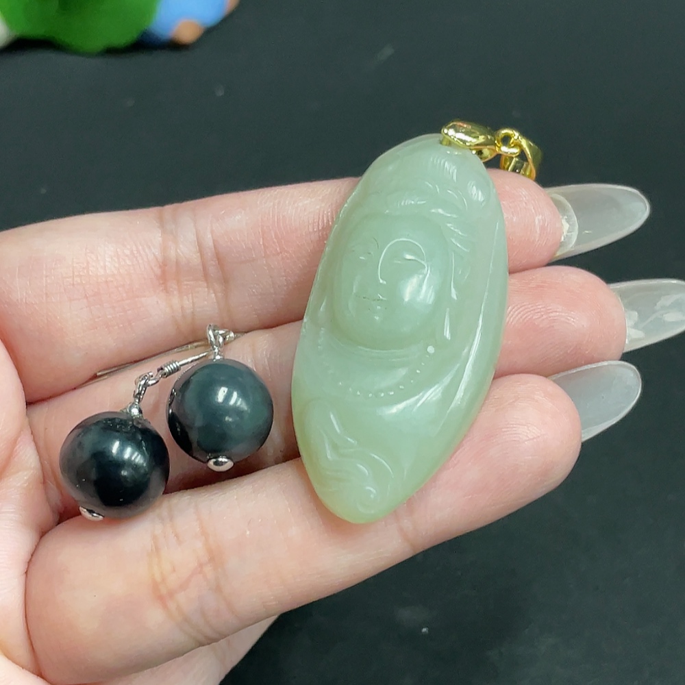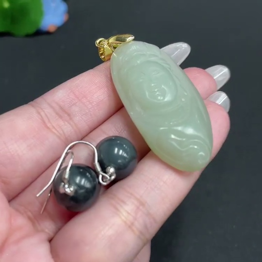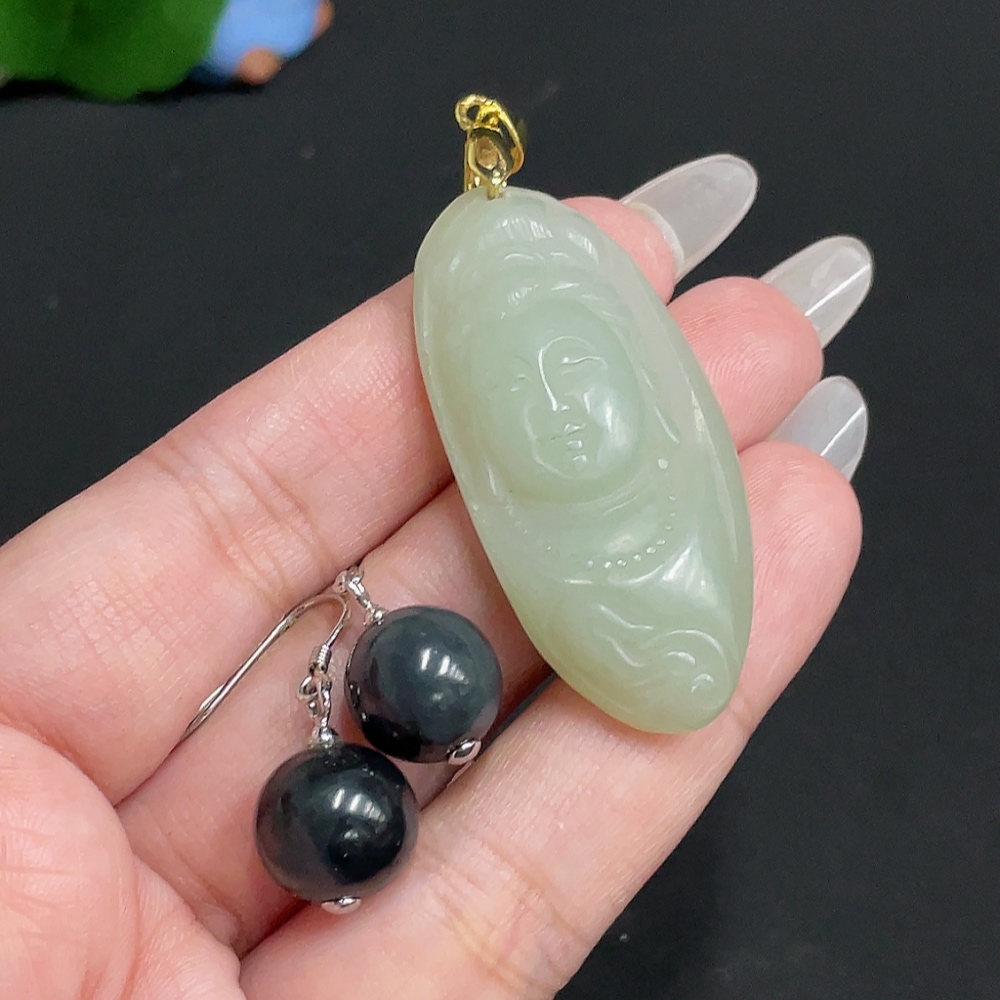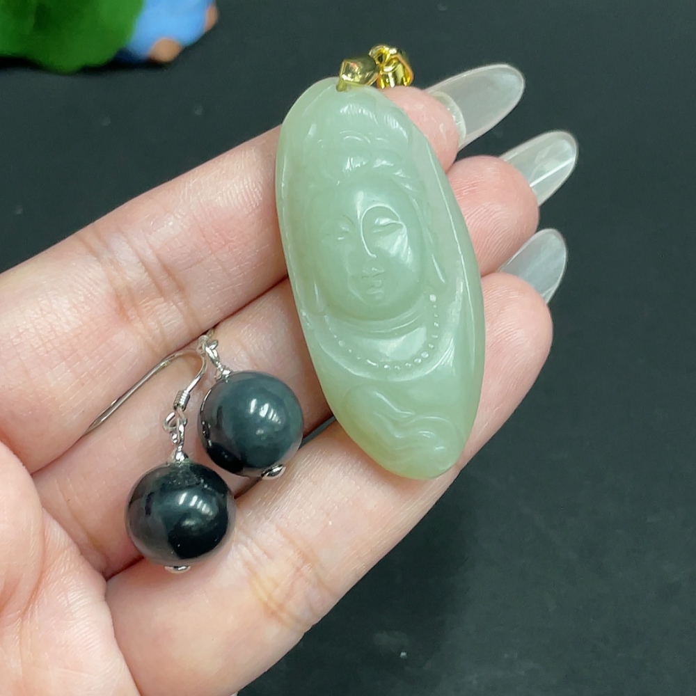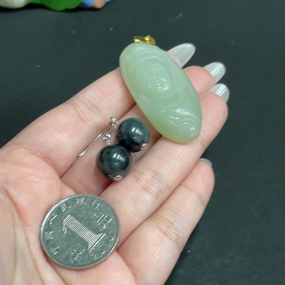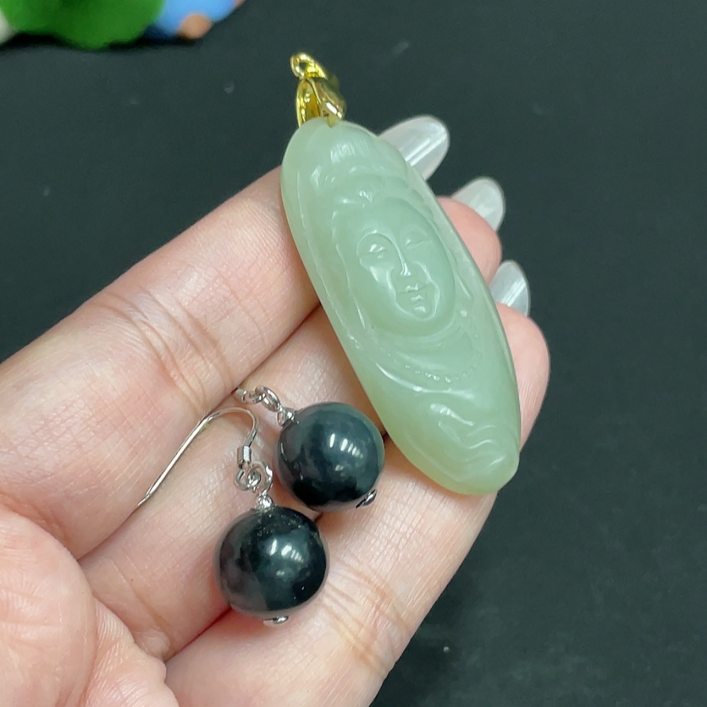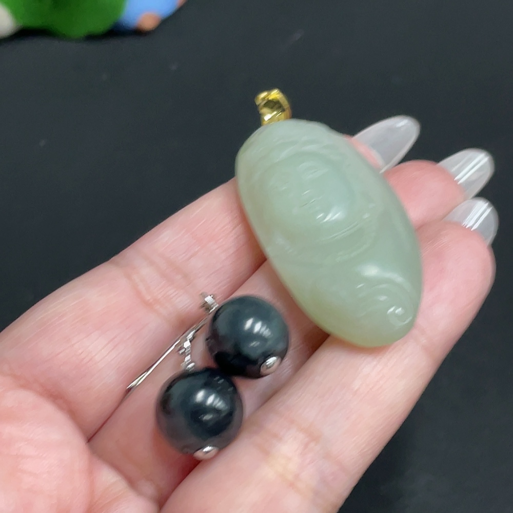 Hetian Jade Inlaid Pendant Earrings Total Weight About 21.6g Non-Gold