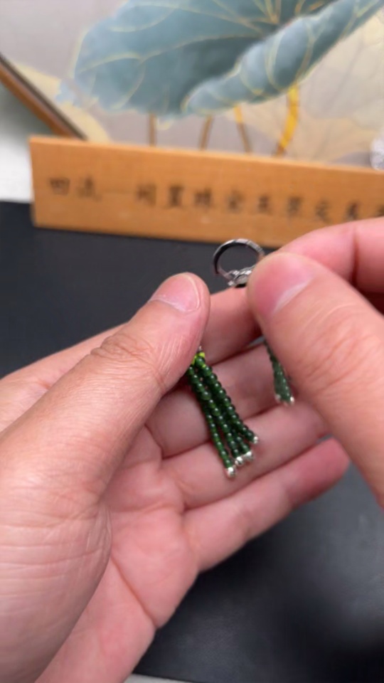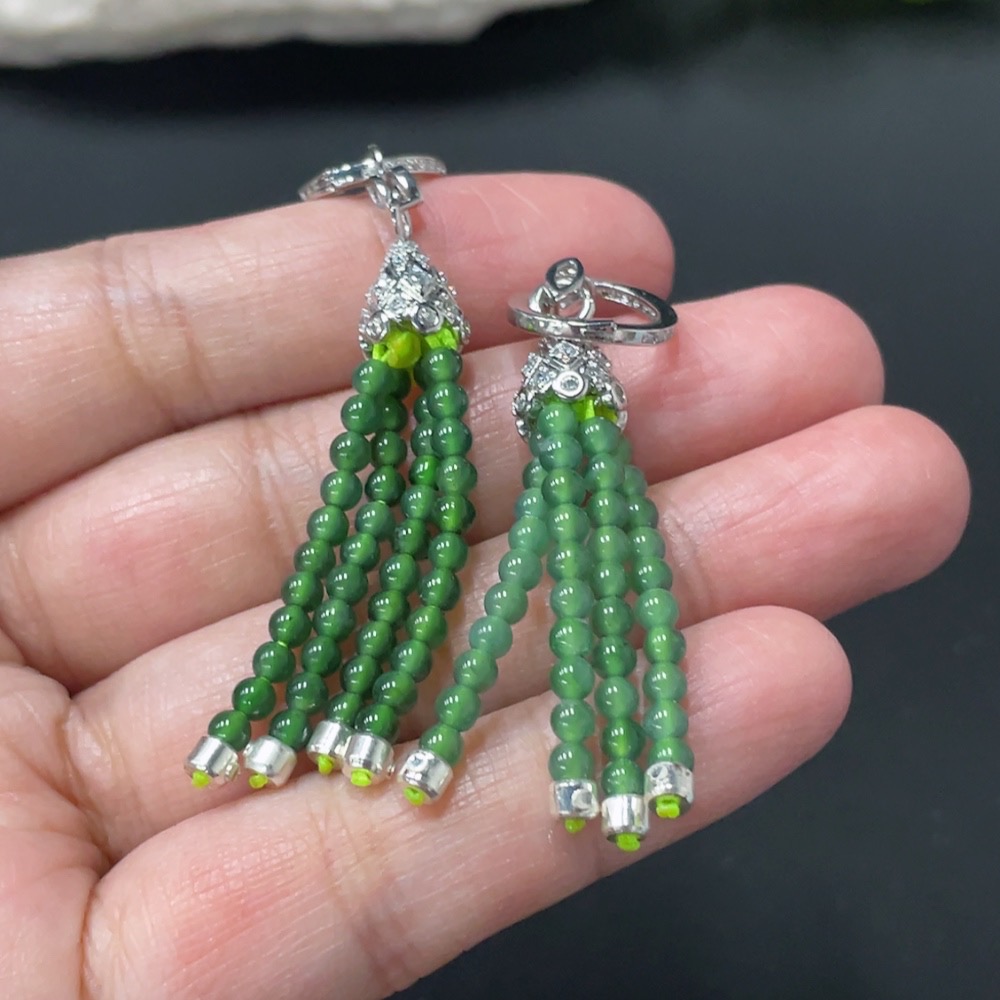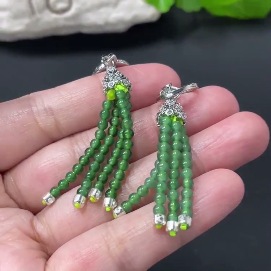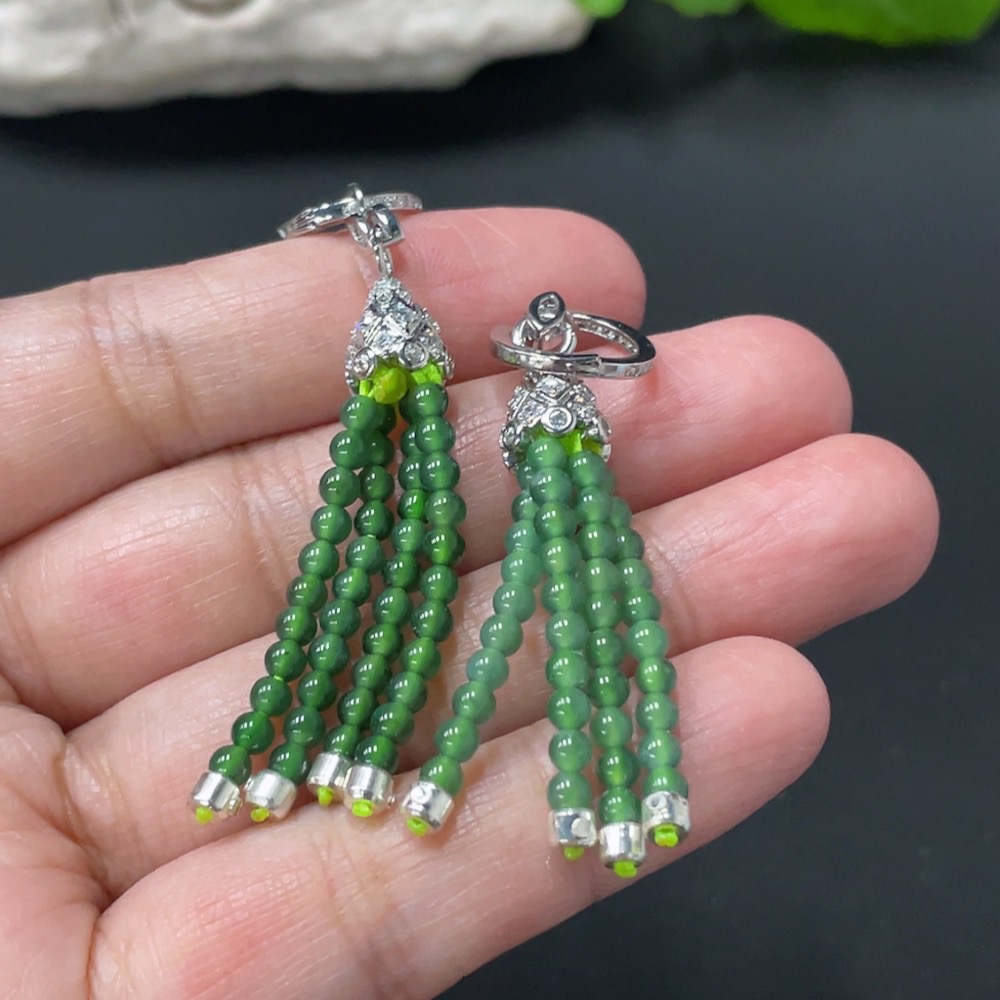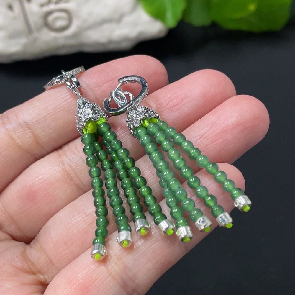 Jadeite Bead Inlaid Ear Studs Pair Card 2.9mm Approx. Total Weight 8g Non-Gold Inlaid