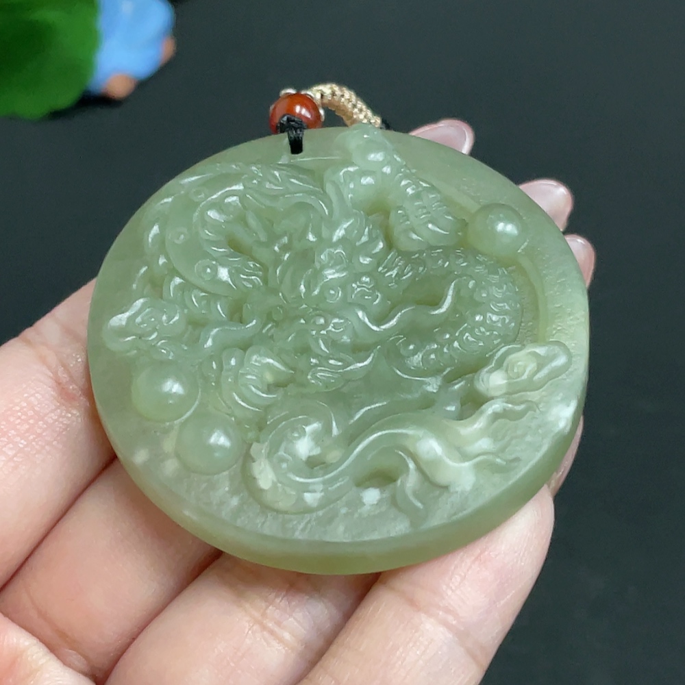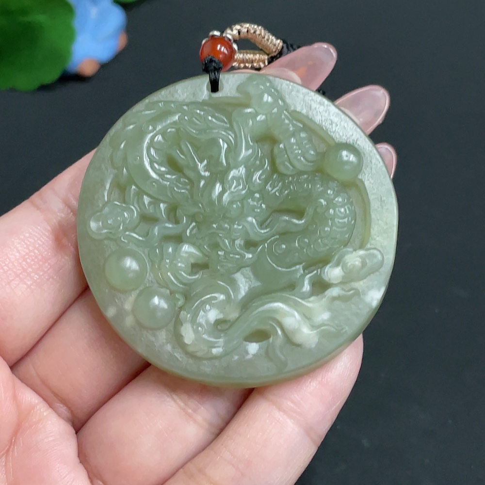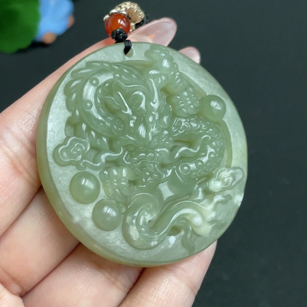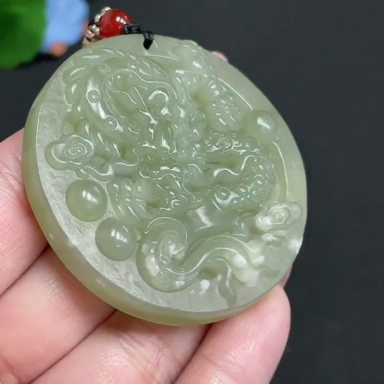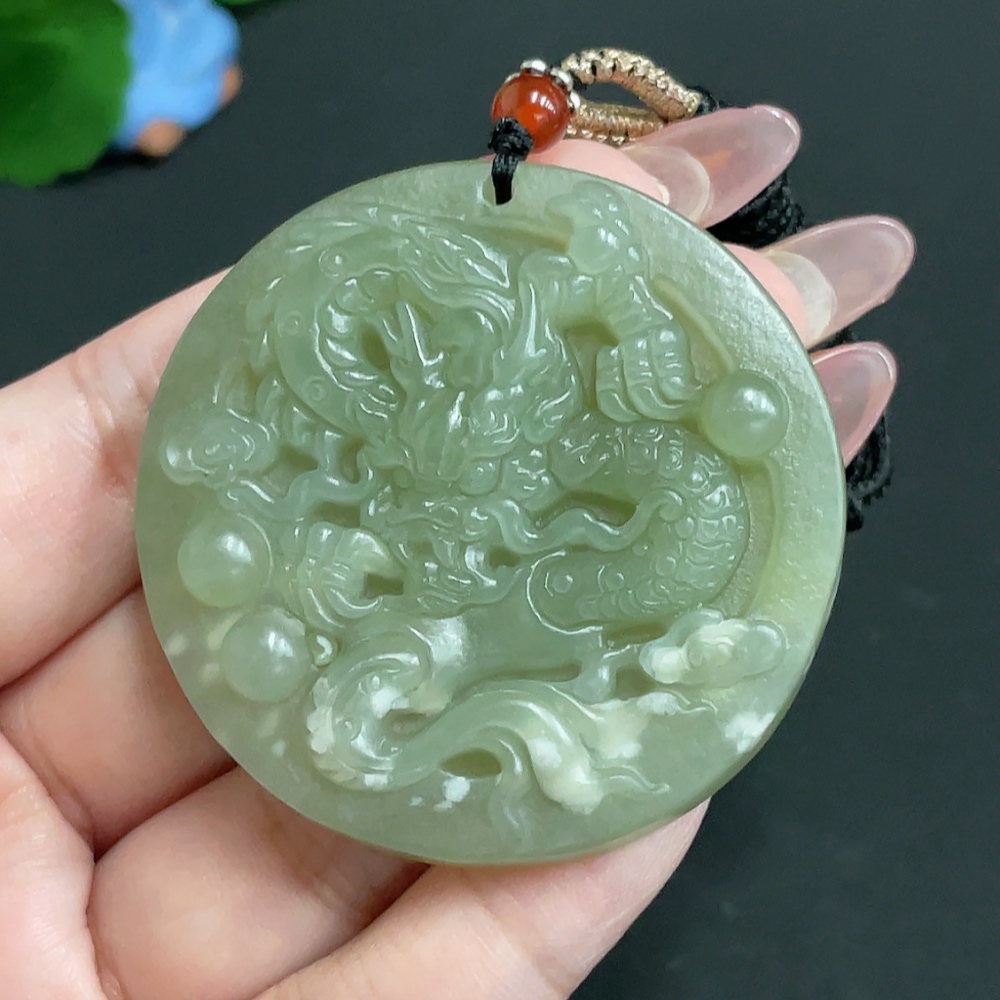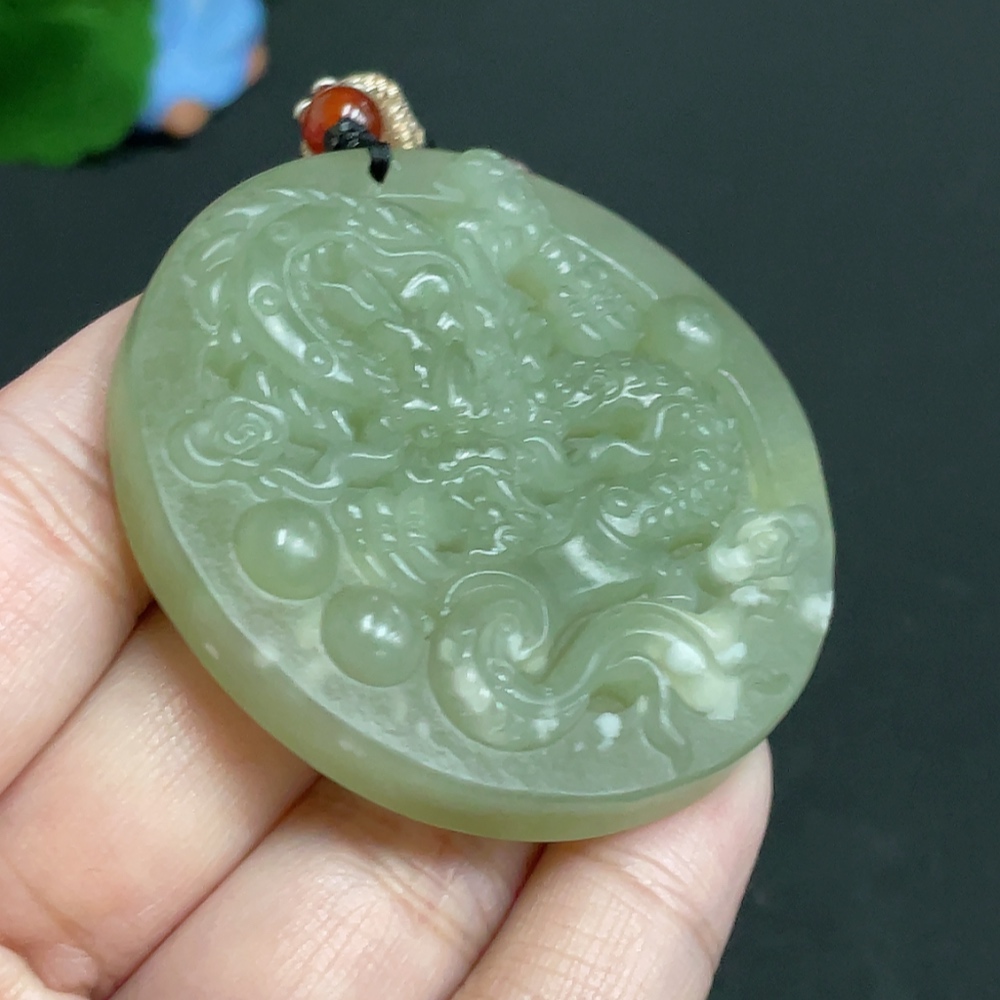 Hetian Jade Pendant Dragon Total Weight Approx. [including rope] 52.6g