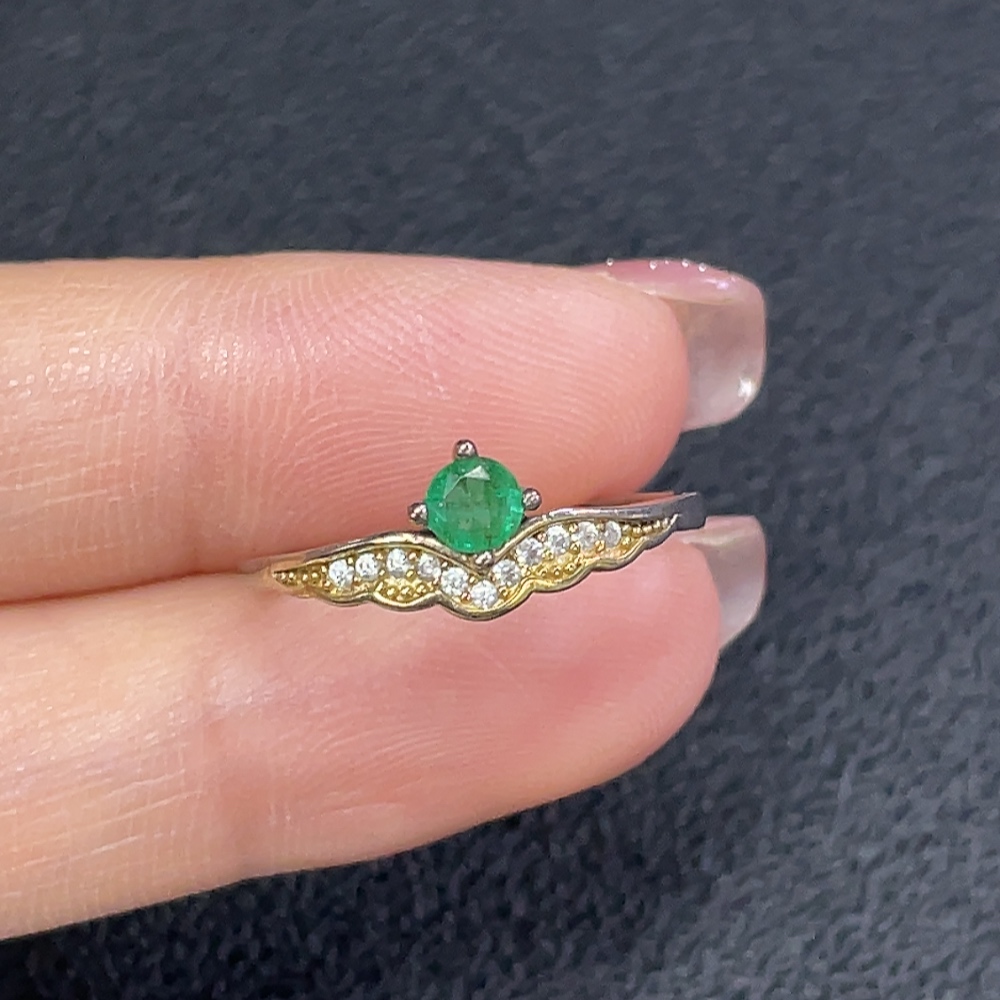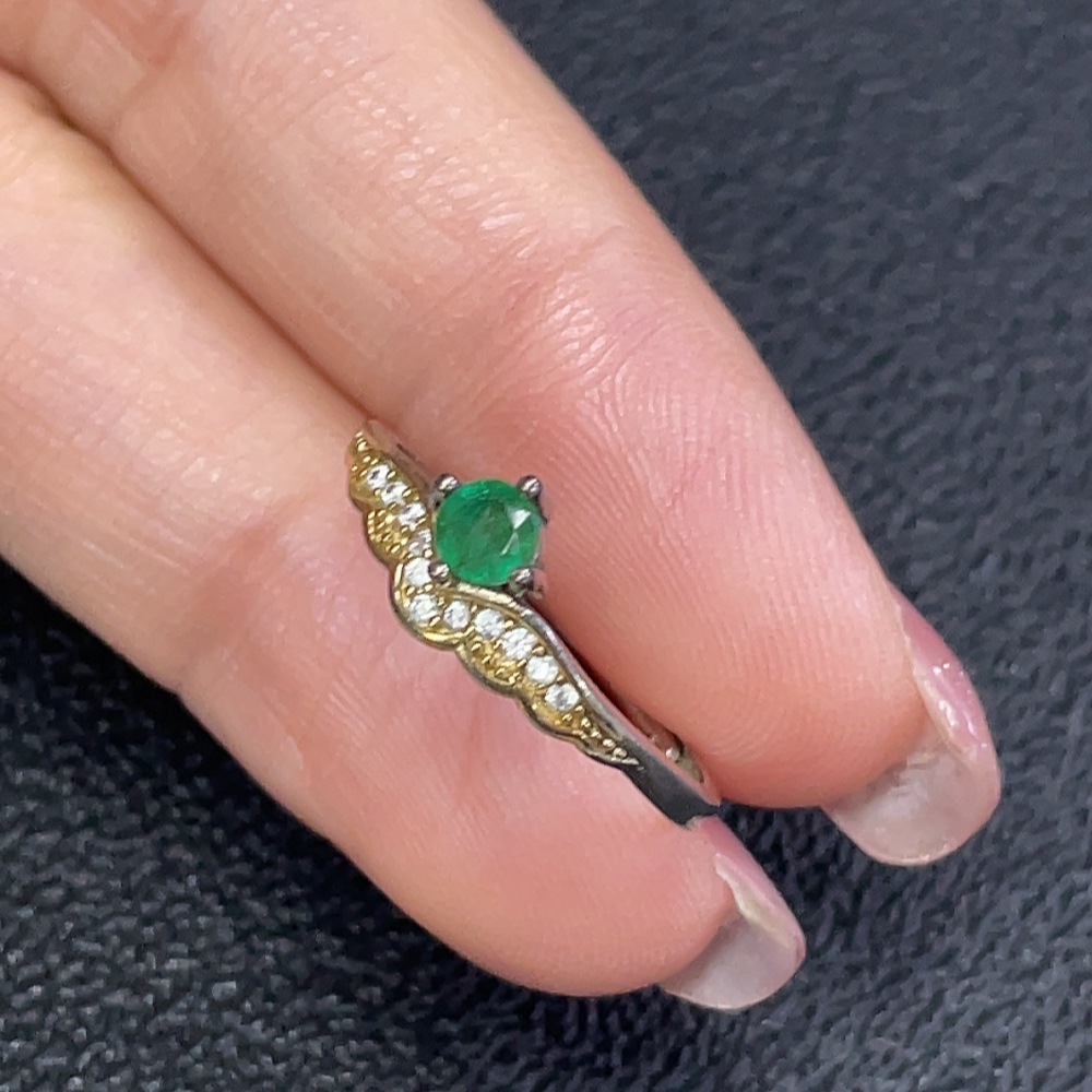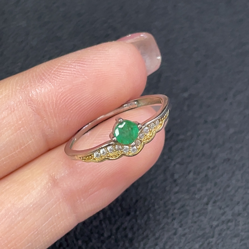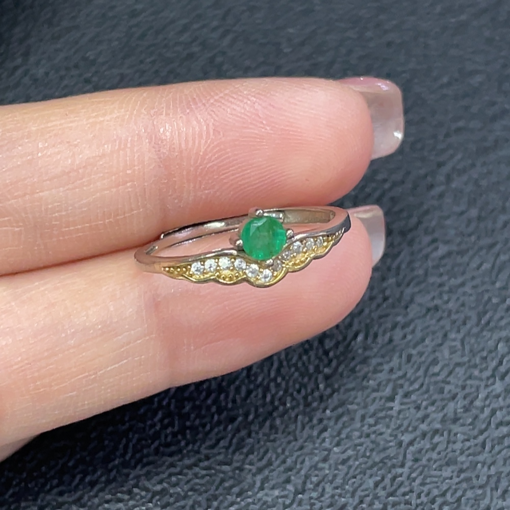 Emerald Ring, Clarity Enhanced, Adjustable Shank, Non-Gold Setting, Total Weight Approx. 1.39g