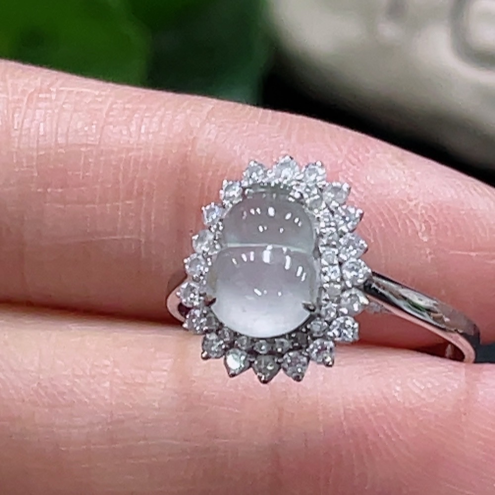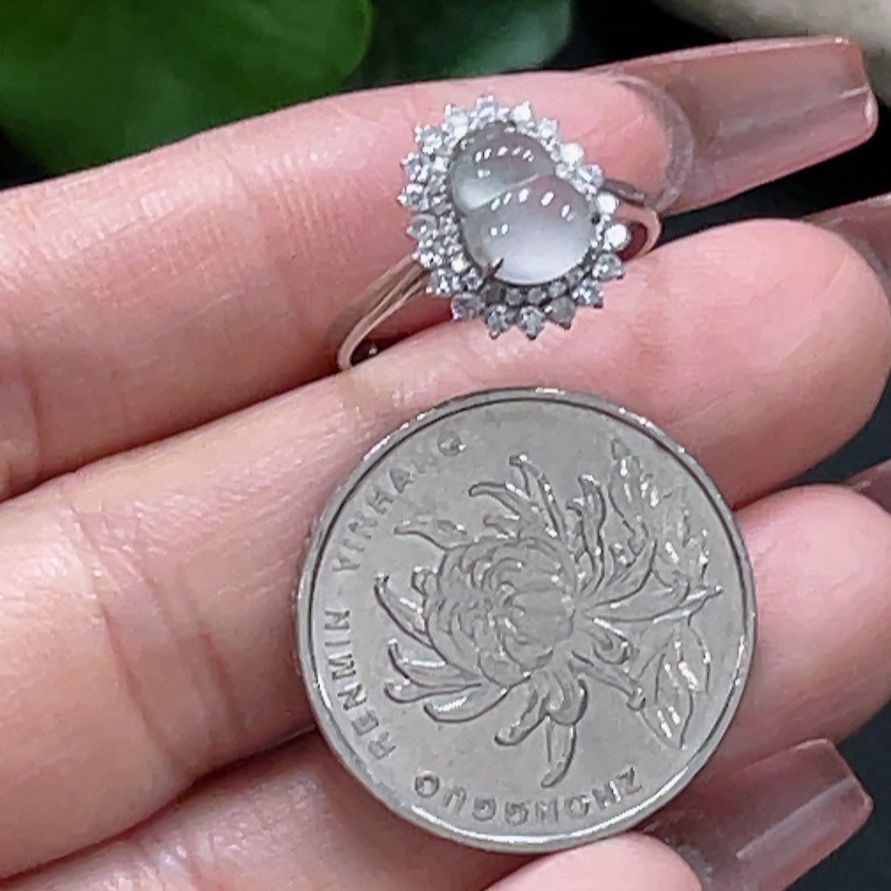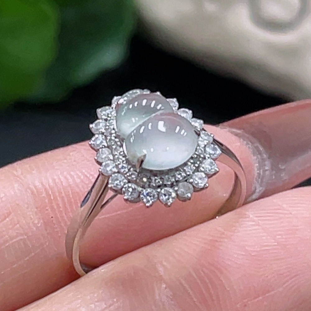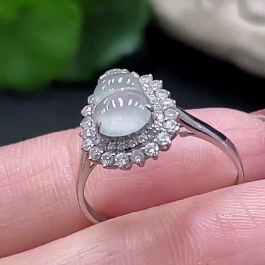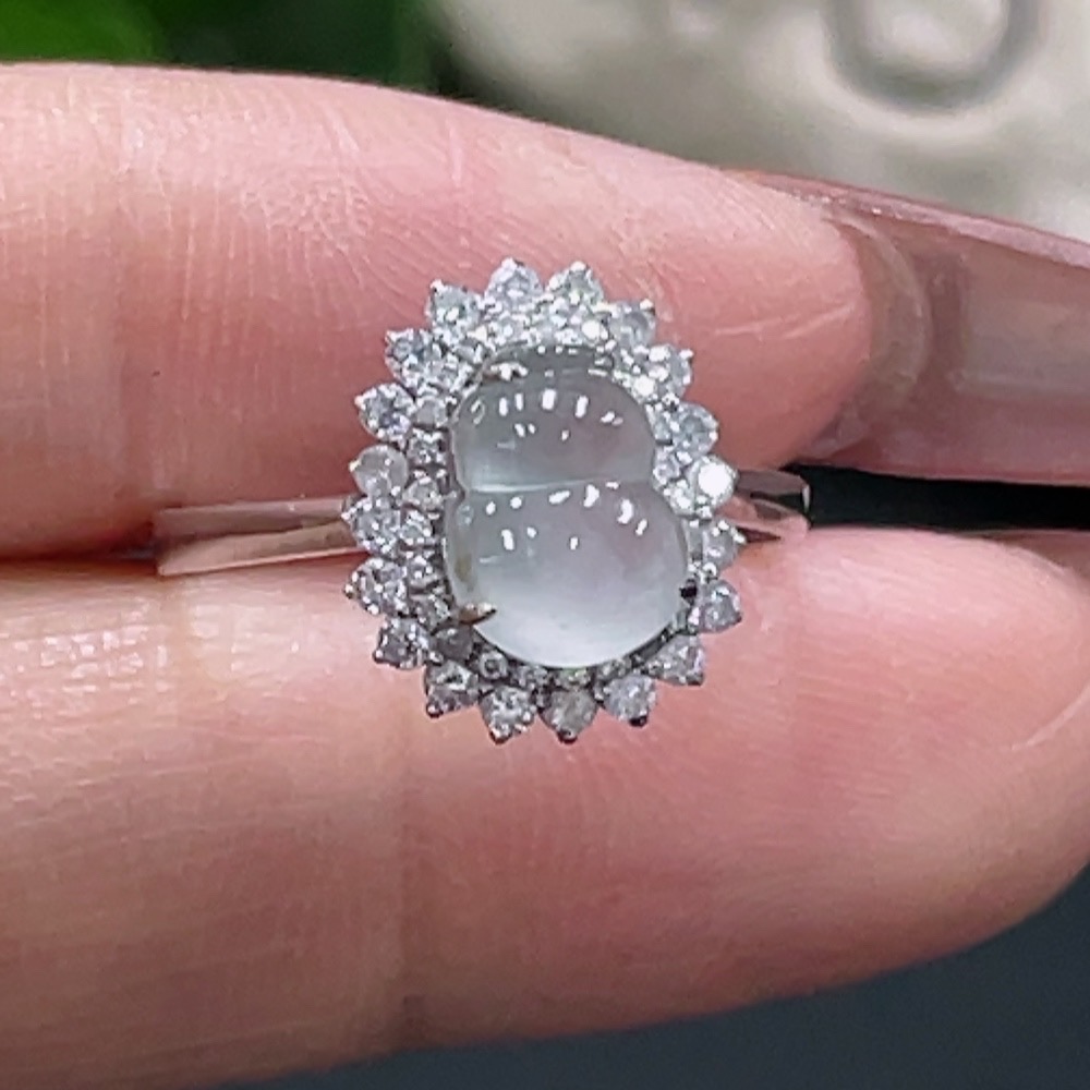 Jadeite Gourd Inlaid Ring 18K Gold Size 15 Total Weight Approx. 1.79g With Diamond Accents