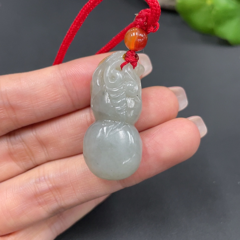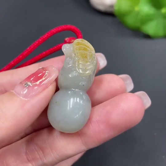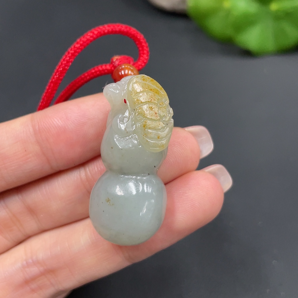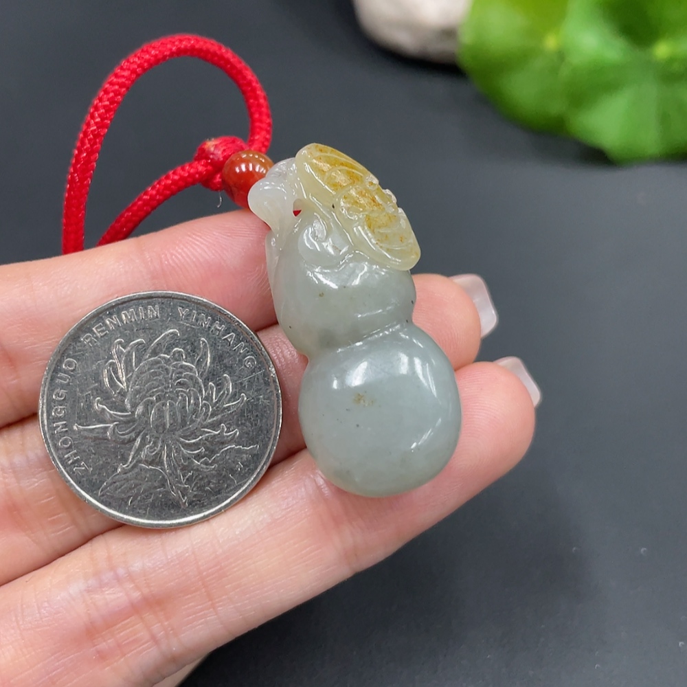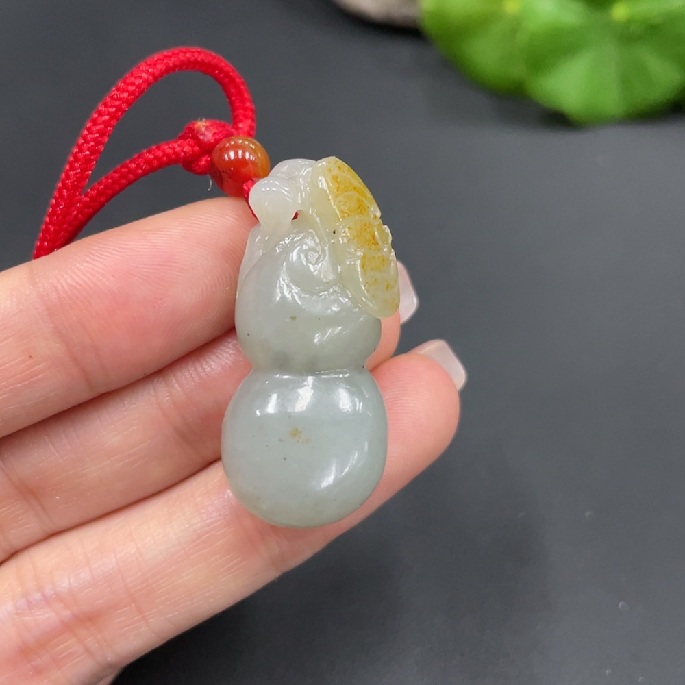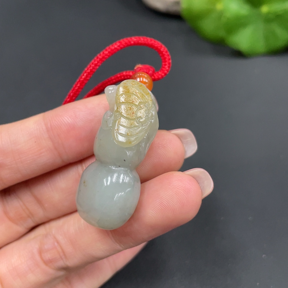Hetian Jade Pendant, Gourd, Undetermined Skin Color Formation, Total Weight (Including String): 15.1g