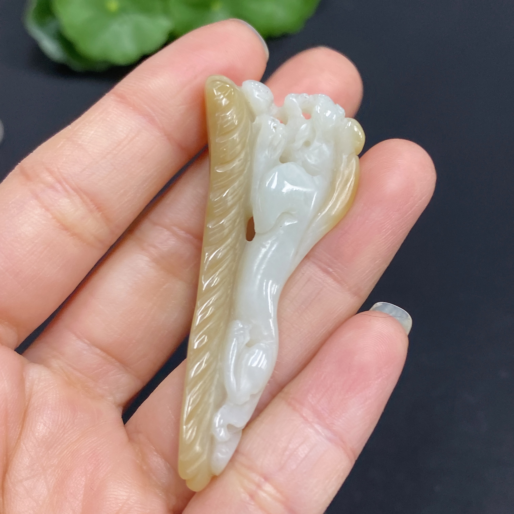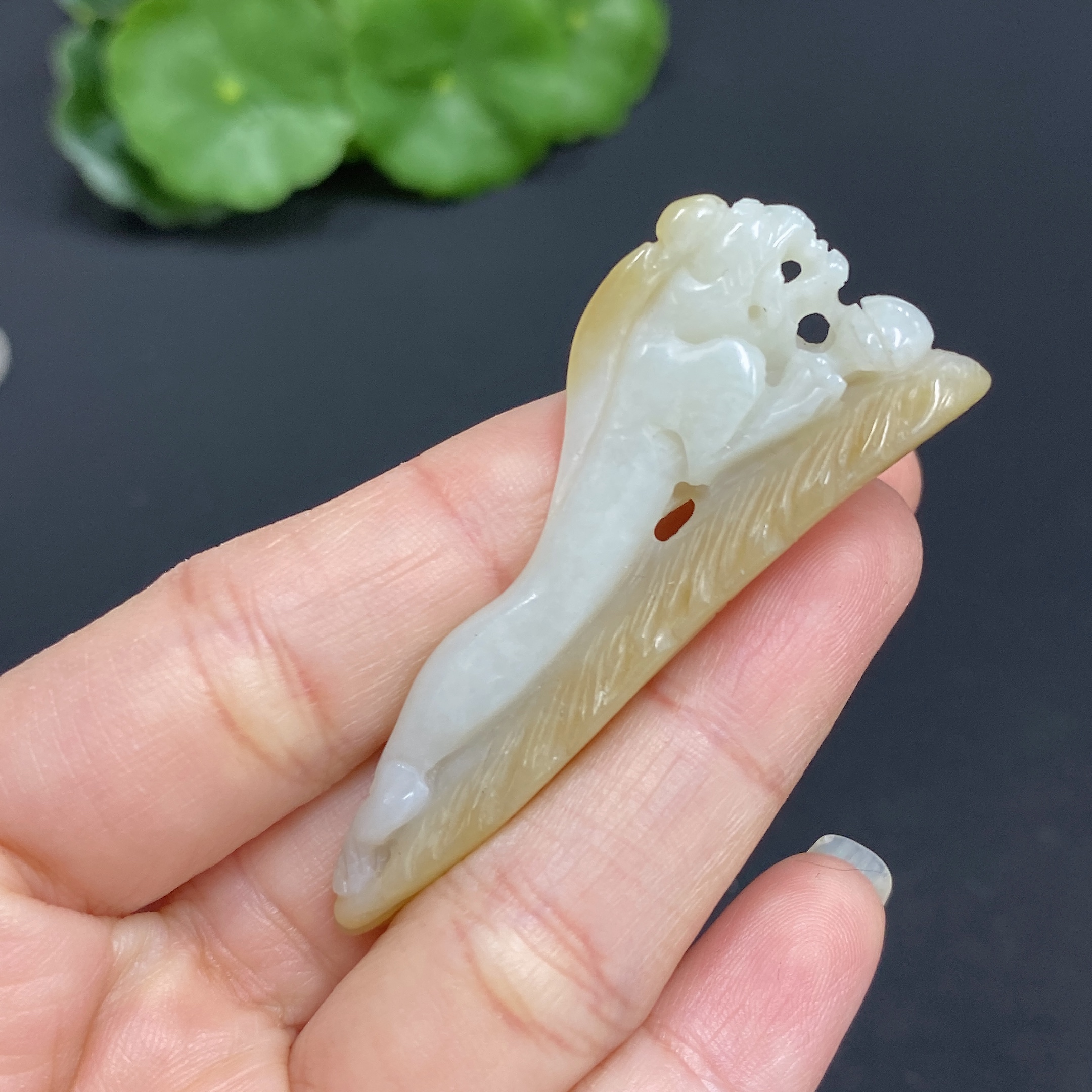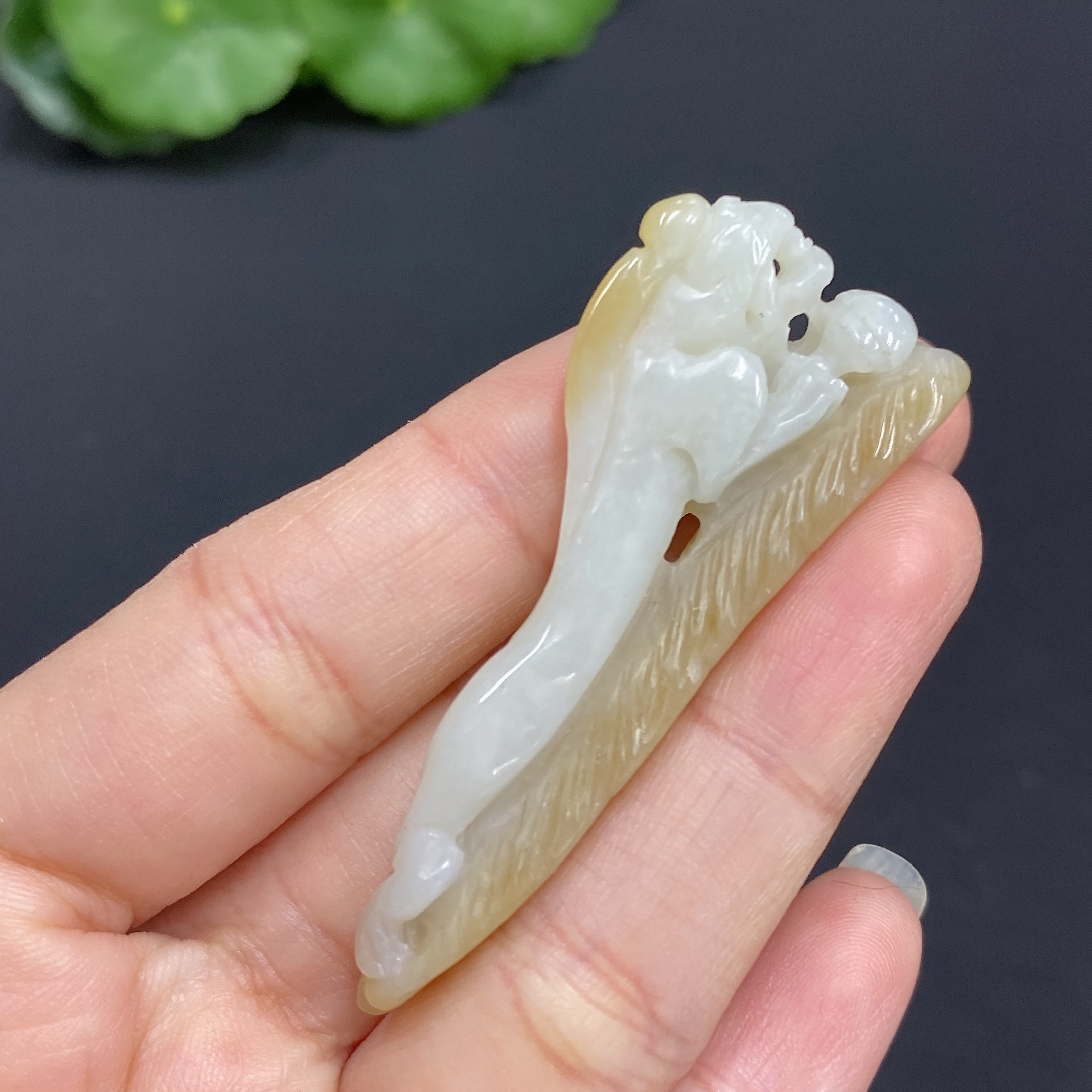 Hetian Jade Pendant, Chi Dragon, Total Weight: Approx. 9.1g