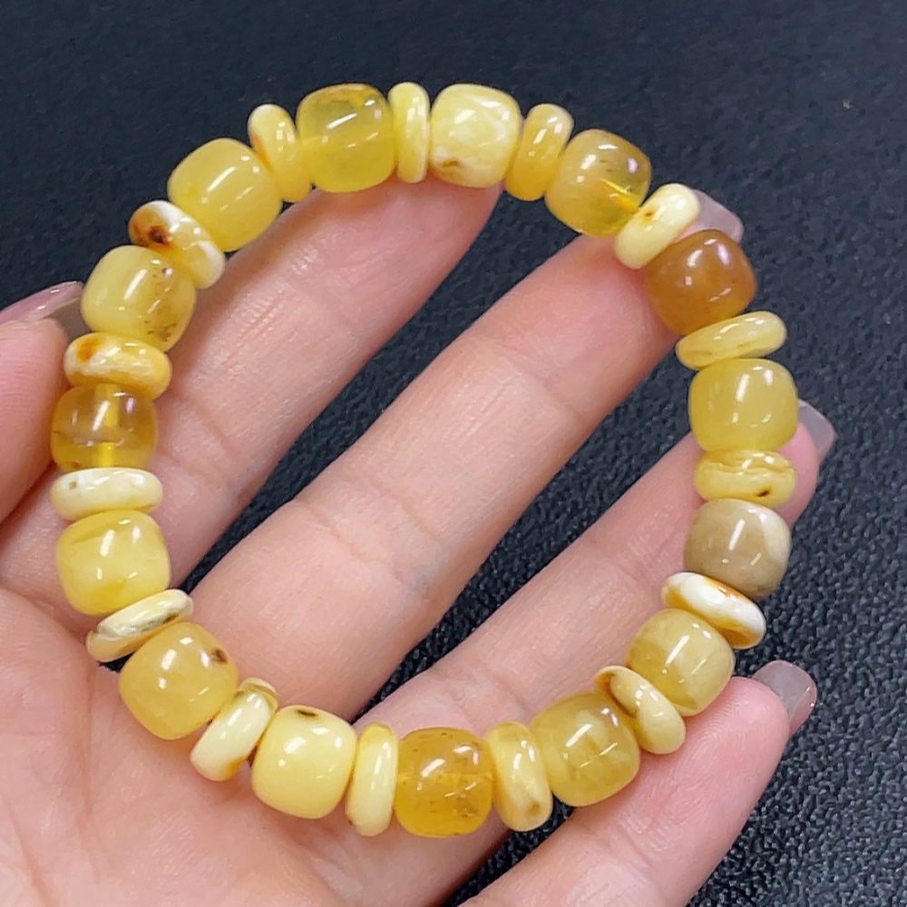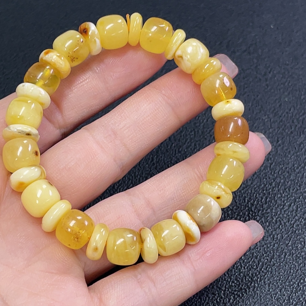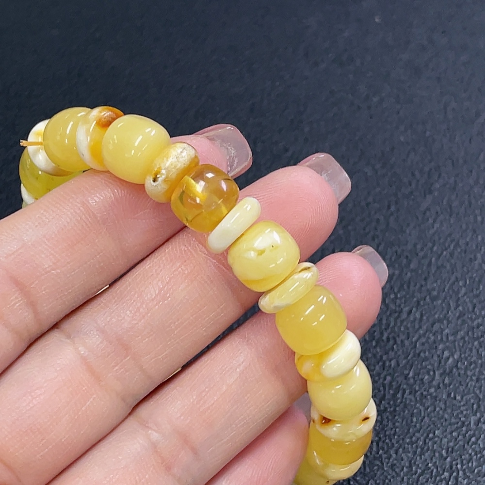 Amber Beeswax Bracelet, Total Weight Approx. 10.97g, Size About 9.2mm