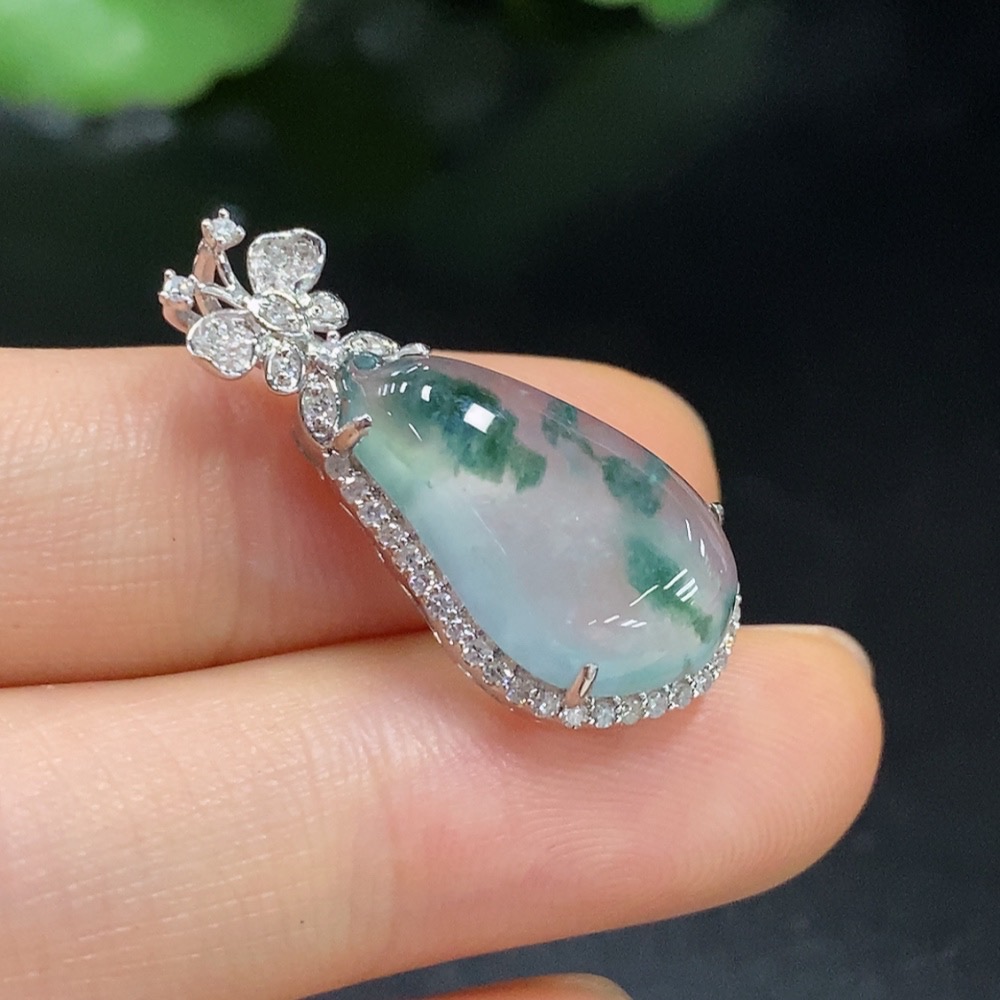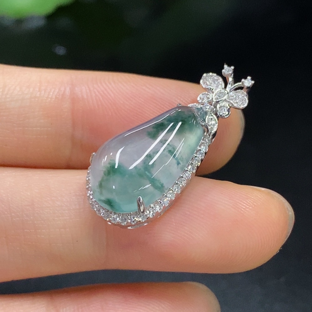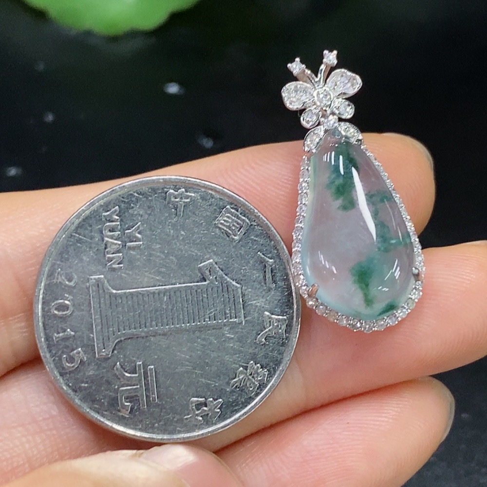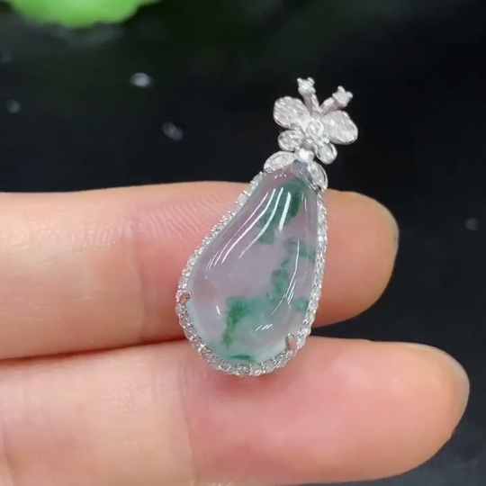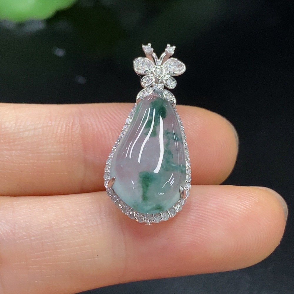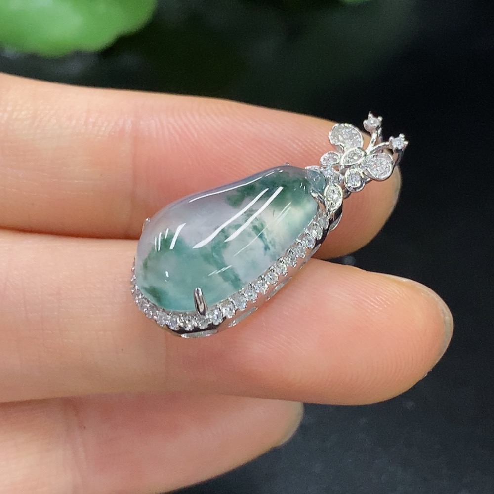 Jadeite Auspicious Gourd Pendant with 18K Gold and Diamond Accents, Total Weight Approx. 3.01g