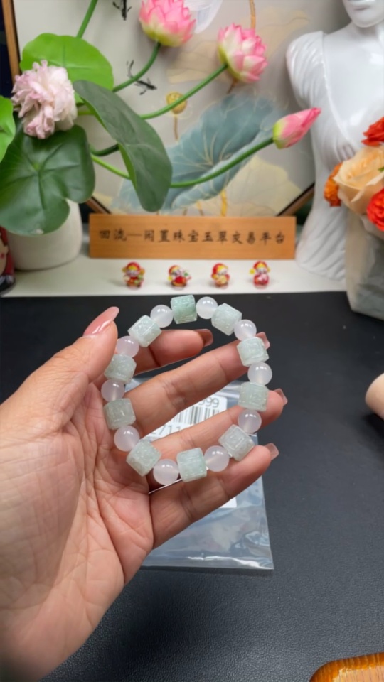 Jadeite Bracelet Approx. 10.5mm Beads Total Weight Approx. 44.25g Non-Grade A Matching Beads
