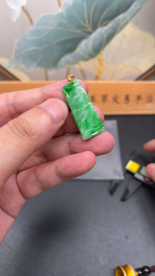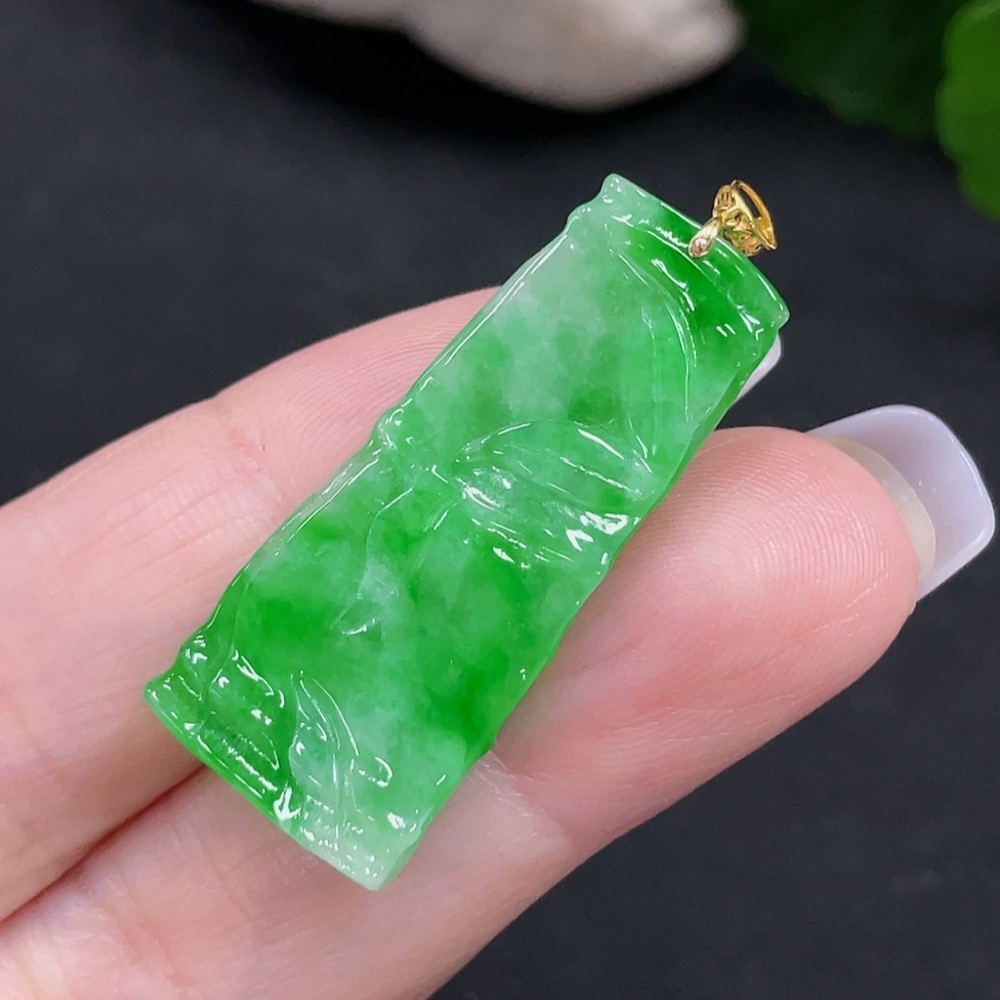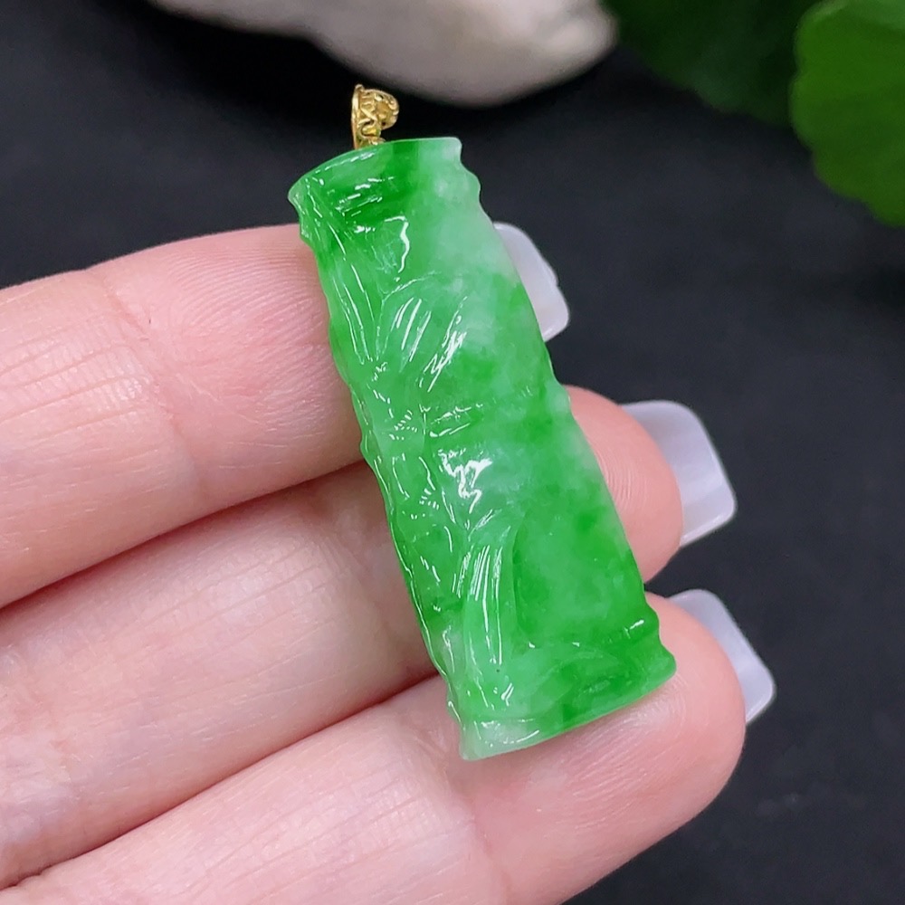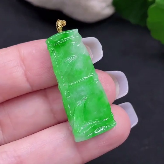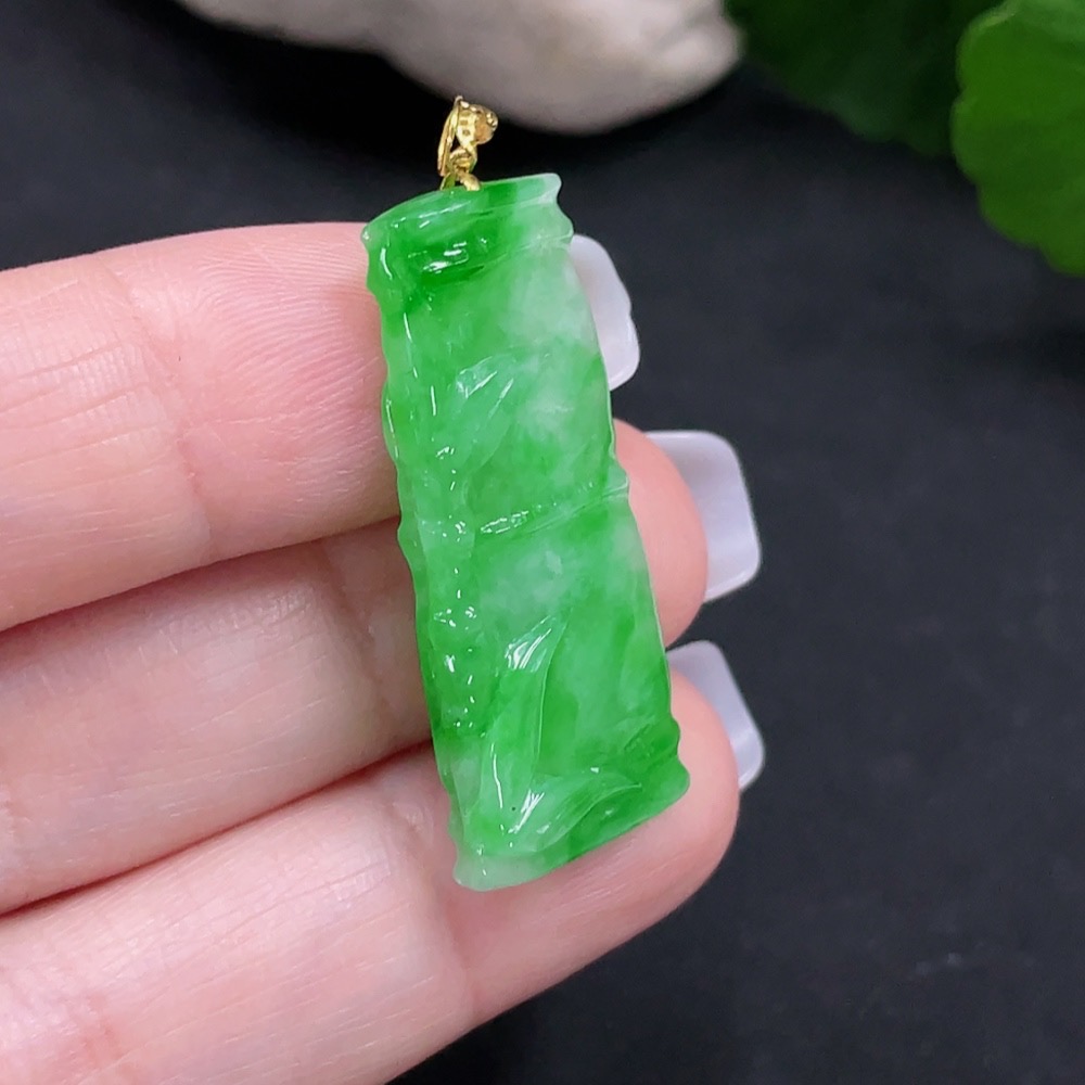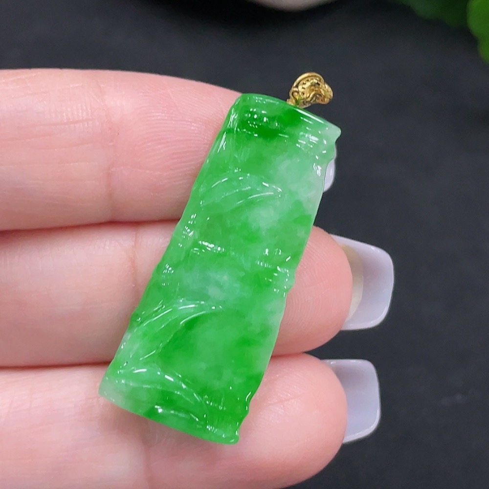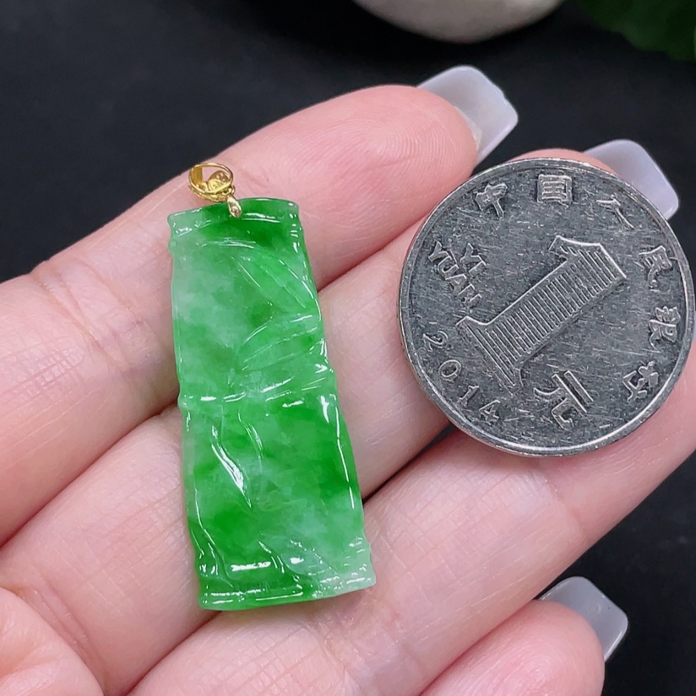 Jadeite Bamboo Pendant with 18K Gold Clasp, Total Weight Approx. 3.5g