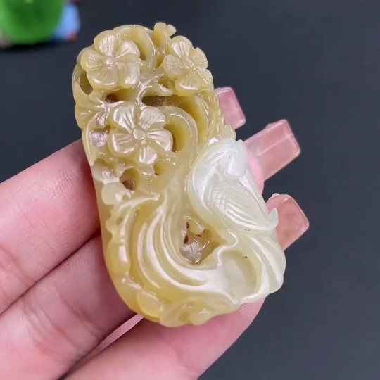 Hetian Jade Pendant "Joy on the Brows" Total Weight Approx. 25.57g