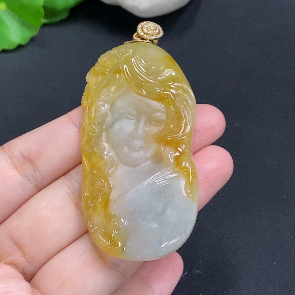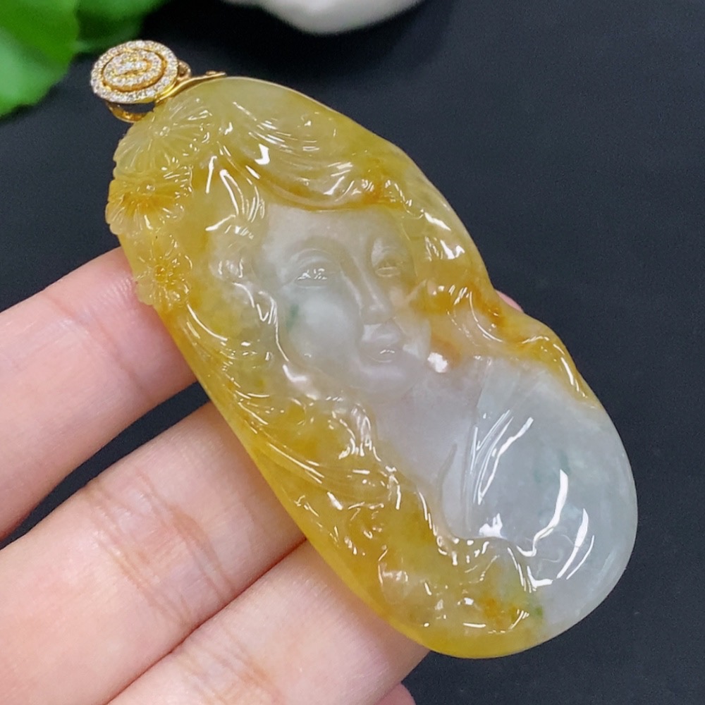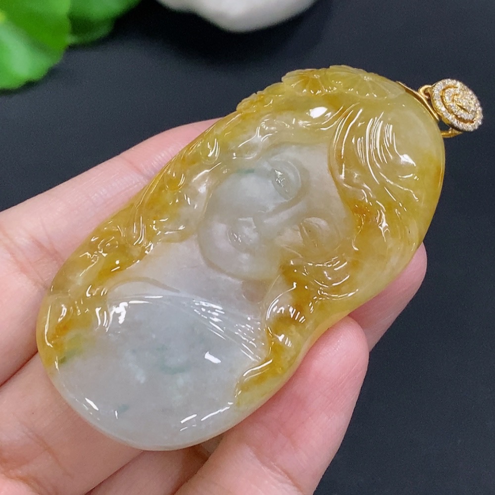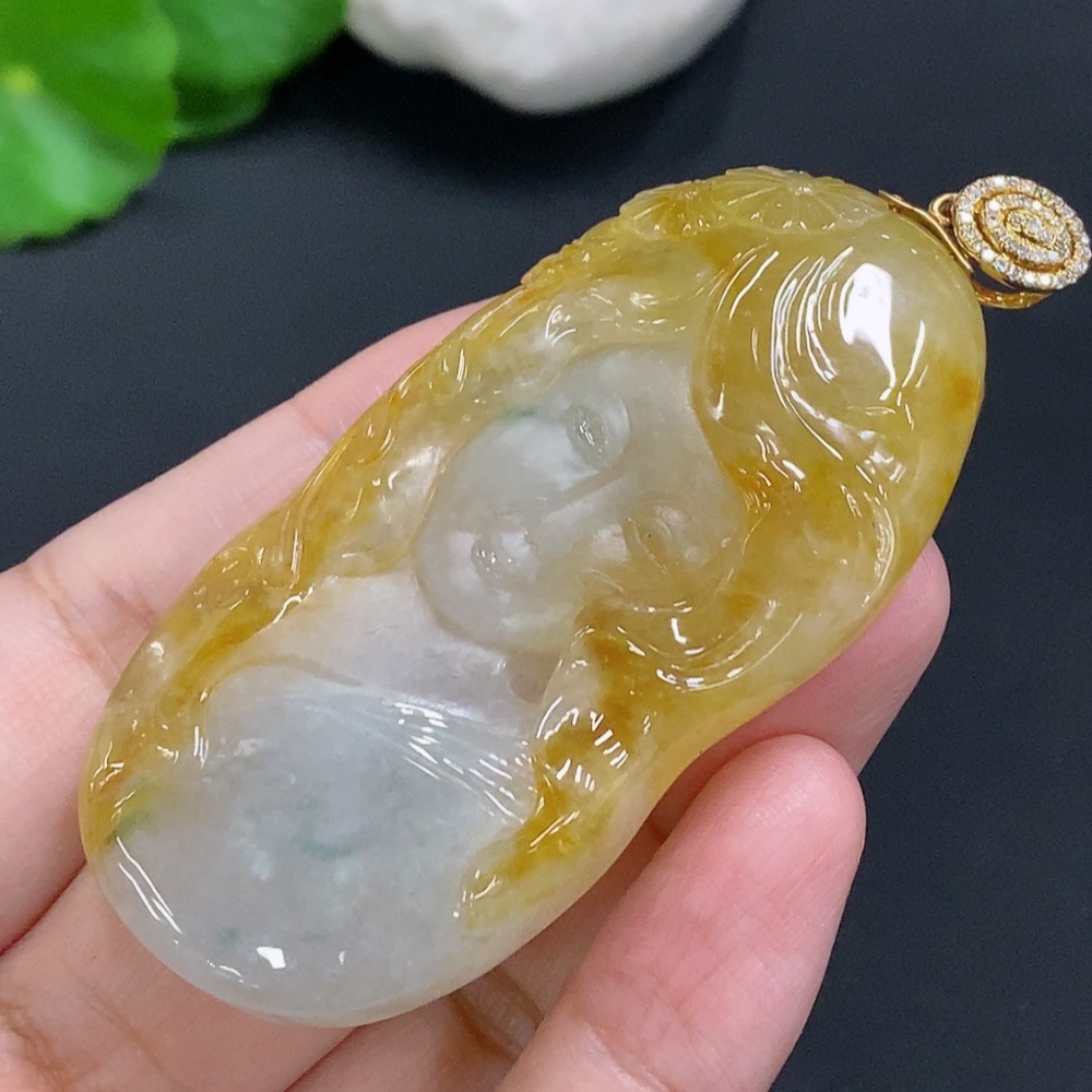 Jadeite Pendant with 18K Gold Clasp, Total Weight Approx. 35.3g