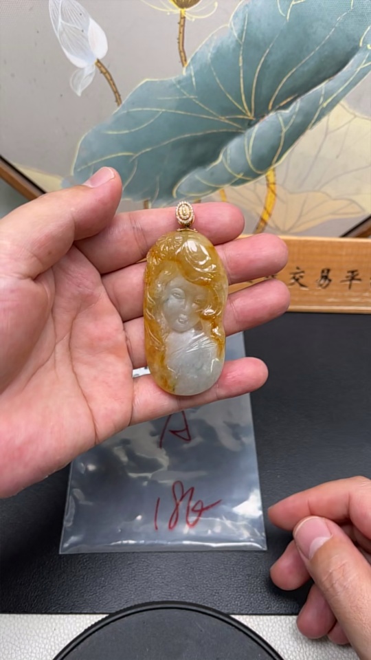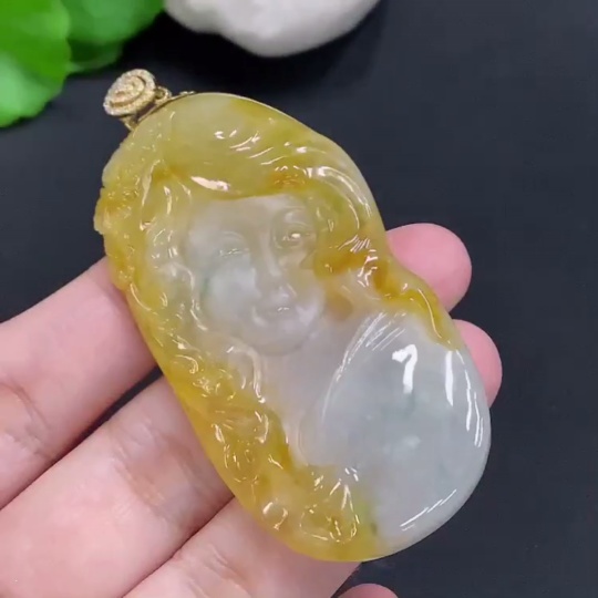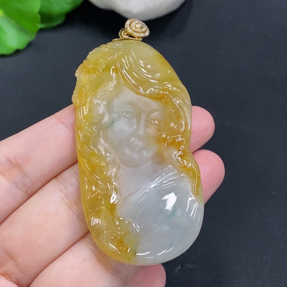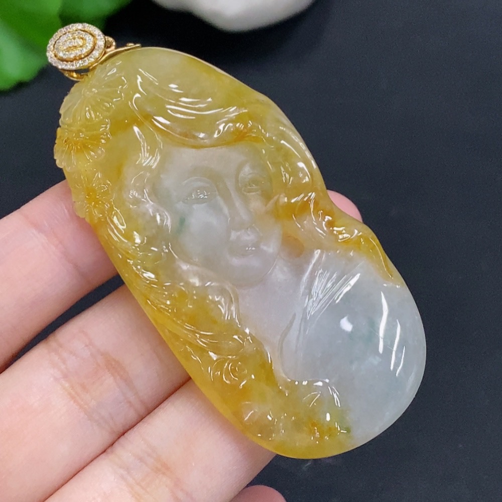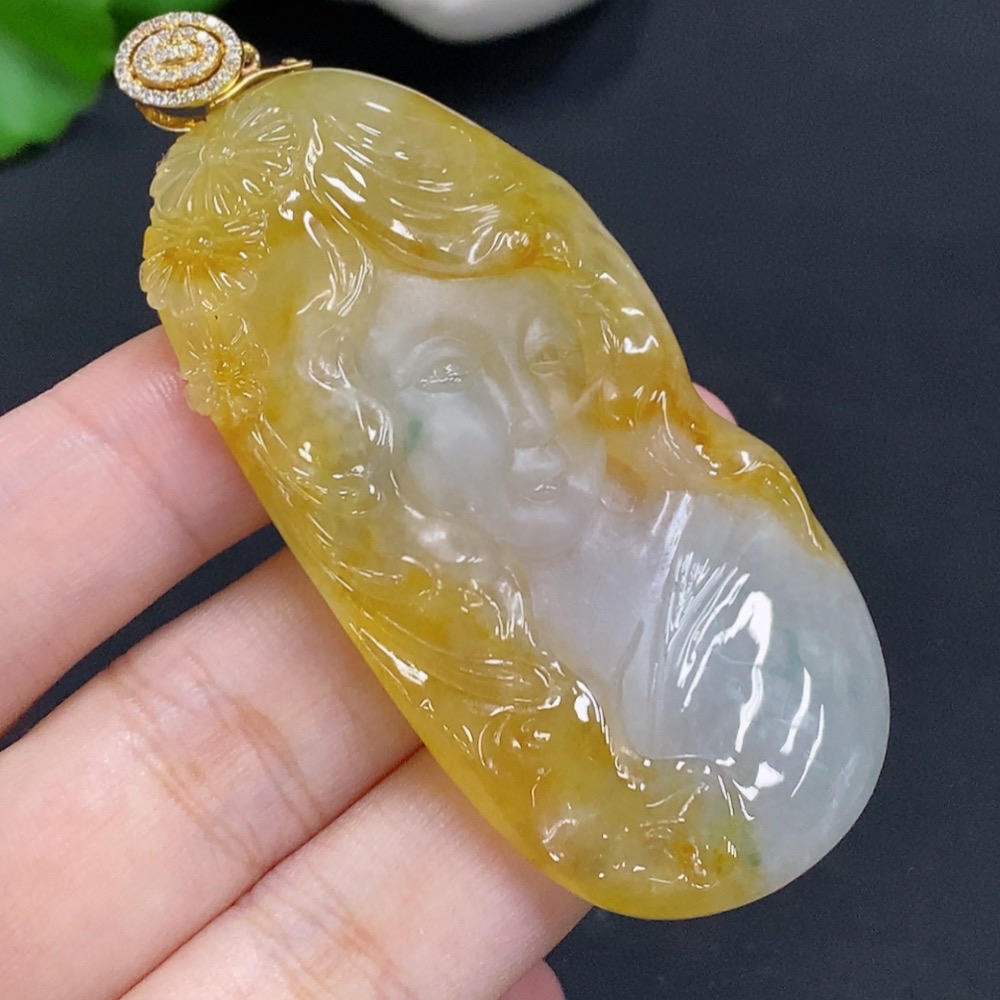Jadeite Pendant with 18K Gold Clasp, Total Weight Approx. 35.3g