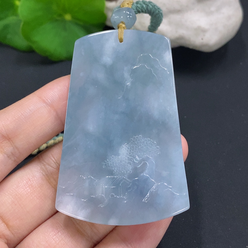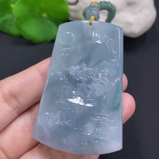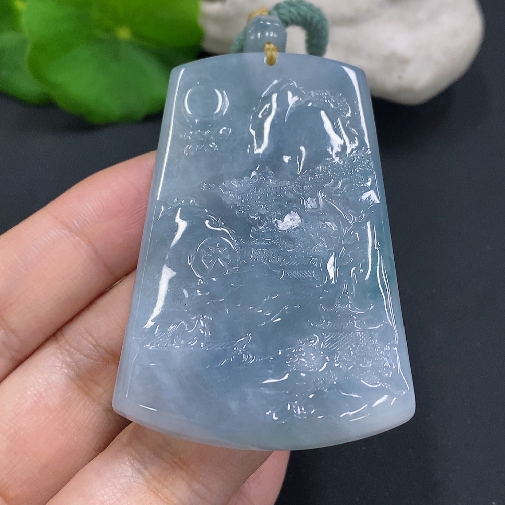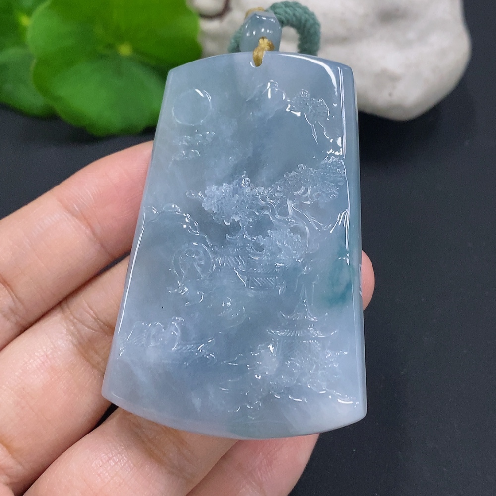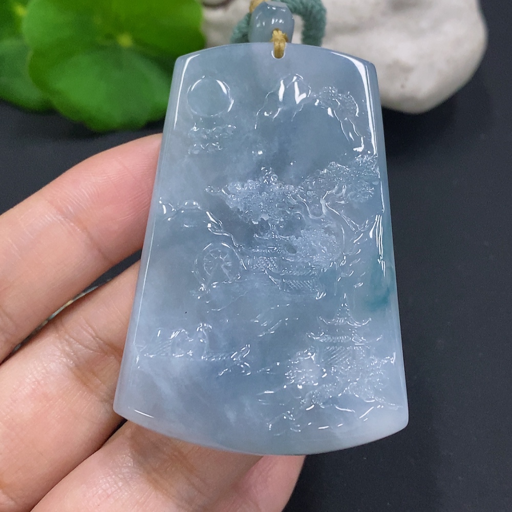 Jadeite Landscape Pendant (Total Weight with Rope: Approx. 49.8g)
