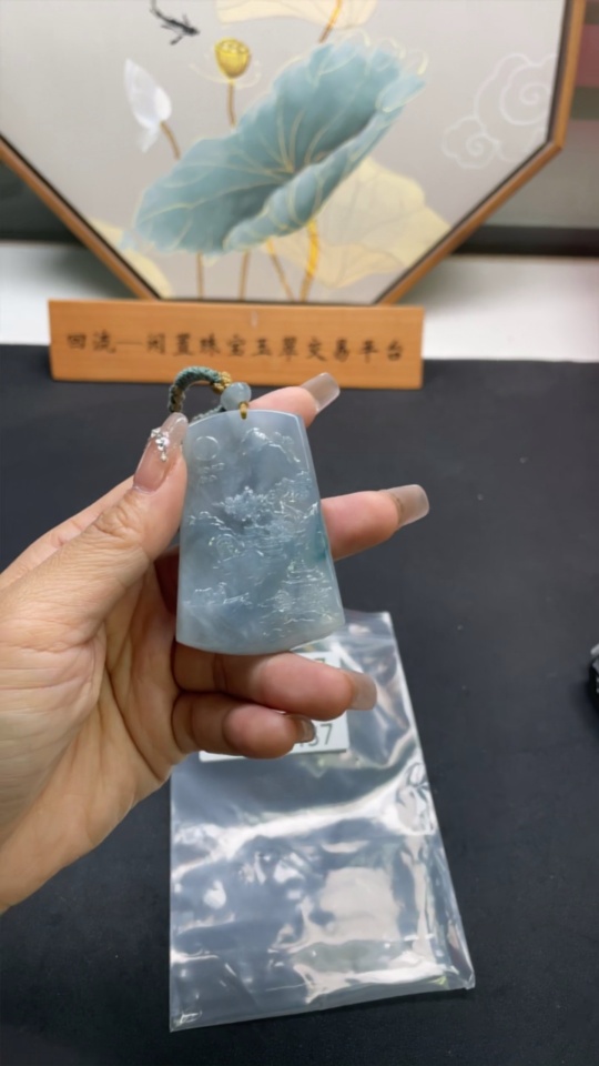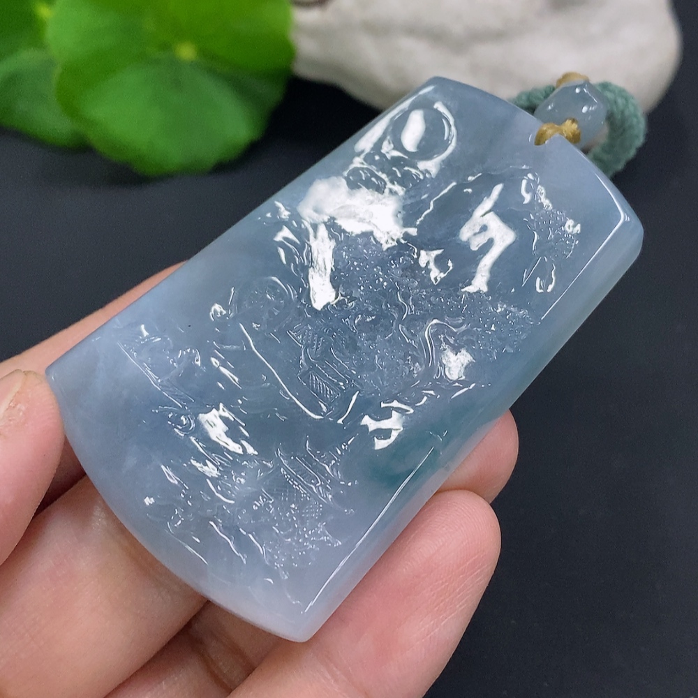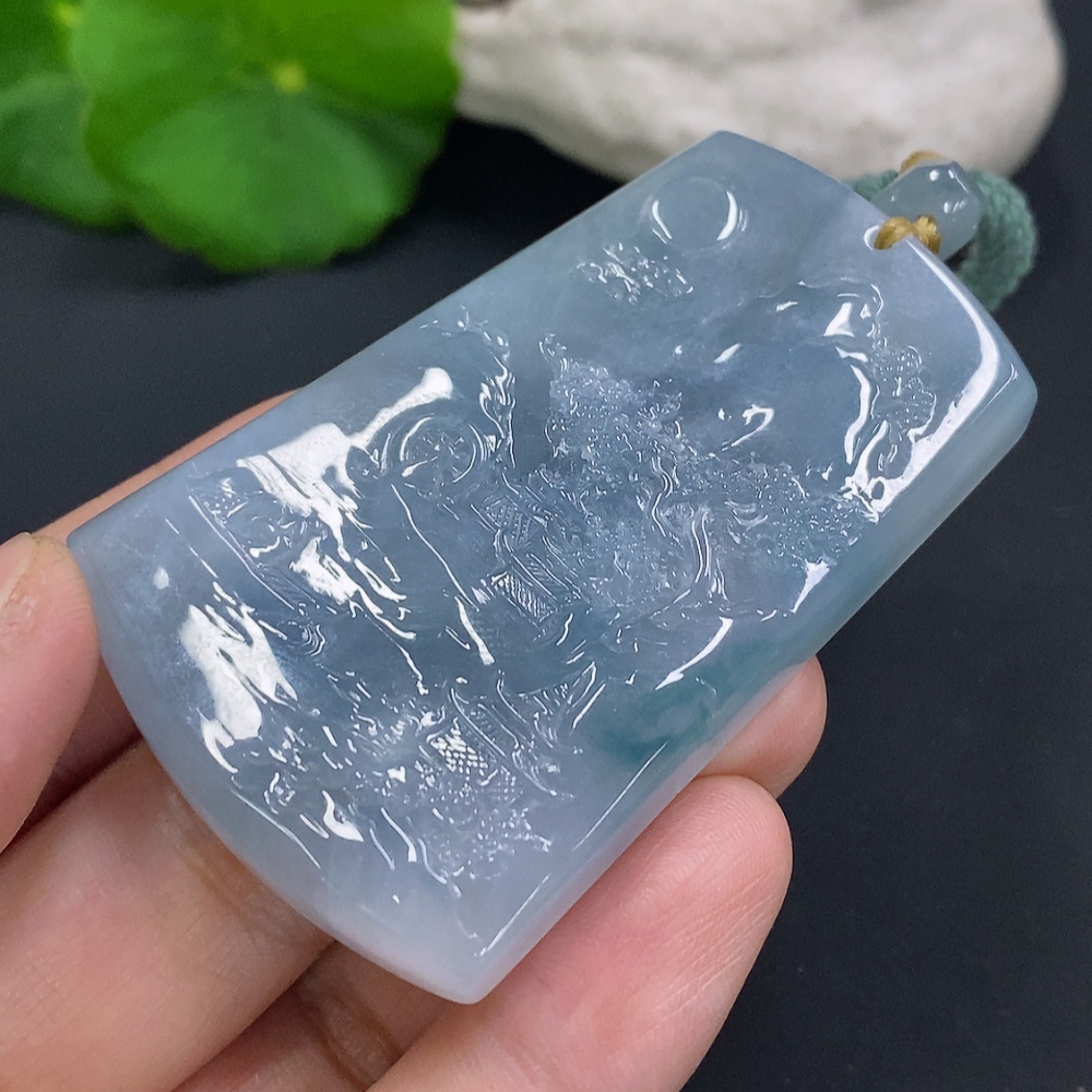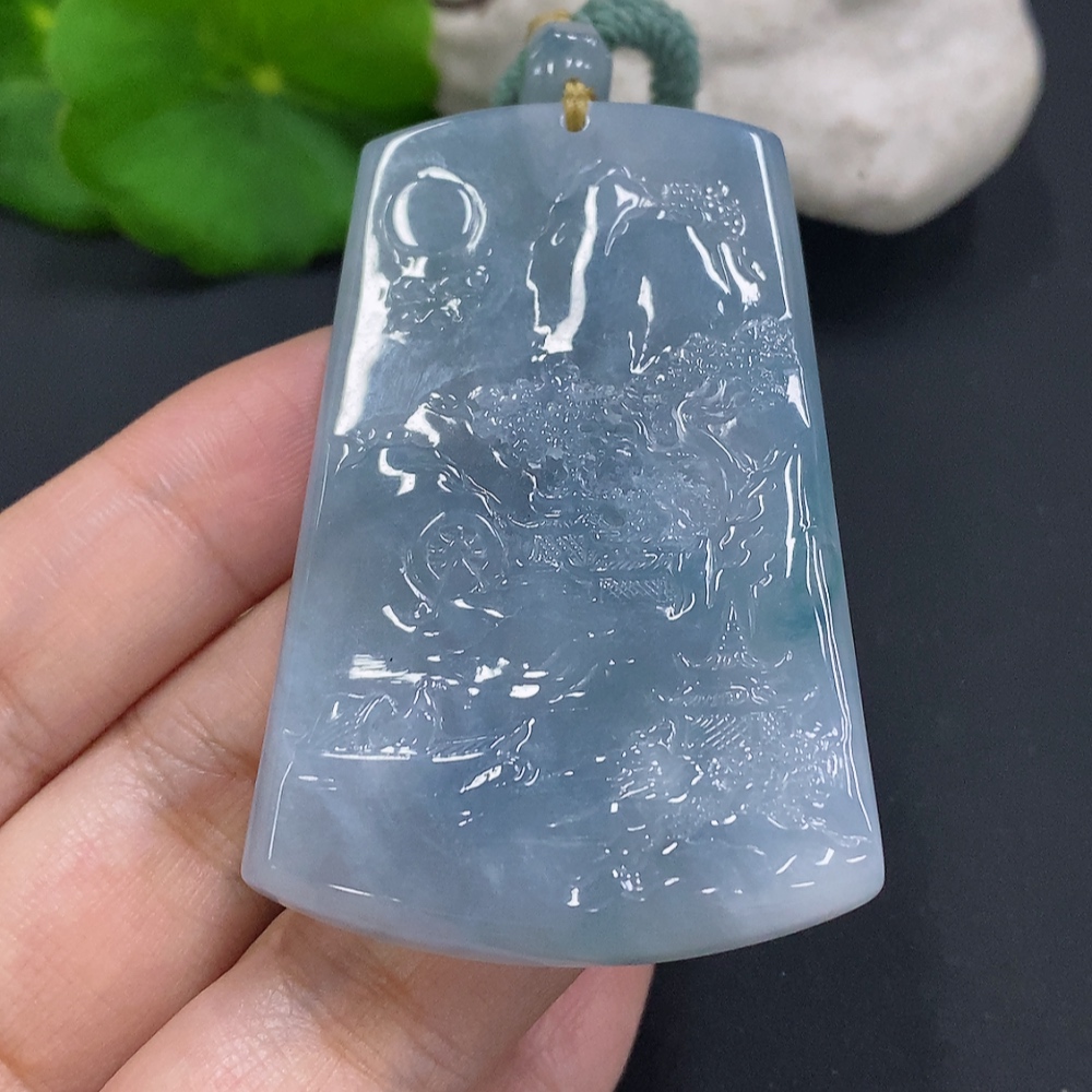 Jadeite Landscape Pendant (Total Weight with Rope: Approx. 49.8g)
