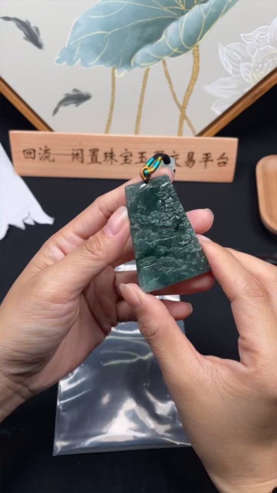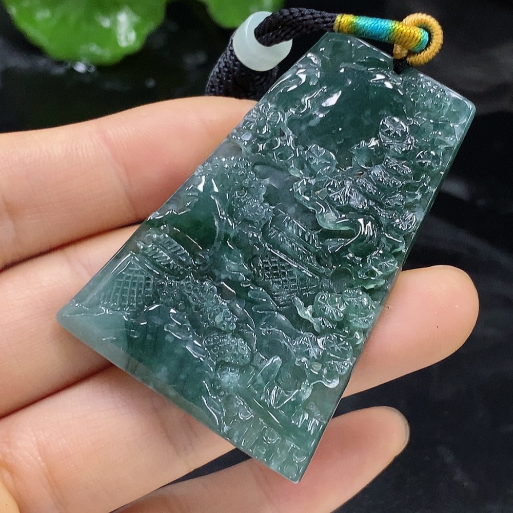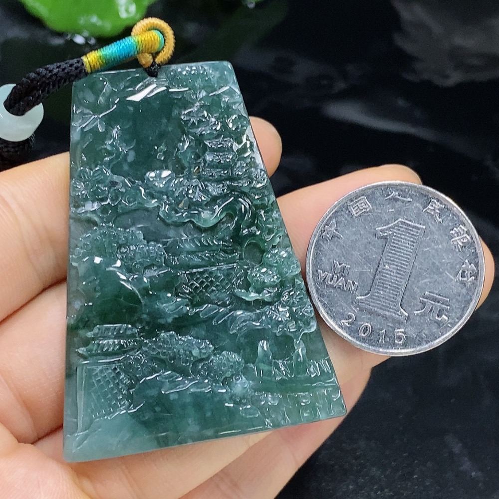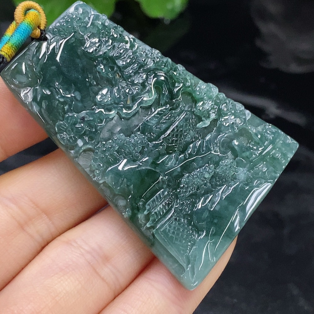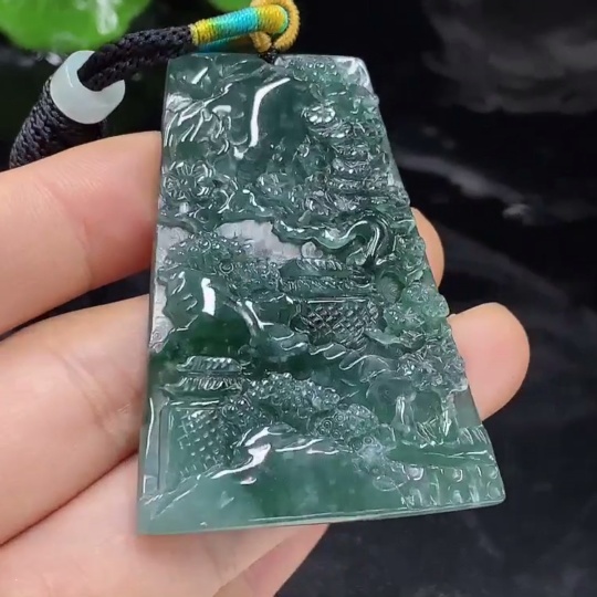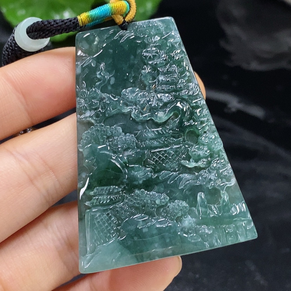 Jadeite Landscape Pendant Total Weight Approx. 24.39g (including rope)