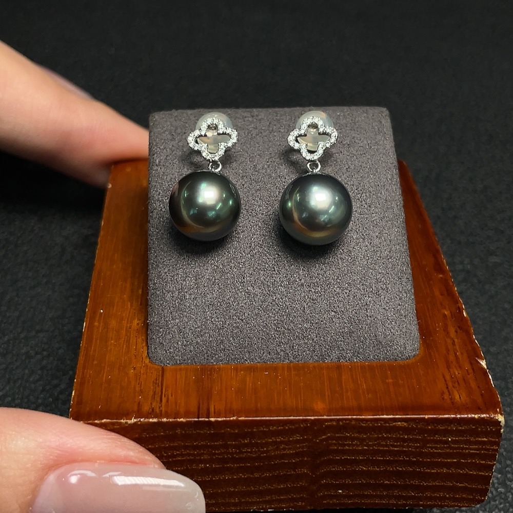 Seawater Pearl Earrings Set in 18K Gold, Approx. 9.6mm, Total Weight Approx. 3.46g, Color Origin Undetermined
