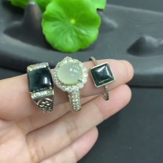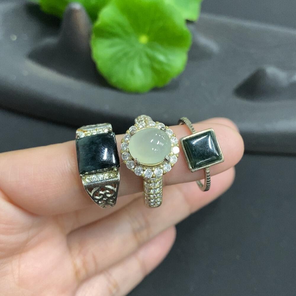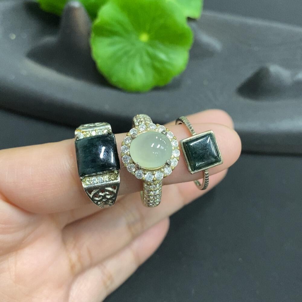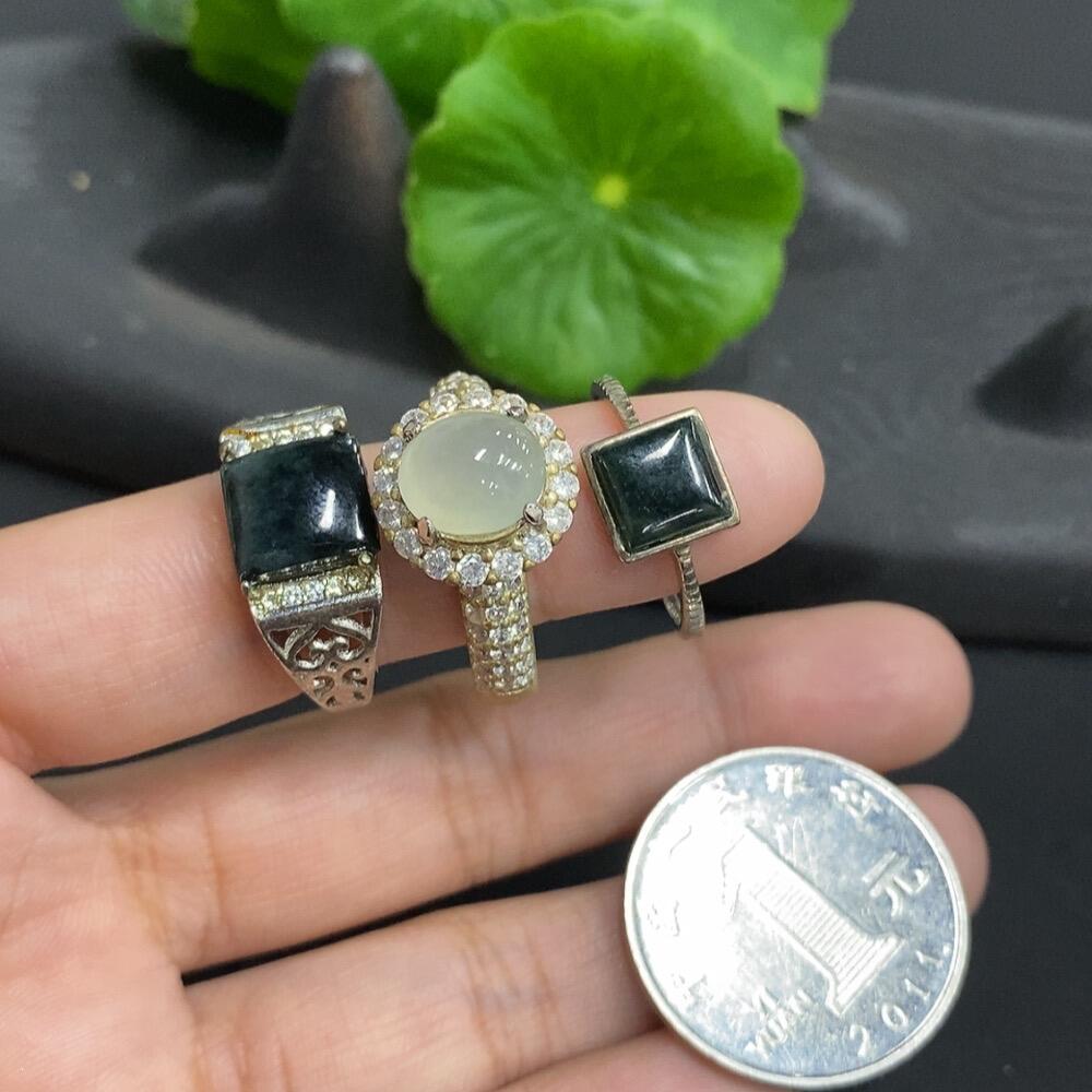 Jadeite cabochon ring + cabochon, some with fissures, adjustable size, non-gold setting