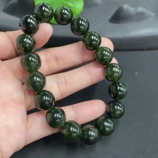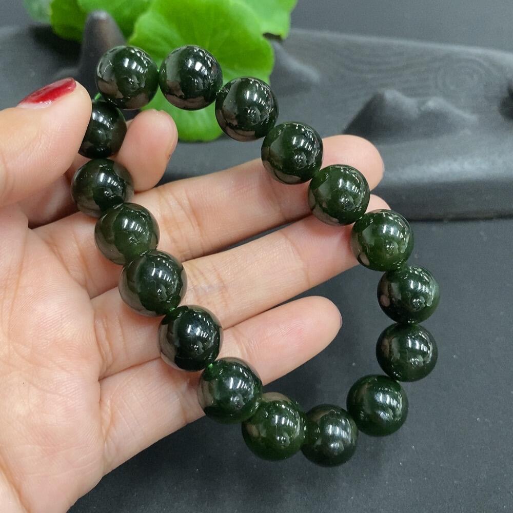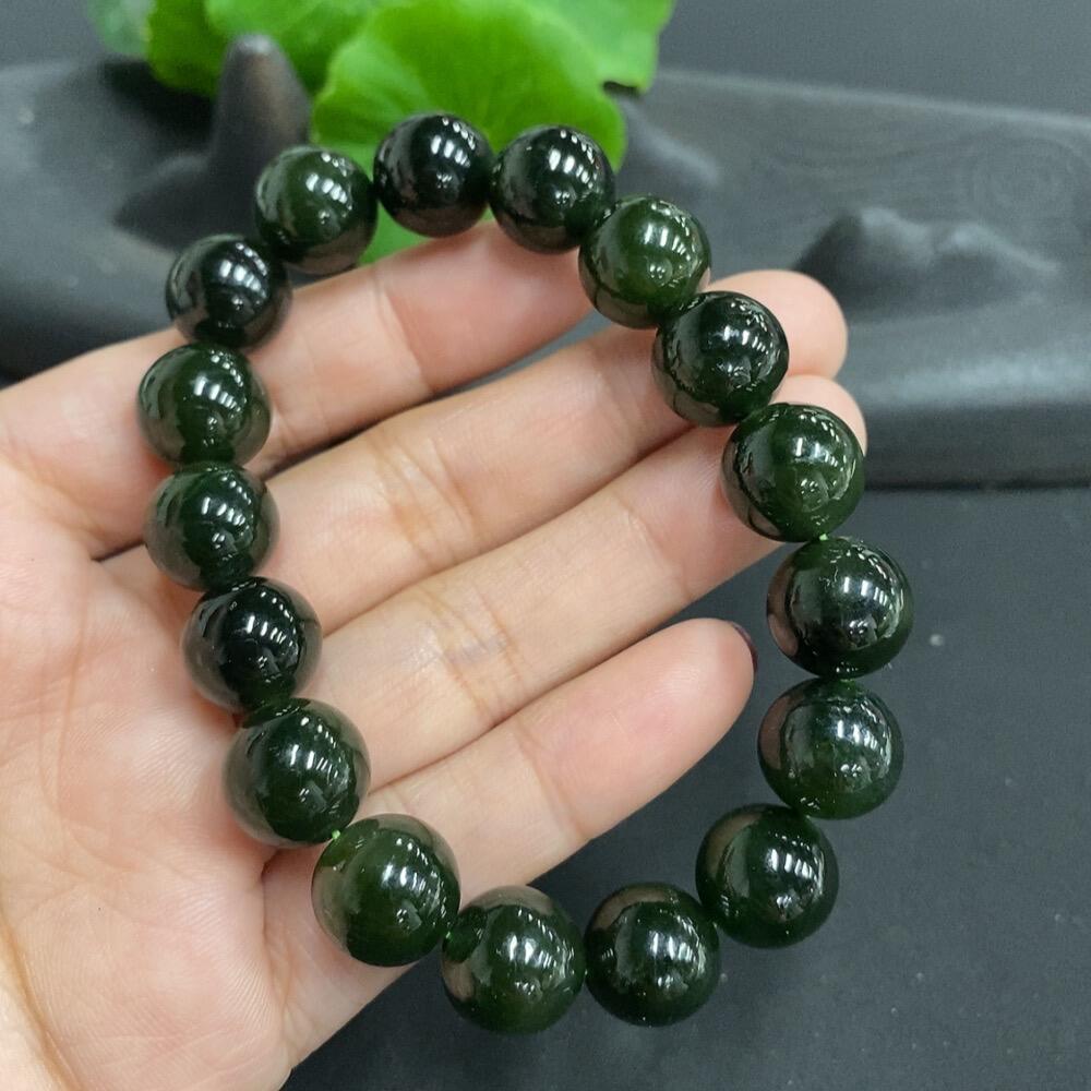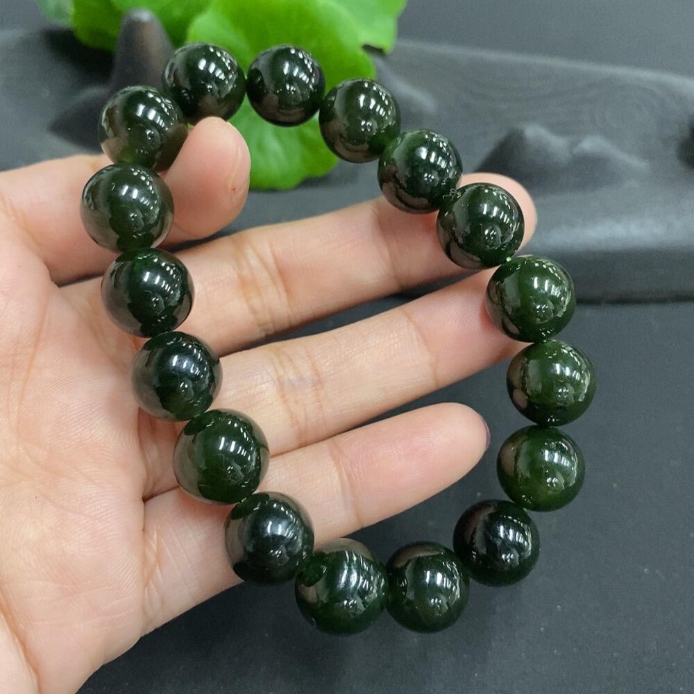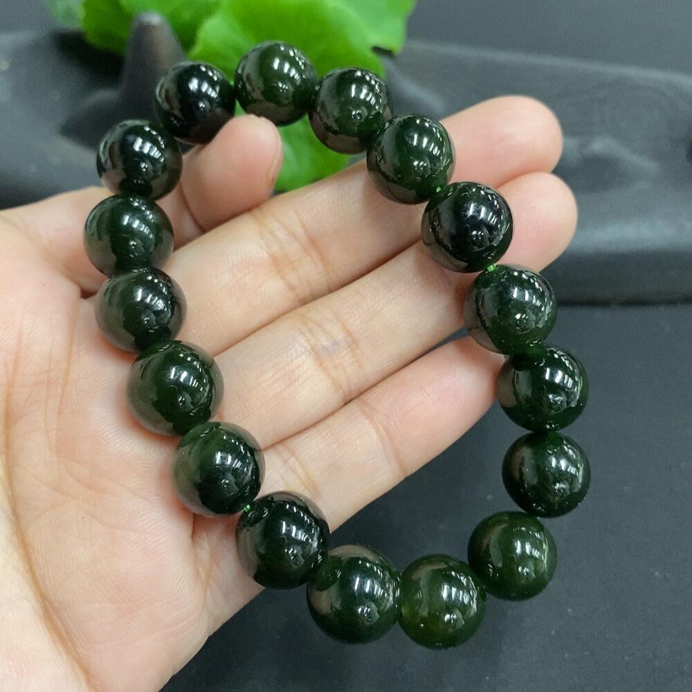 Hetian Jade Bead Necklace with Minor Cracks on Individual Beads, Total Weight 38.5g, Size 11.5mm