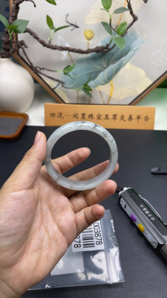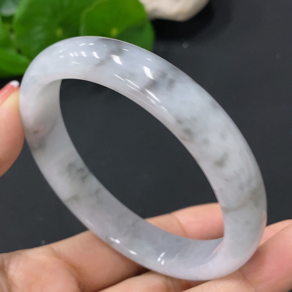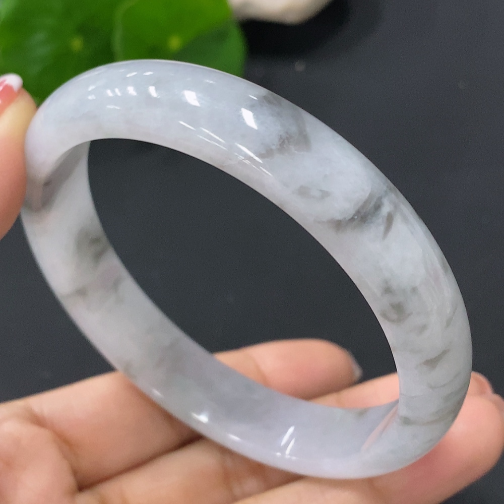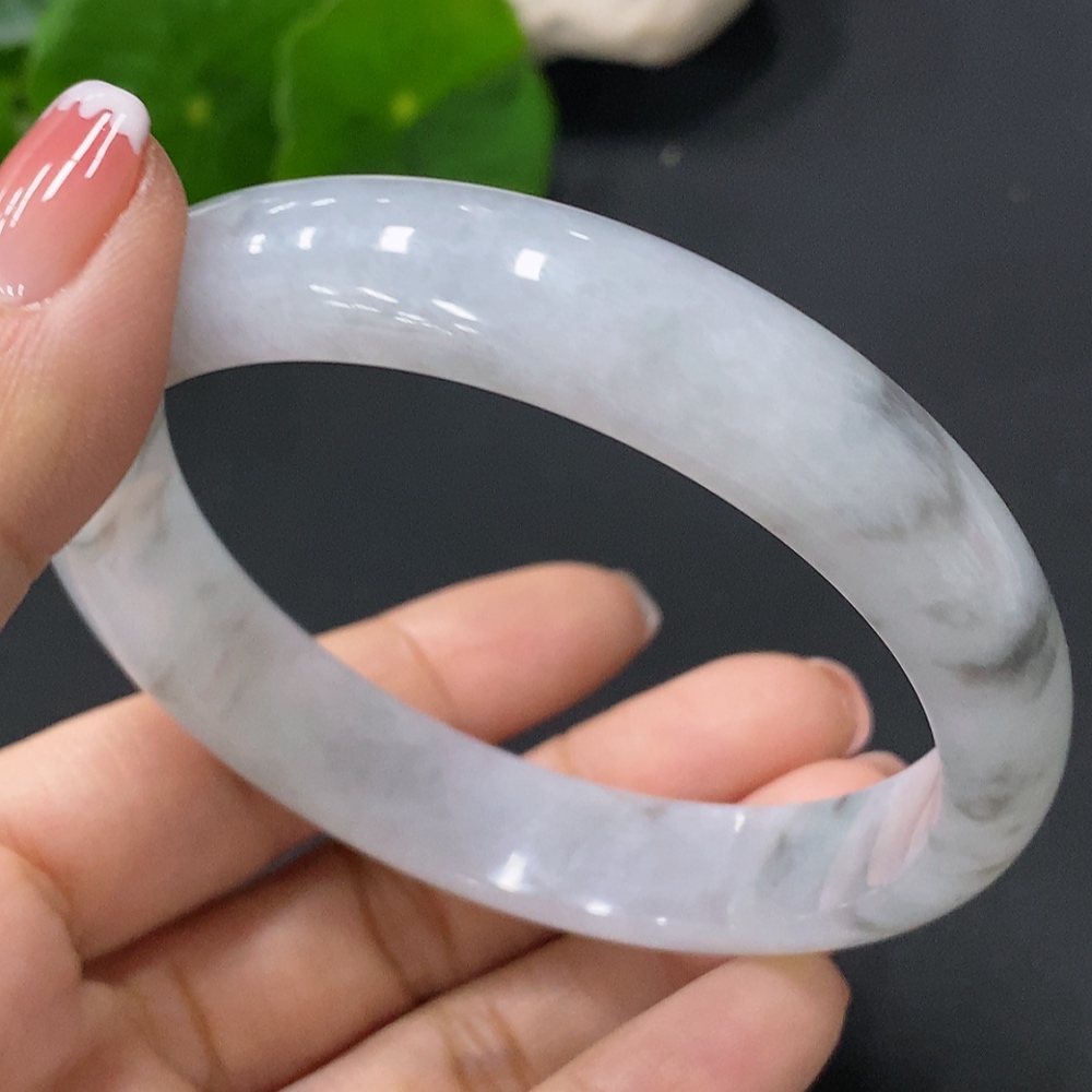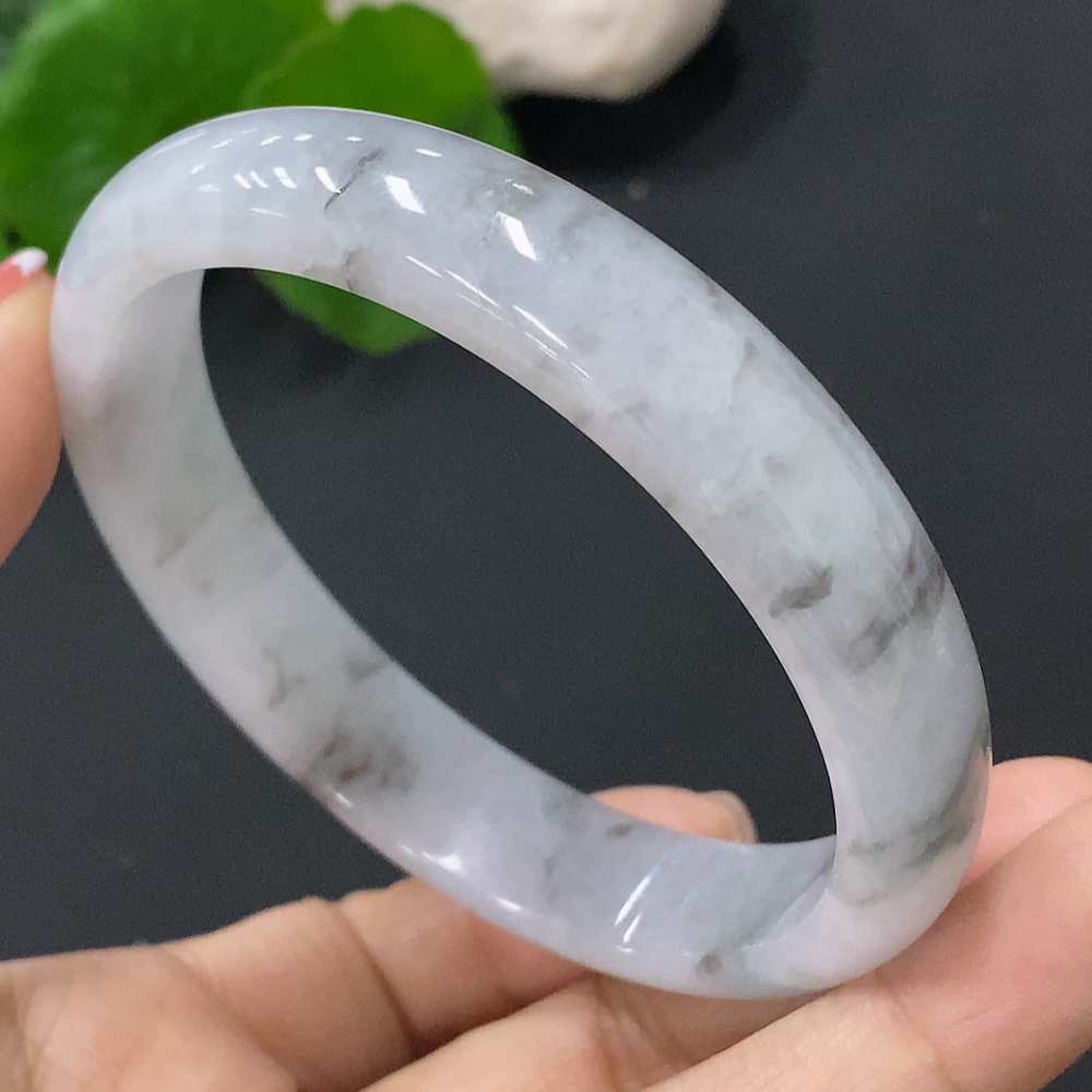 Jadeite Round Bangle with Other Mineral Components, Total Weight Approx. 44.74g, Size 58