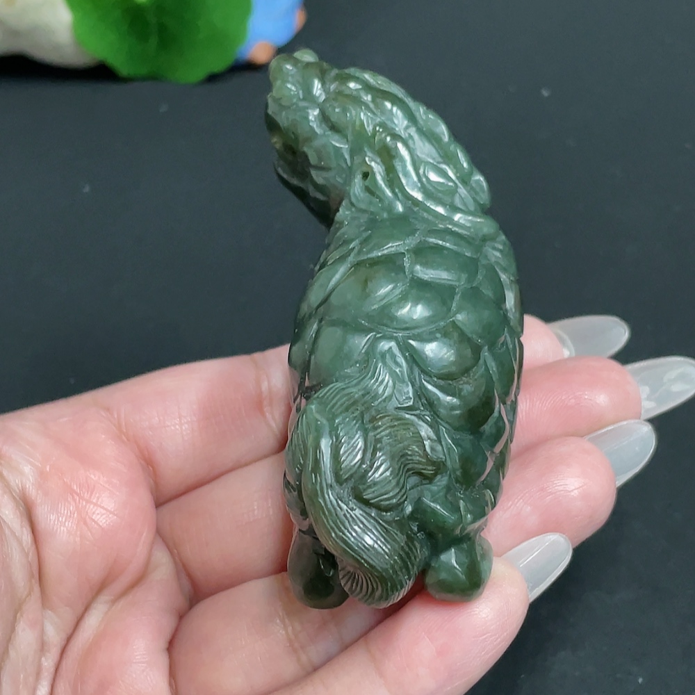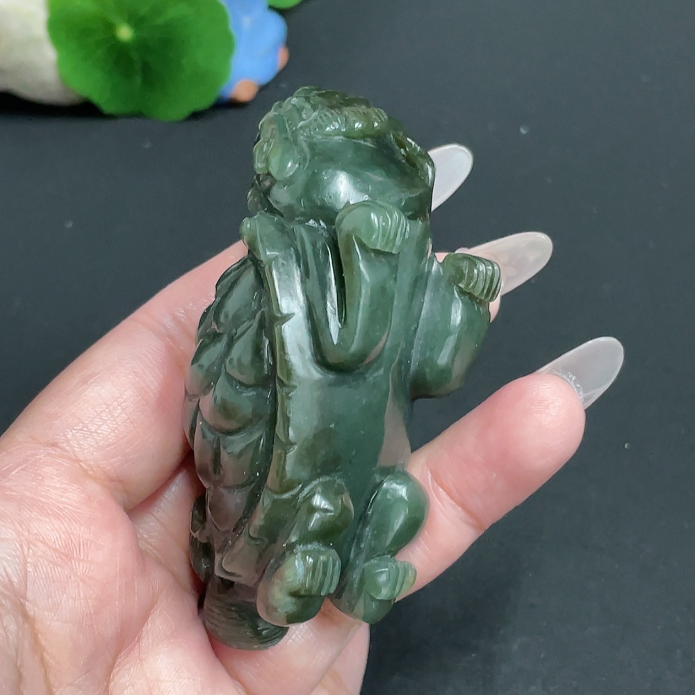 Hetian Jade Handheld Piece, Dragon Turtle, Total Weight Approx. 130g