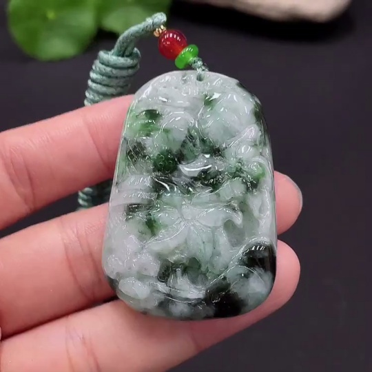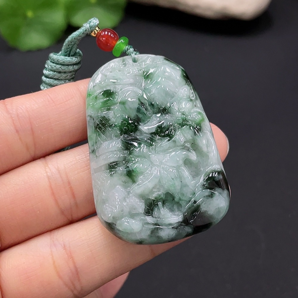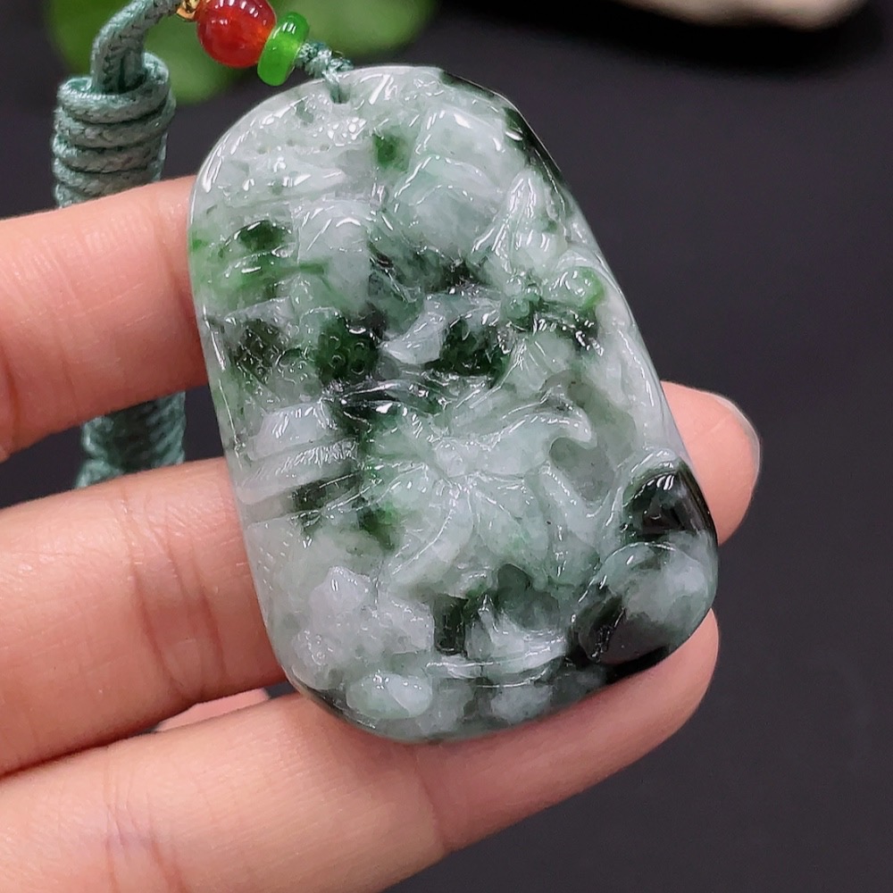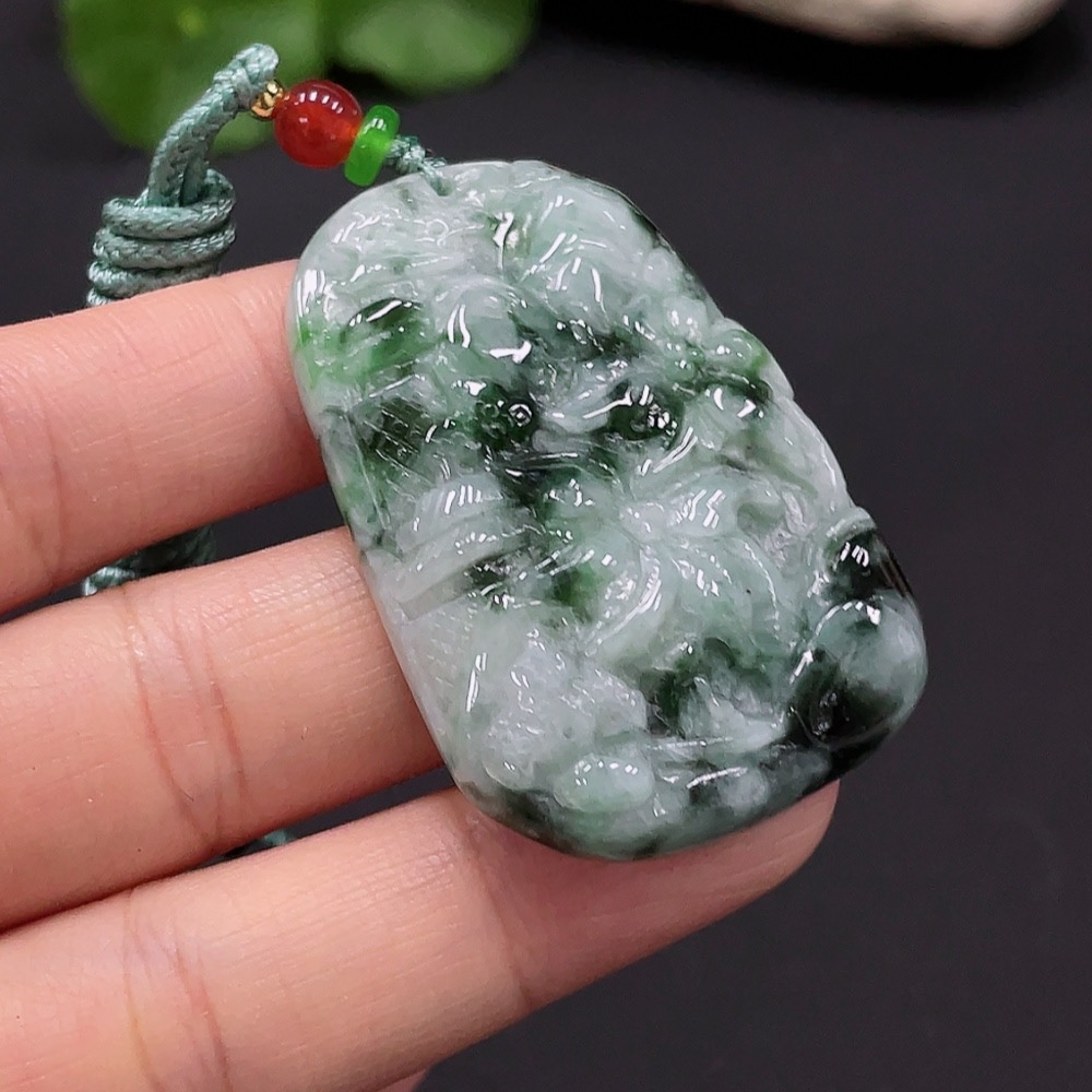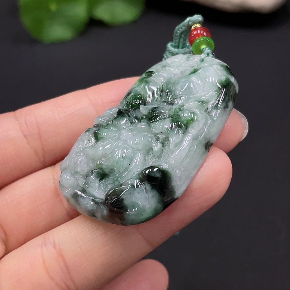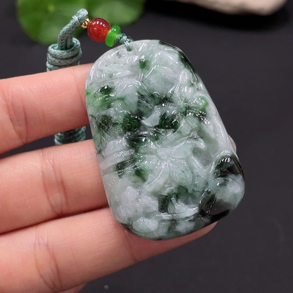 Jadeite Landscape Pendant Total Weight Approx. 30.36g Containing Other Mineral Components with Non-Grade A Beads