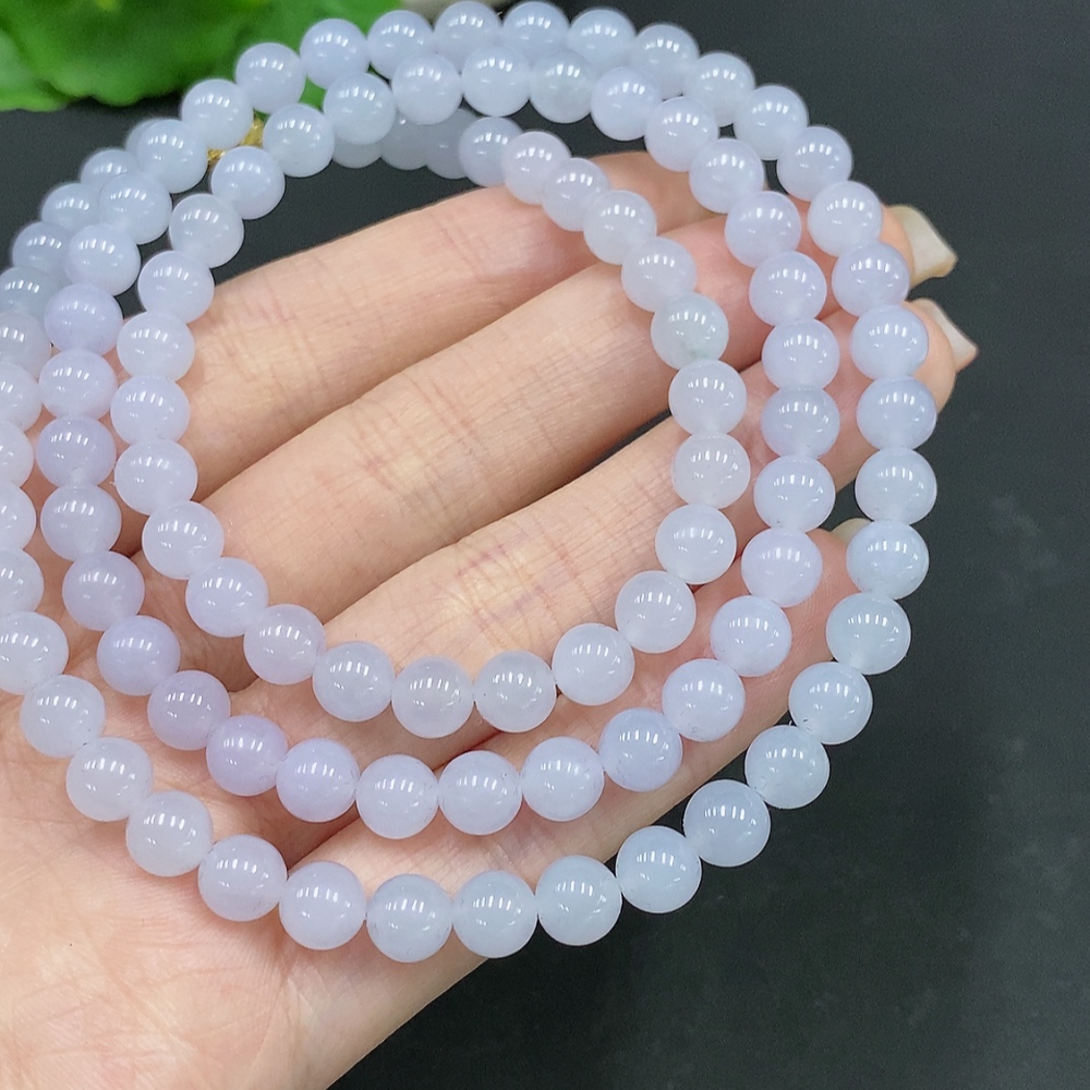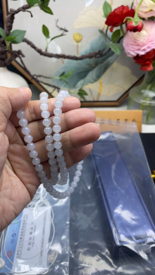 Jadeite Beaded Necklace Approx. 6.4mm Non-Gold Total Weight Approx. 50.6g