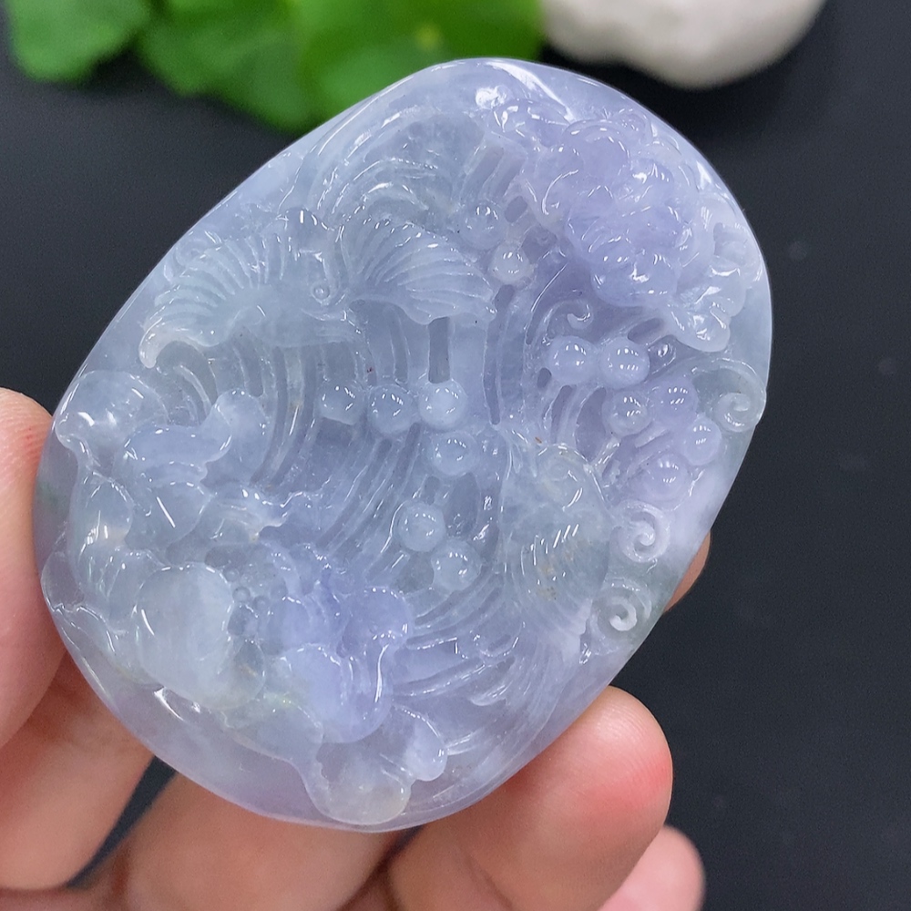 Jadeite Blossom and Prosperity Pendant, Total Weight Approximately 50g