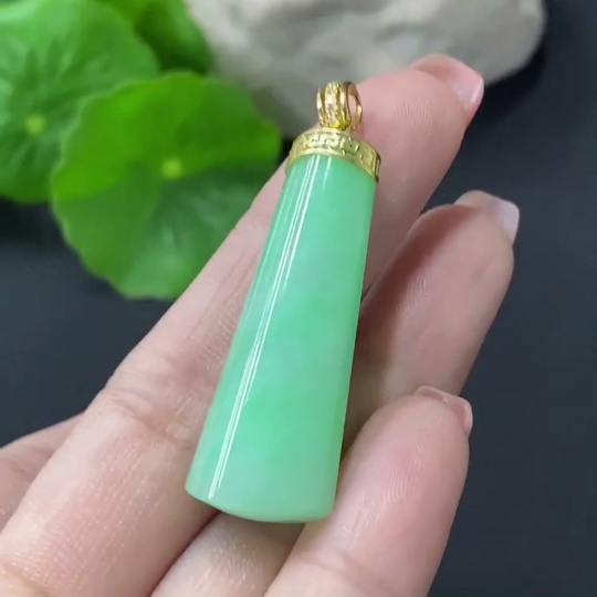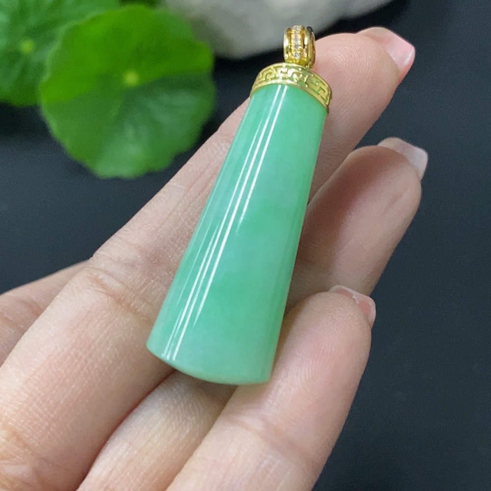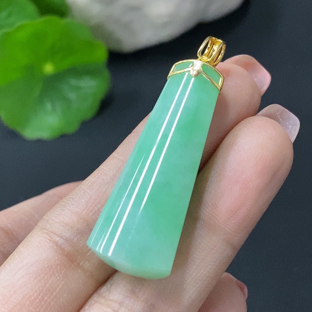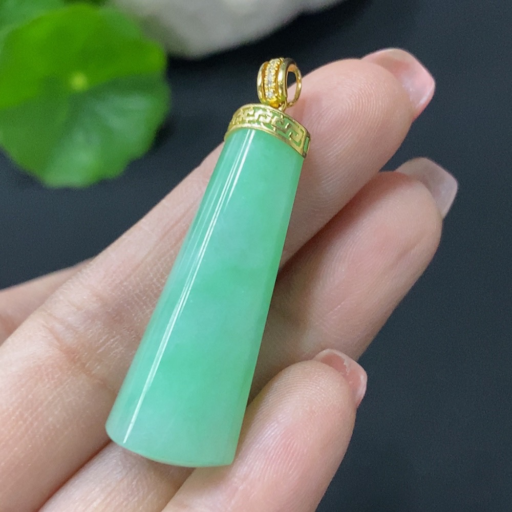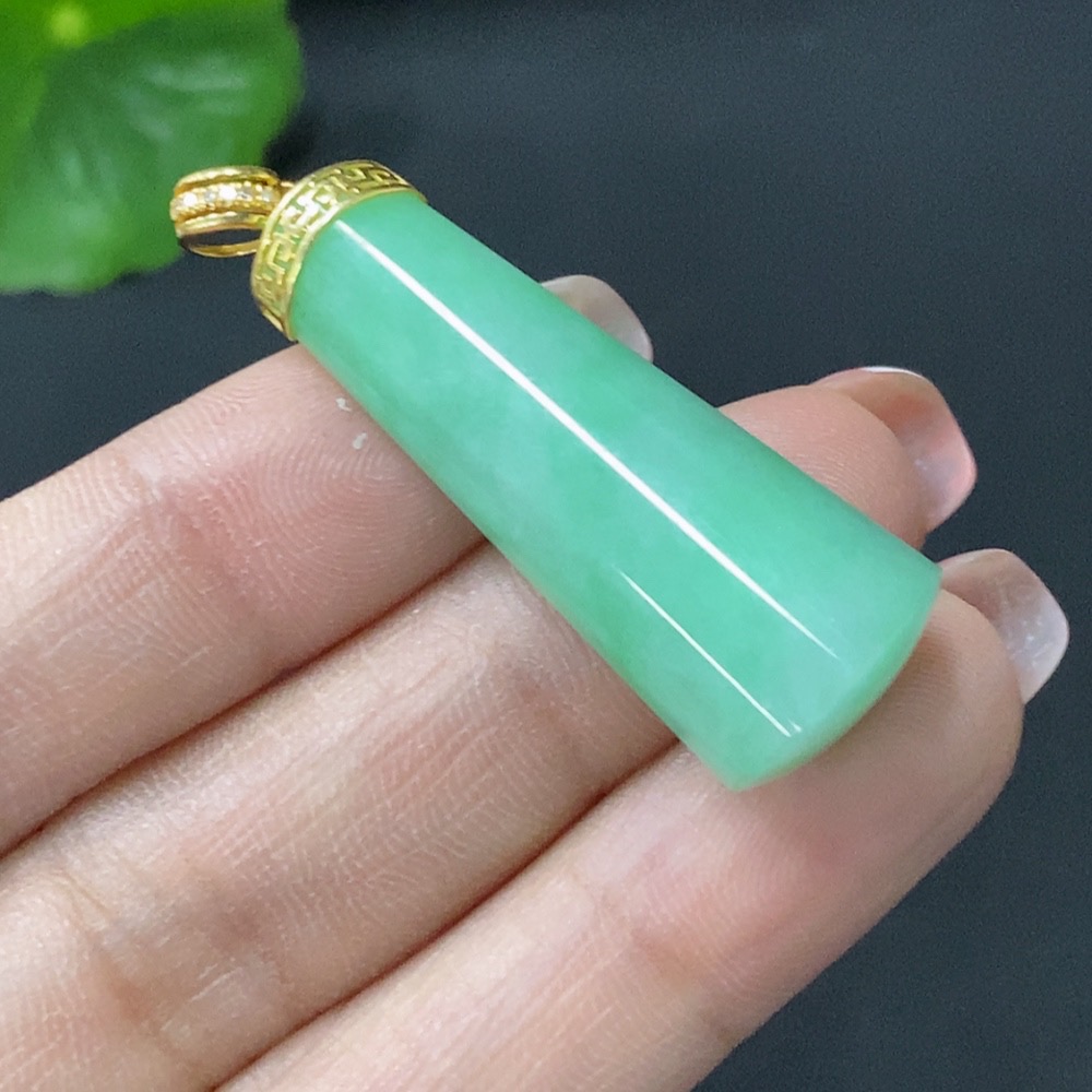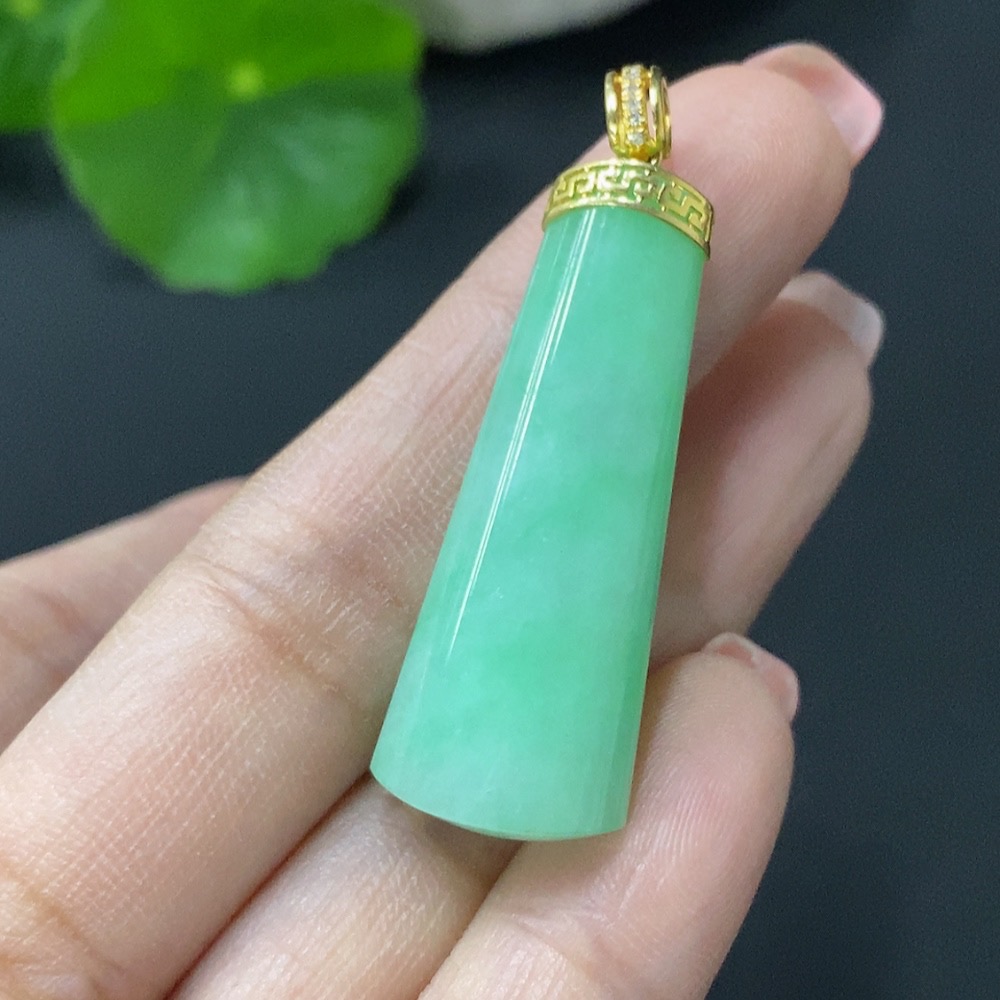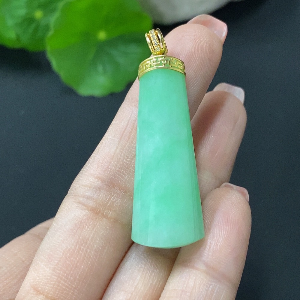 Jadeite Plain Pendant with 18K Gold Total Weight Approx. 7.3g (Diamond Accented)