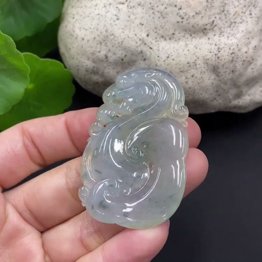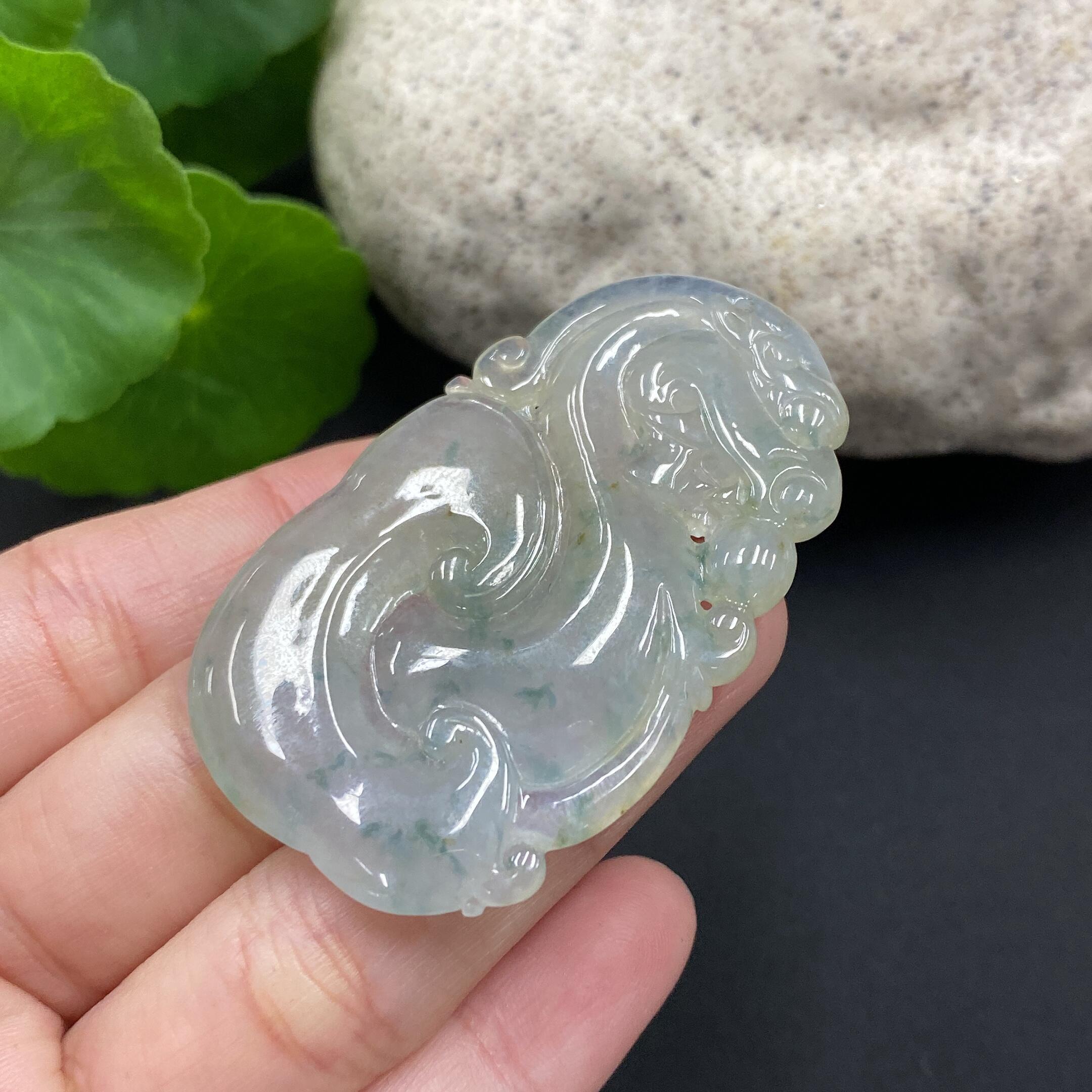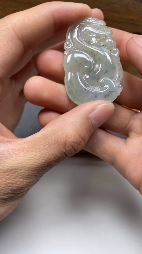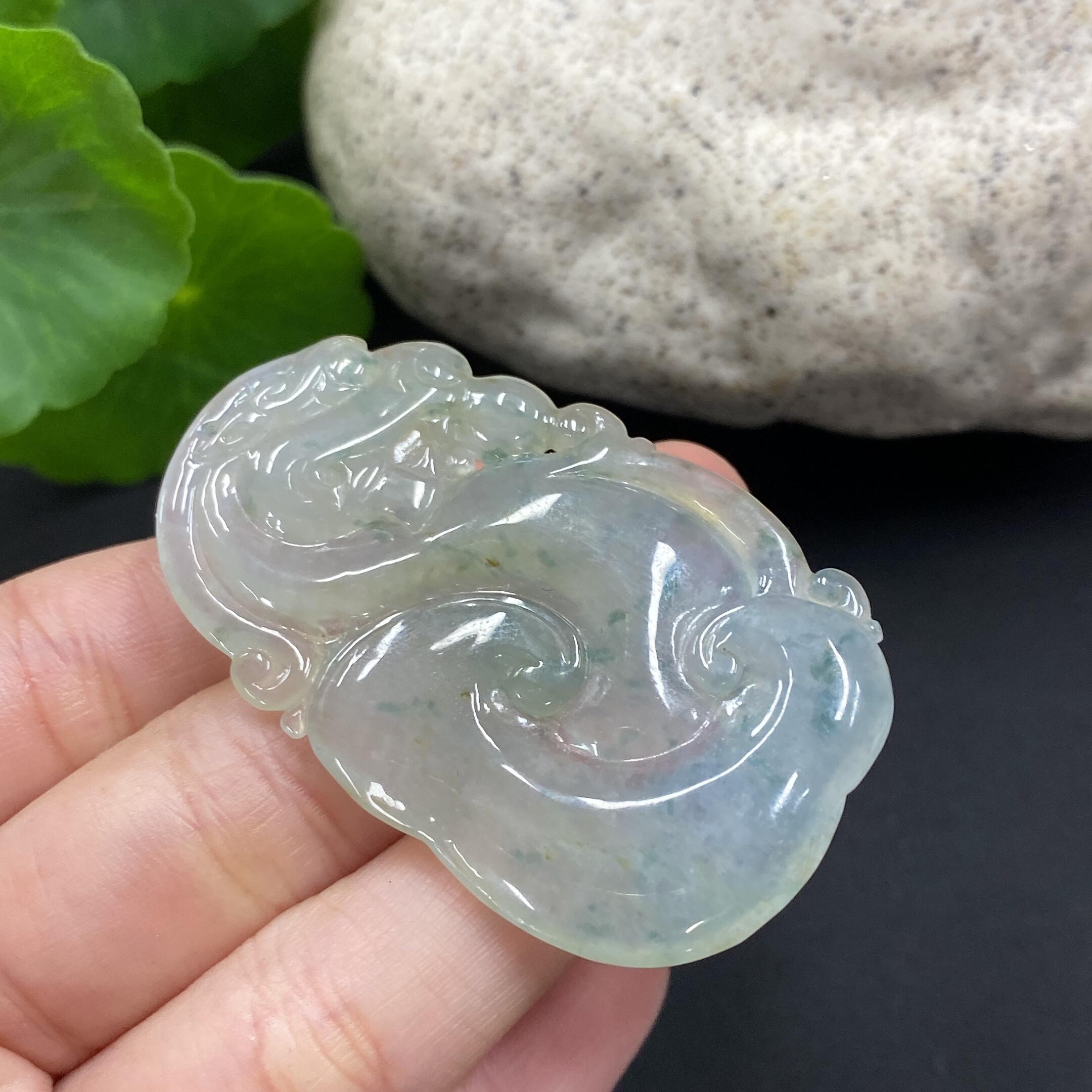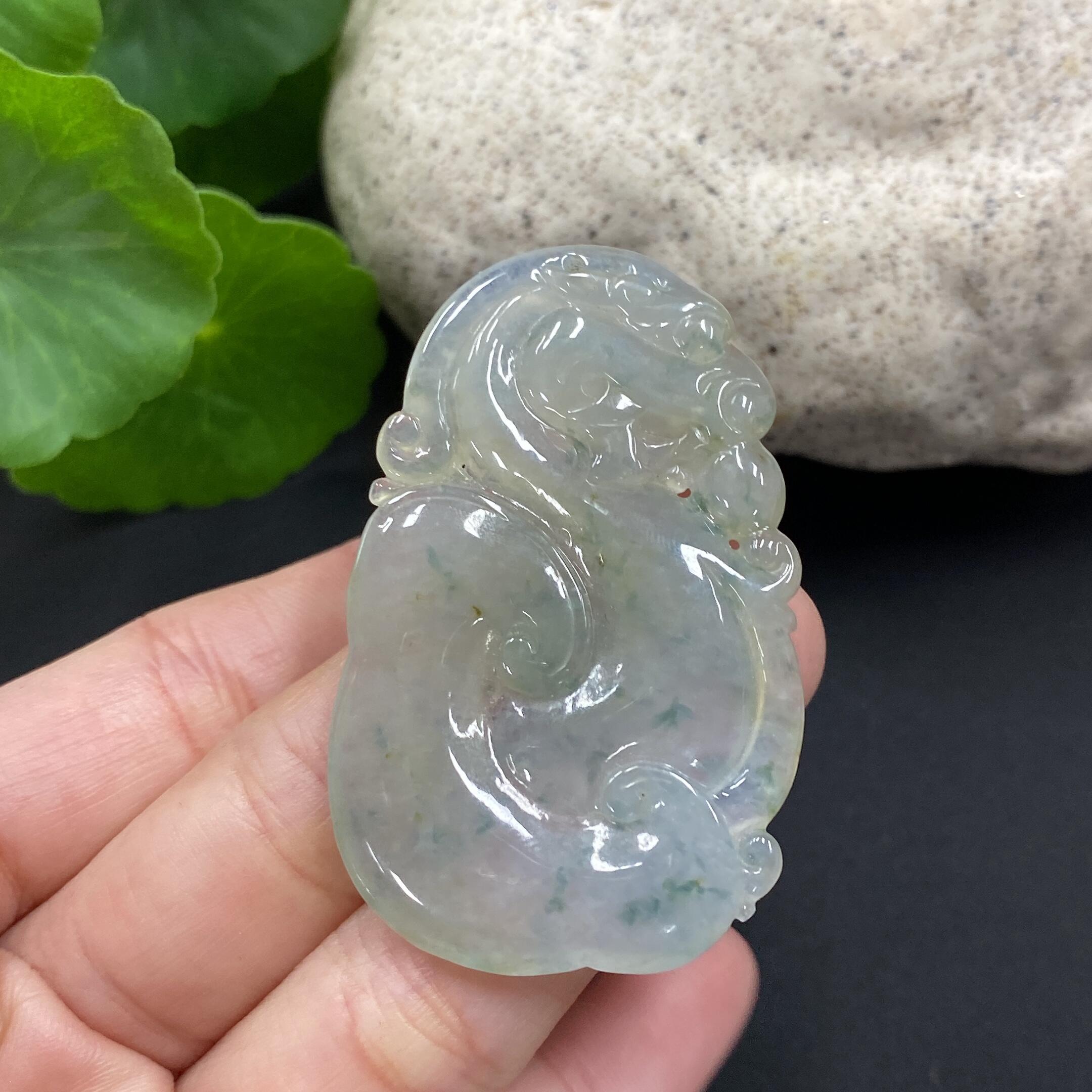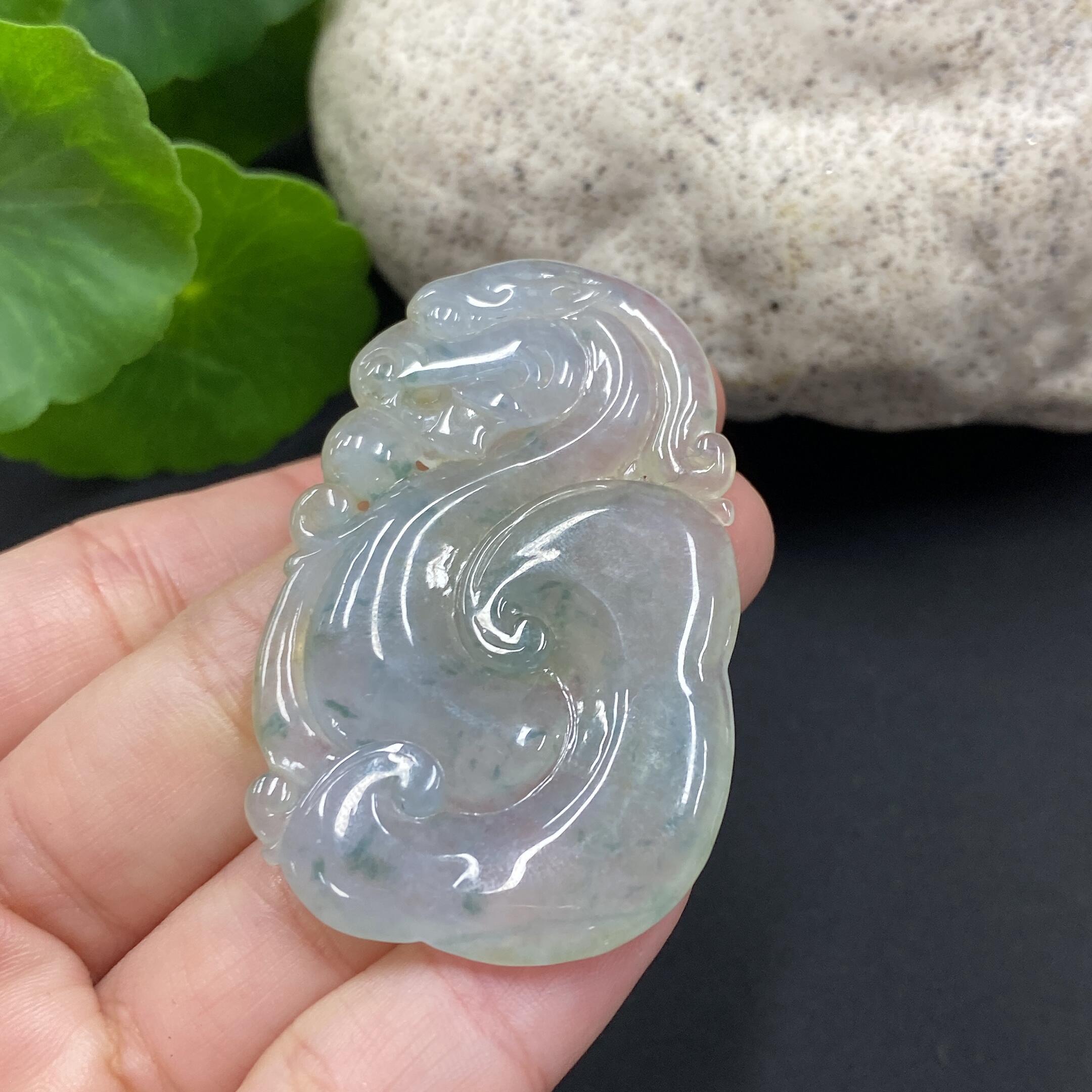 Jadeite Pendant - Ruyi Dragon - With Cracks and Veins