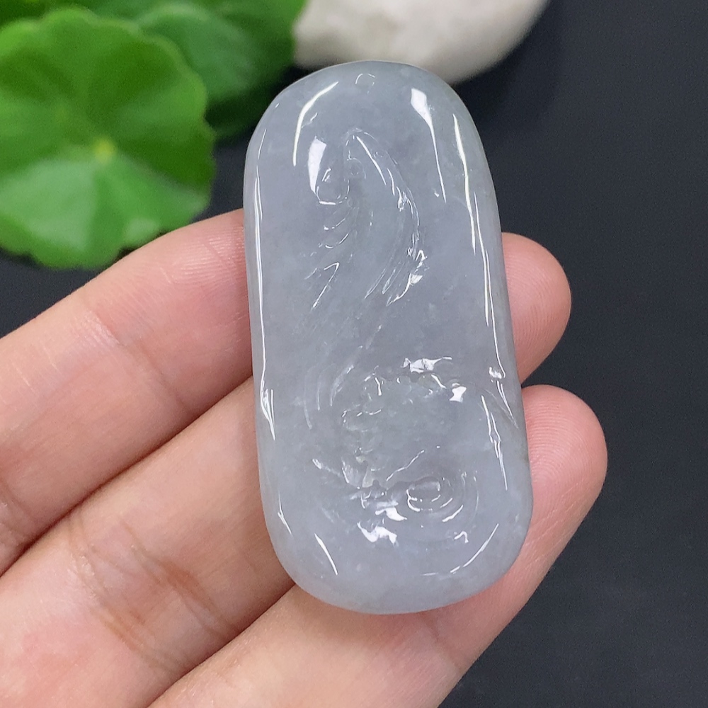 Jadeite Auspicious Fish Pendant, Total Weight Approximately 14.2g