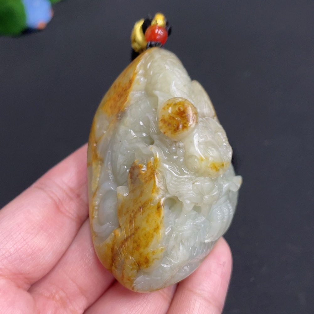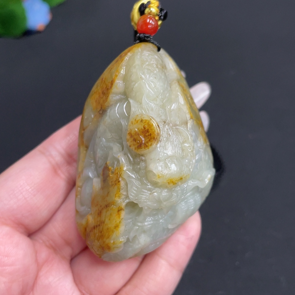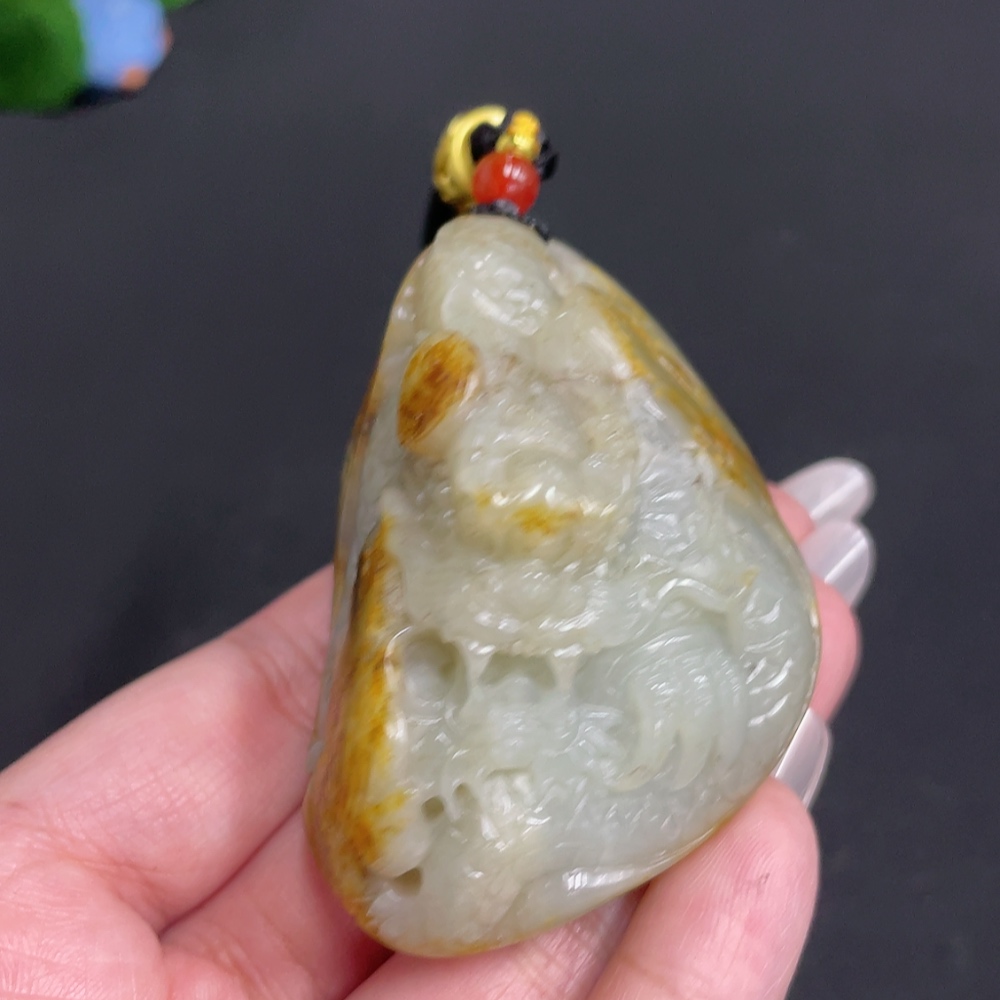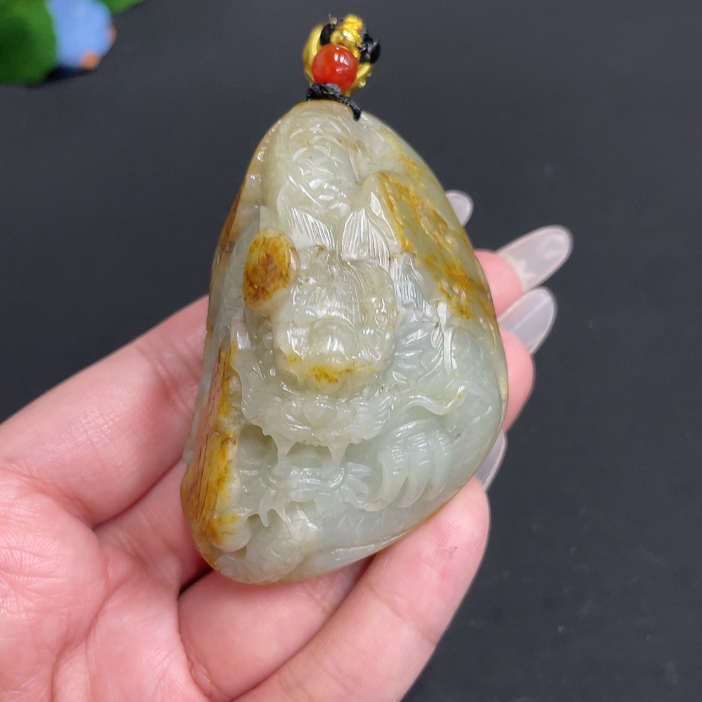 Hetian Jade Handheld Carving - Dragon, Total Weight Approx. 143g, Contains Other Mineral Components, Undetermined Skin Color Origin, Non-Gold
