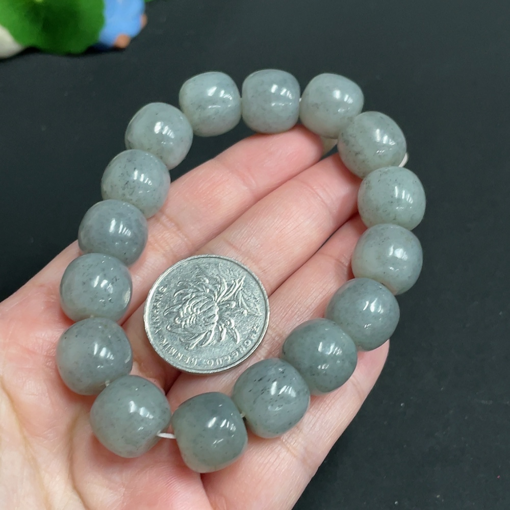Hetian Jade Bracelet Approx. 13.8 mm Beads Total Weight Approx. 72.3g