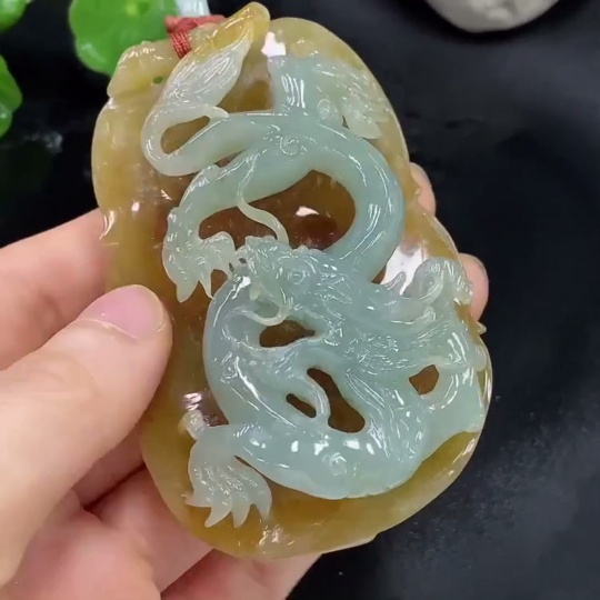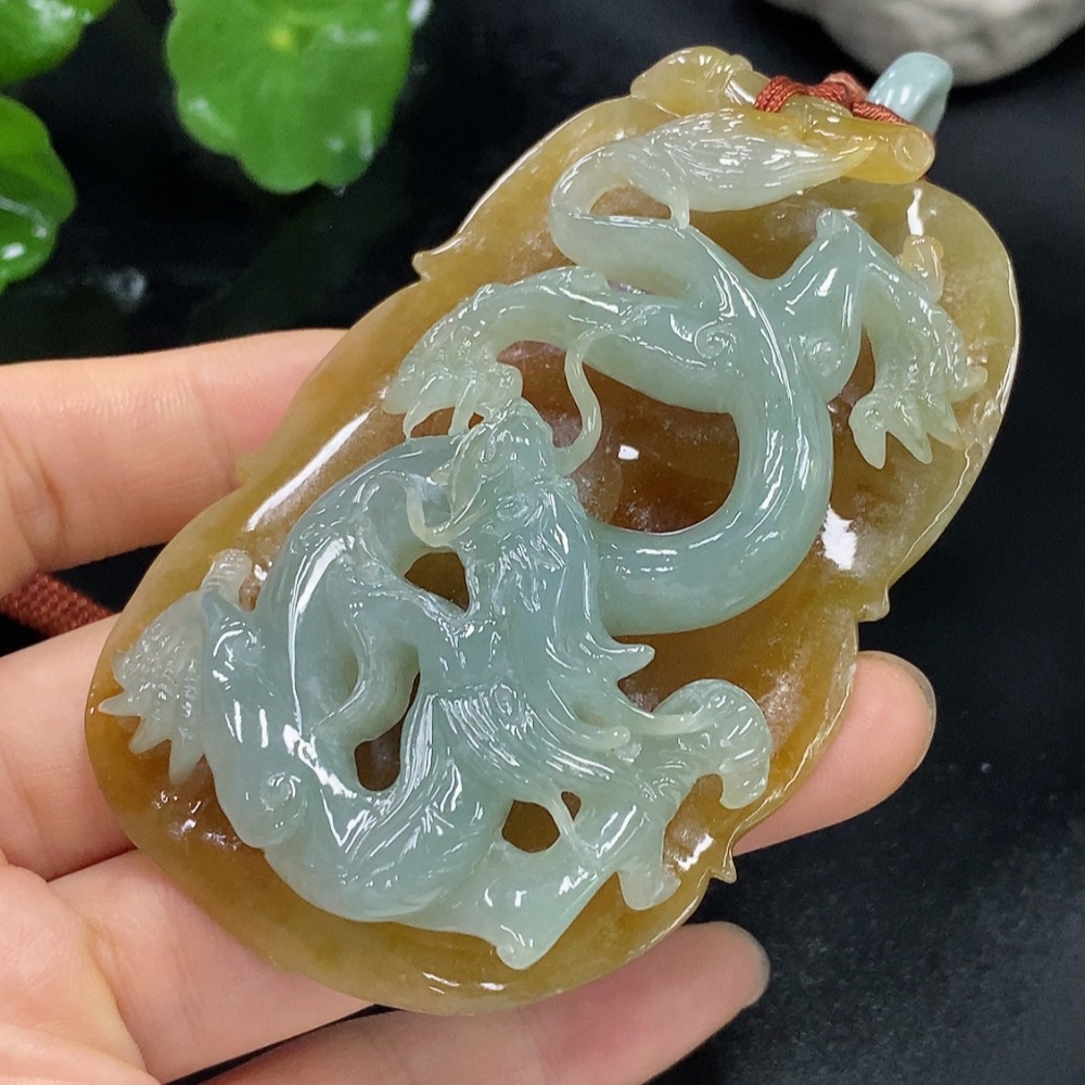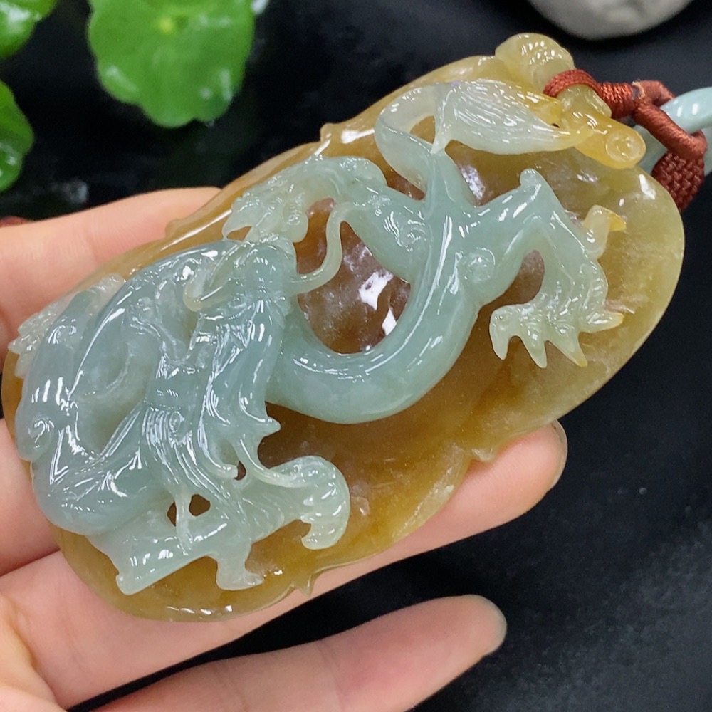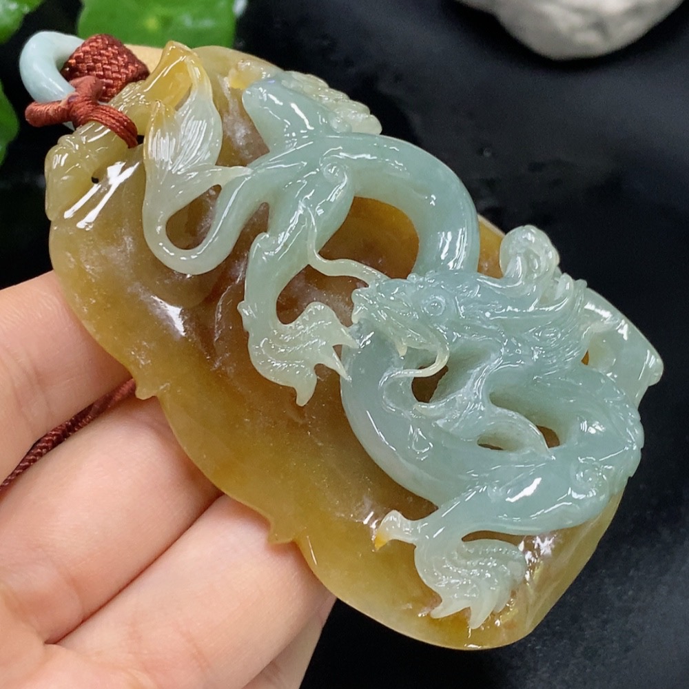 Jadeite Pendant, Total Weight Approx. 100.35h, Color Origin Undetermined, Dragon Plaque