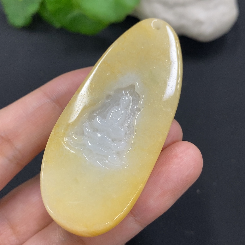Jadeite Enlightenment Pendant Total Weight Approx. 53g (Color origin undetermined)
