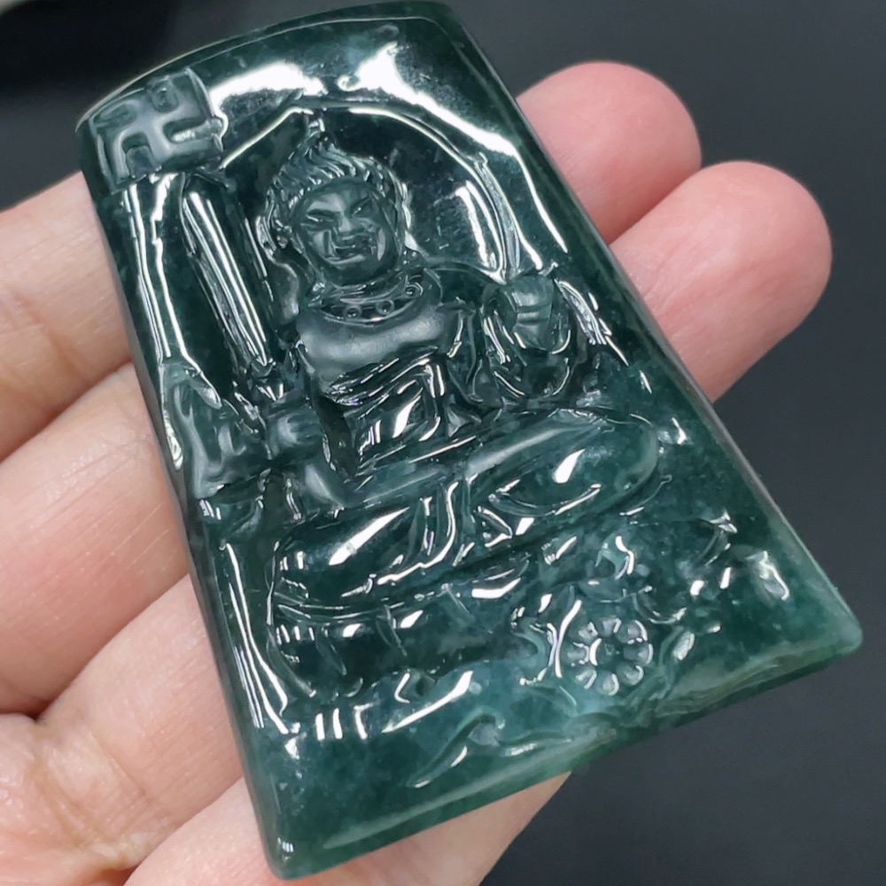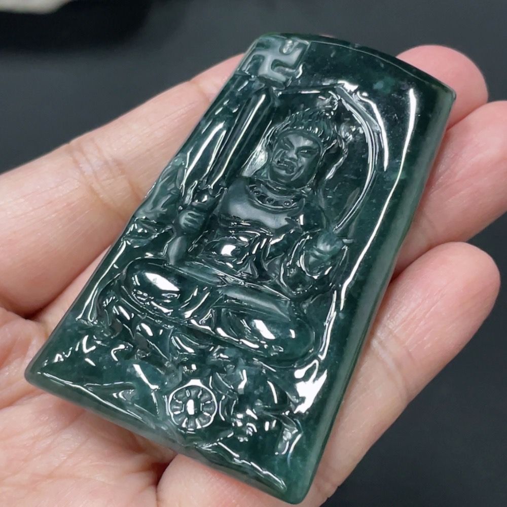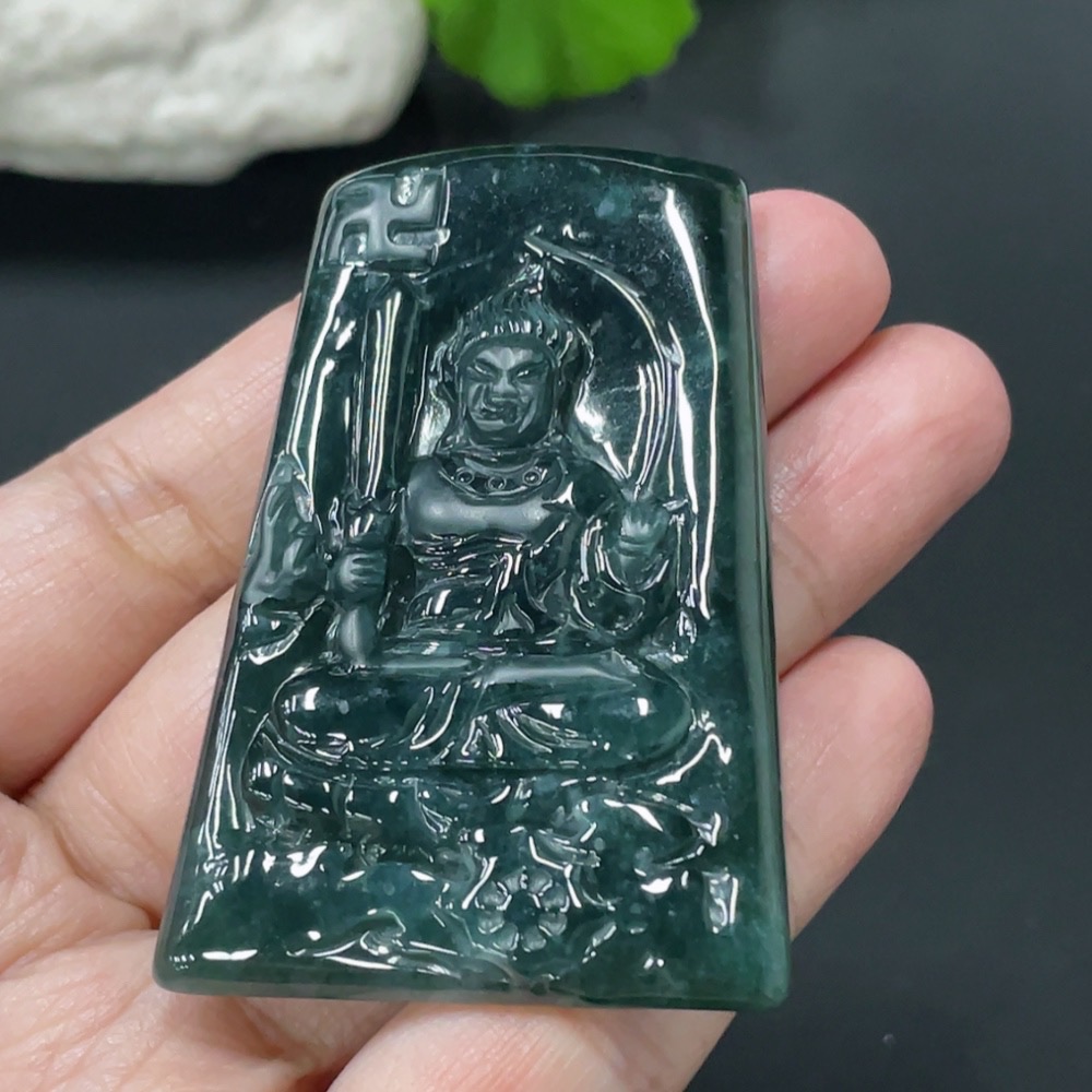 Jadeite Fudo Myoo Pendant Total Weight Approx. 28.9g