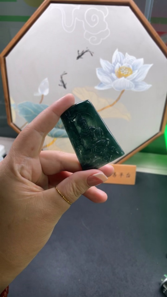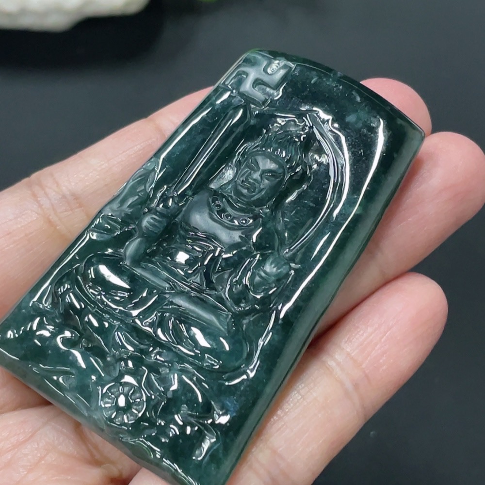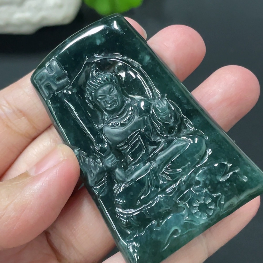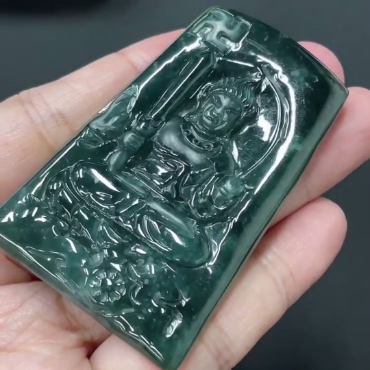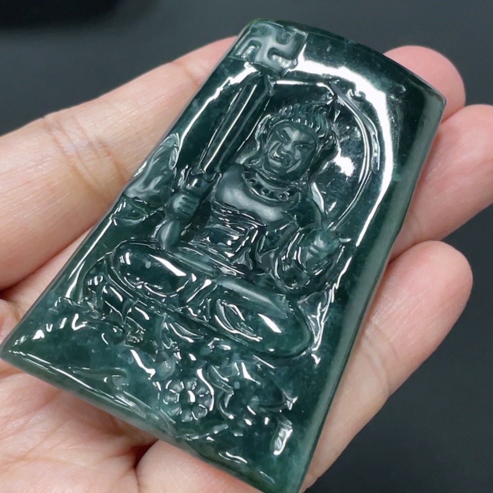 Jadeite Fudo Myoo Pendant Total Weight Approx. 28.9g