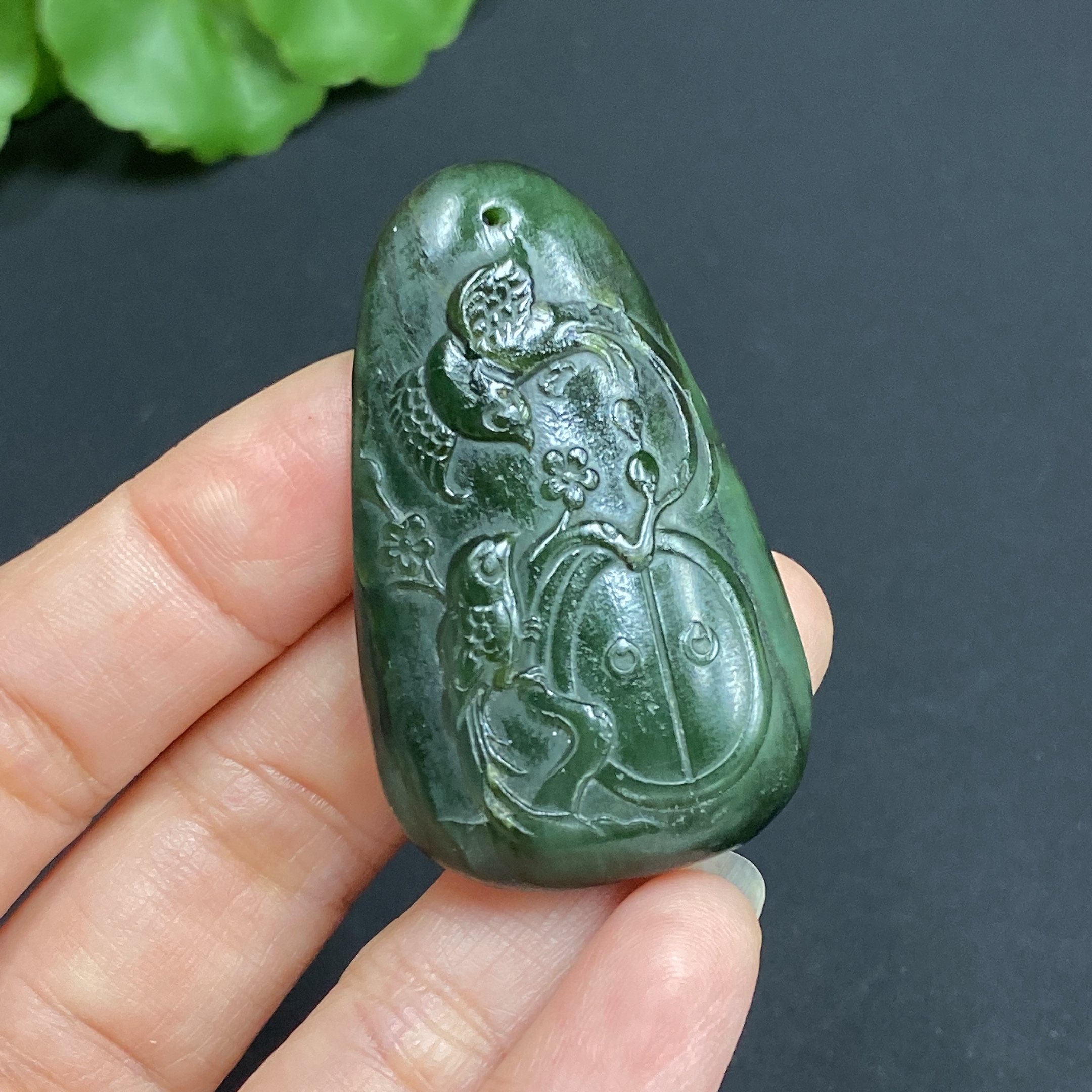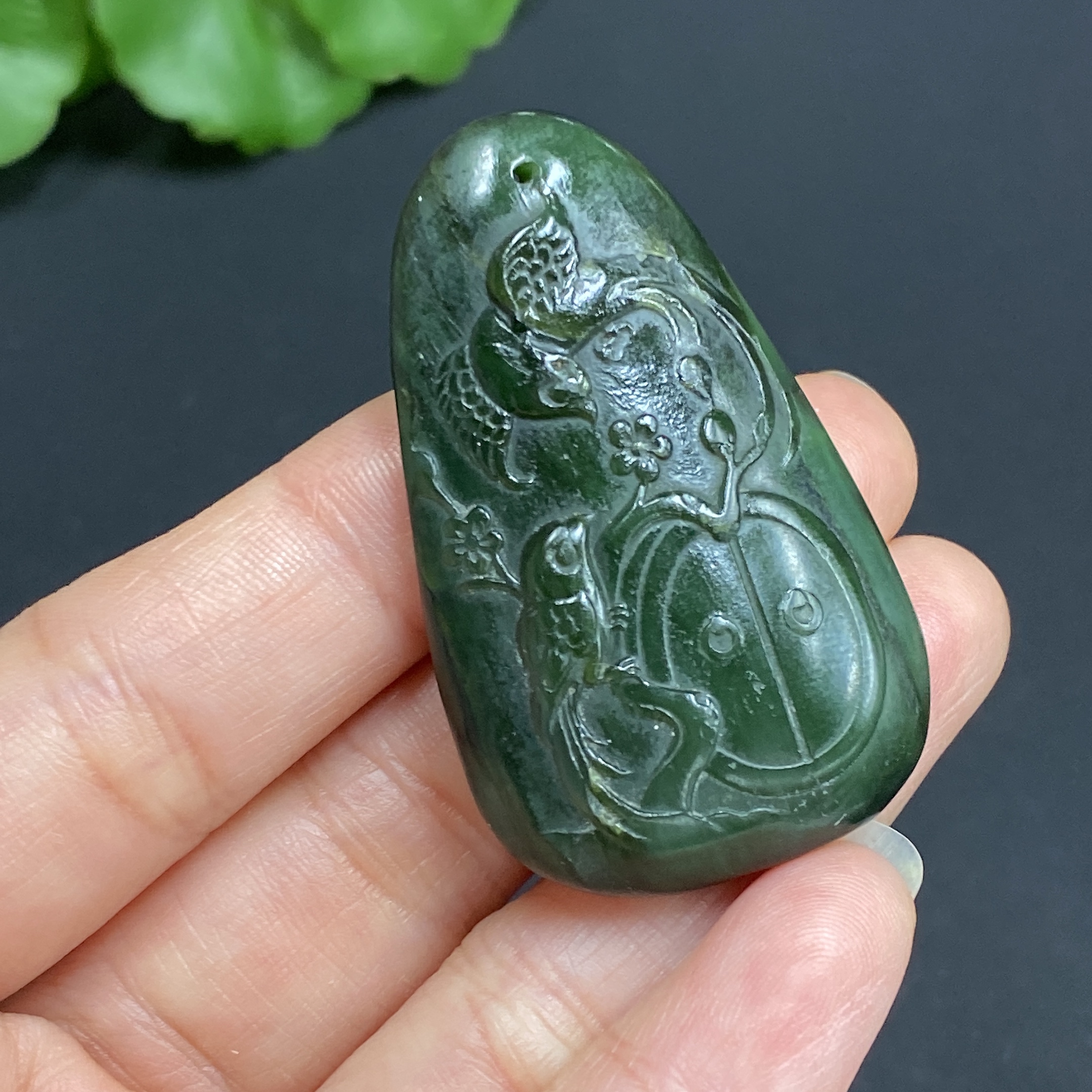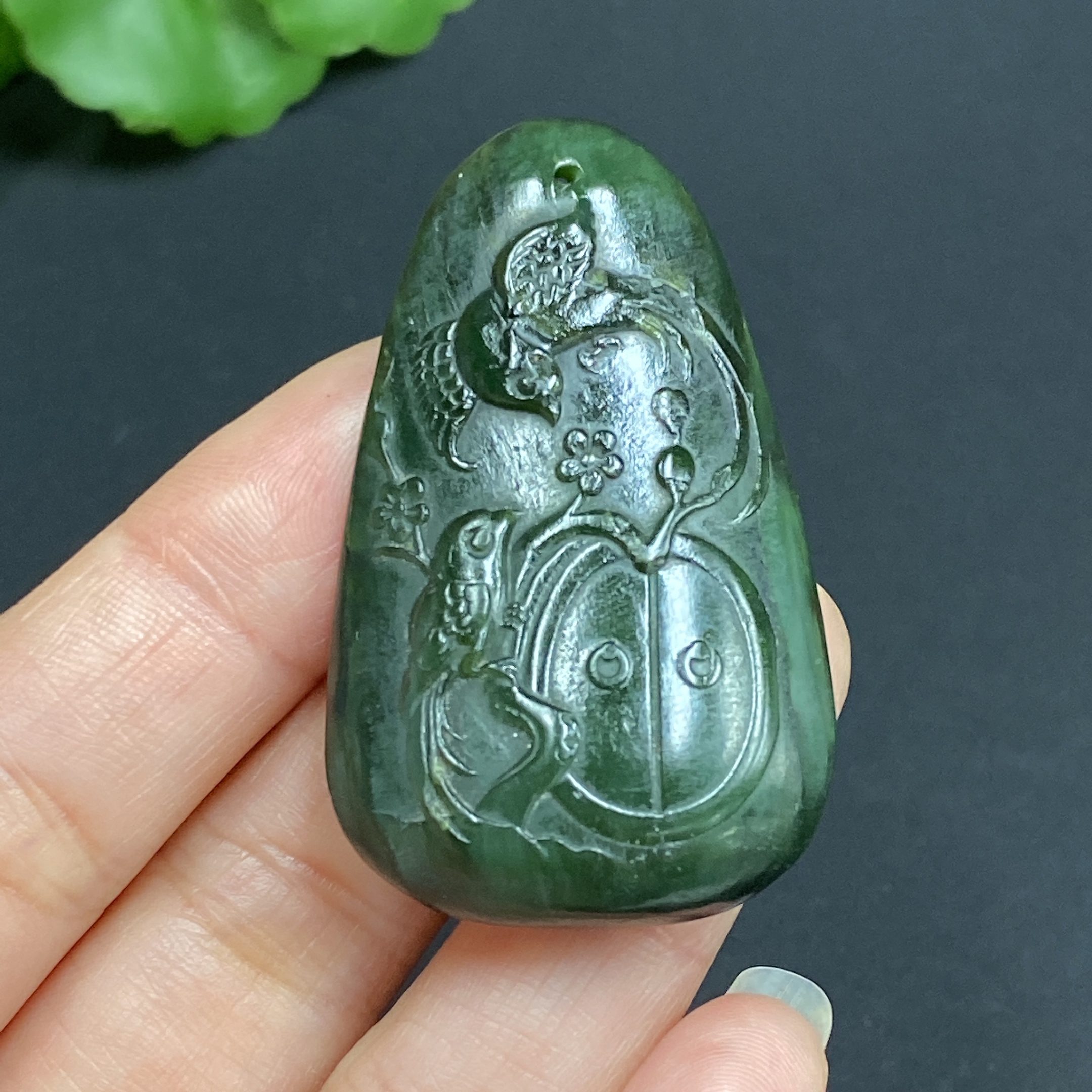 Hetian Jade Pendant - Double Blessings Arrive, Total Weight Approx. 17.9g