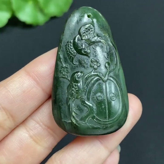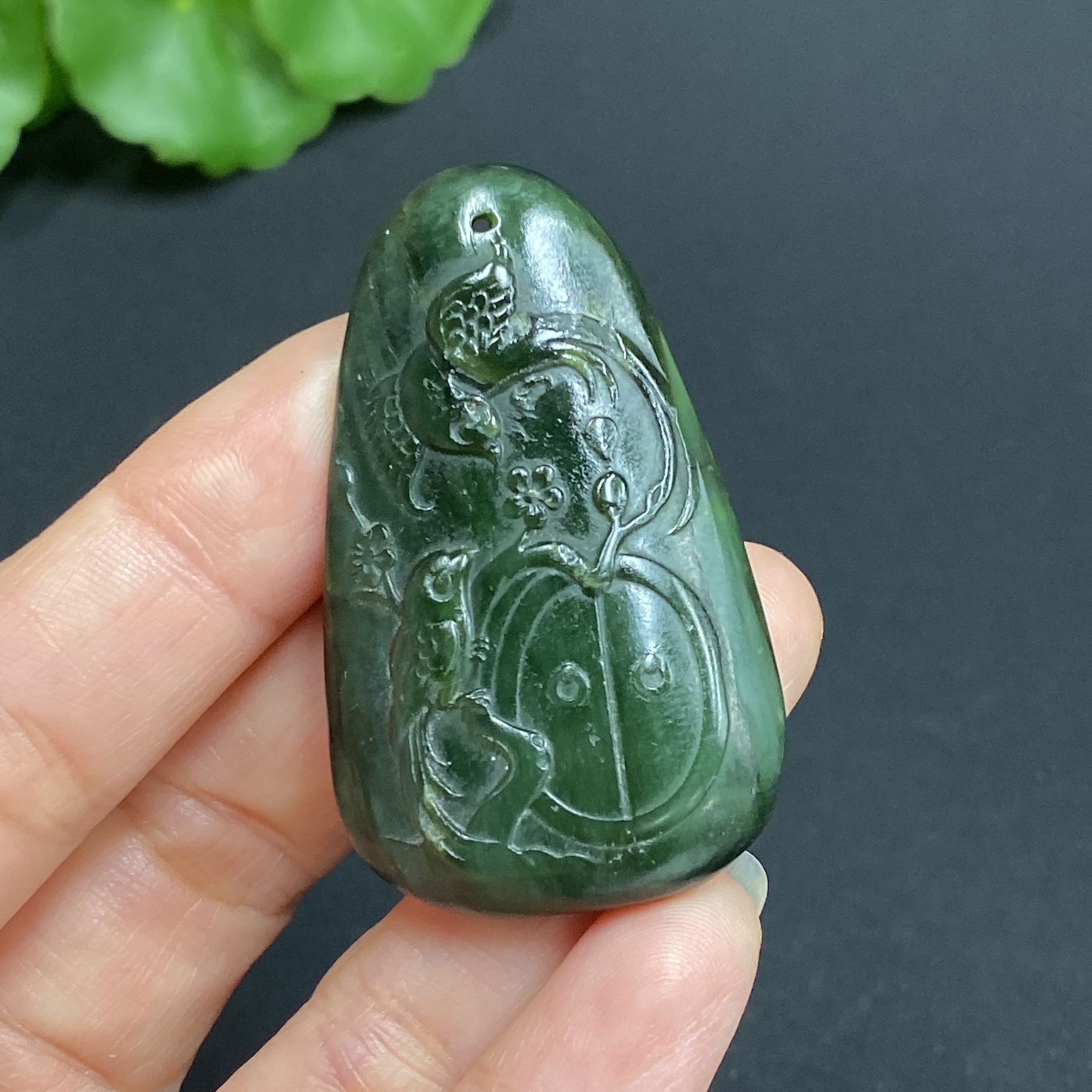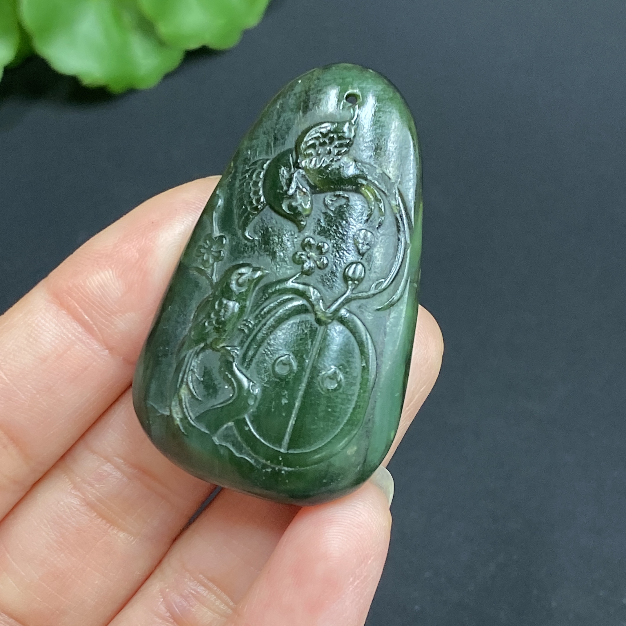 Hetian Jade Pendant - Double Blessings Arrive, Total Weight Approx. 17.9g