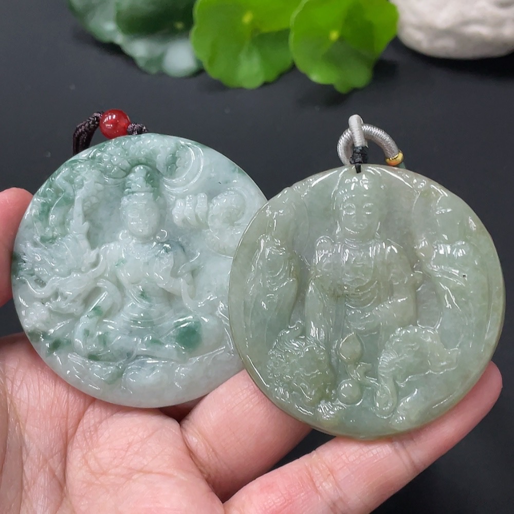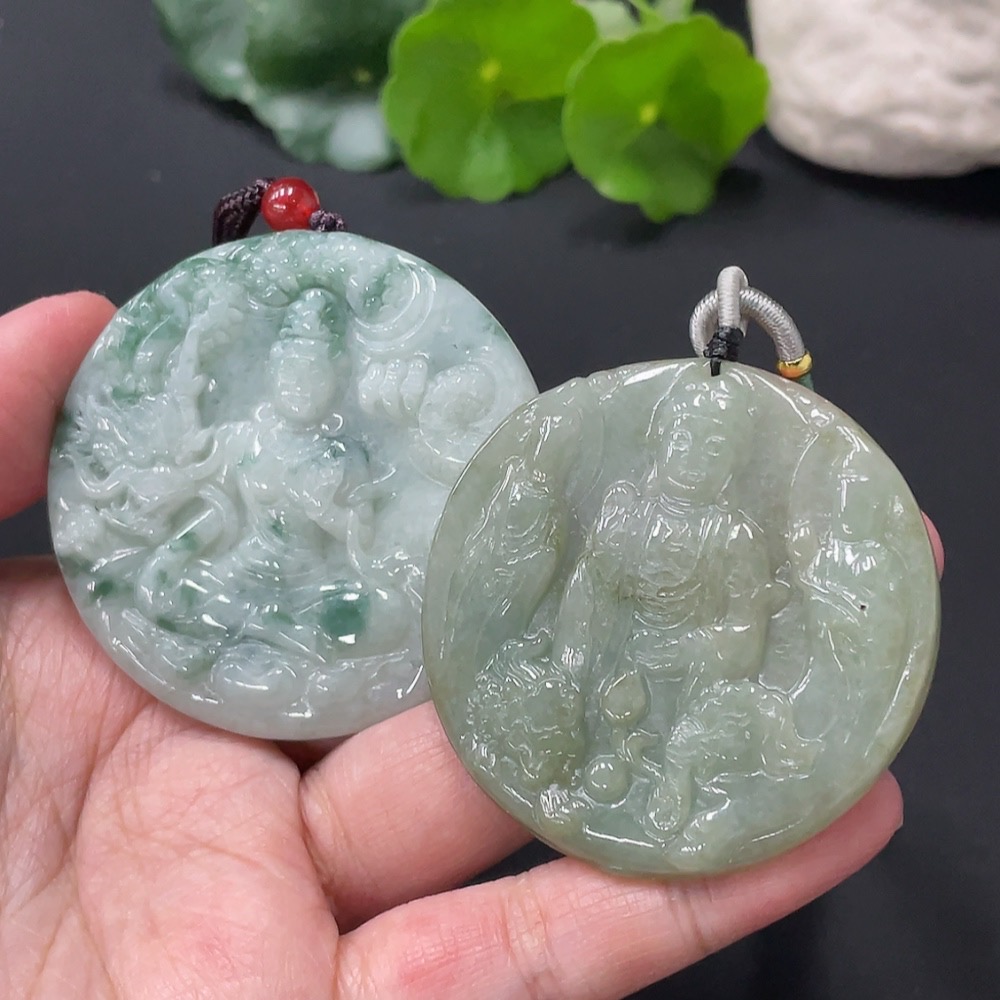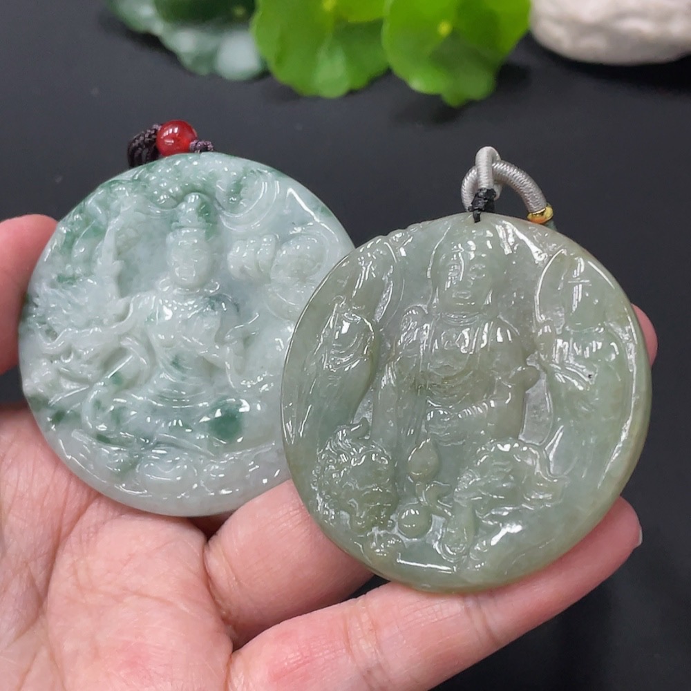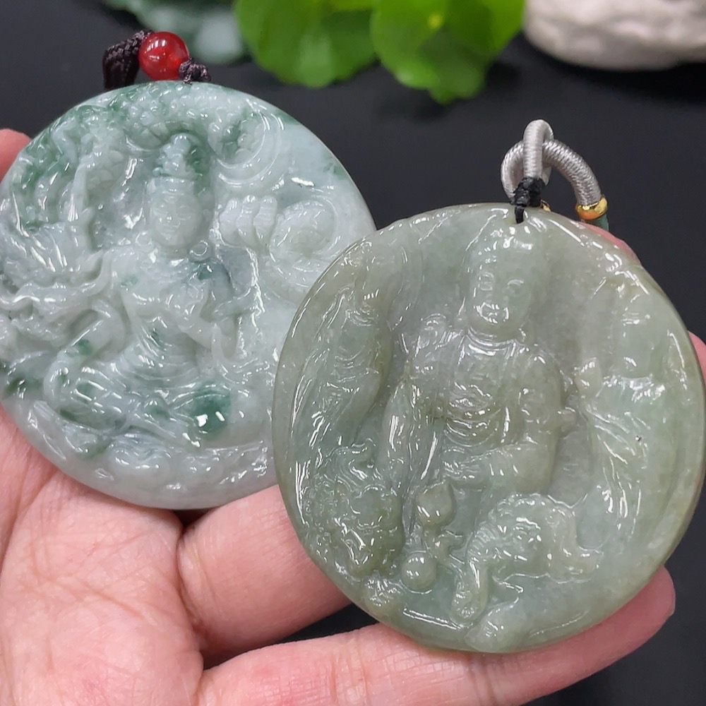 Jadeite Pendant Three Saints of the West Divine Dragon Protects the Master